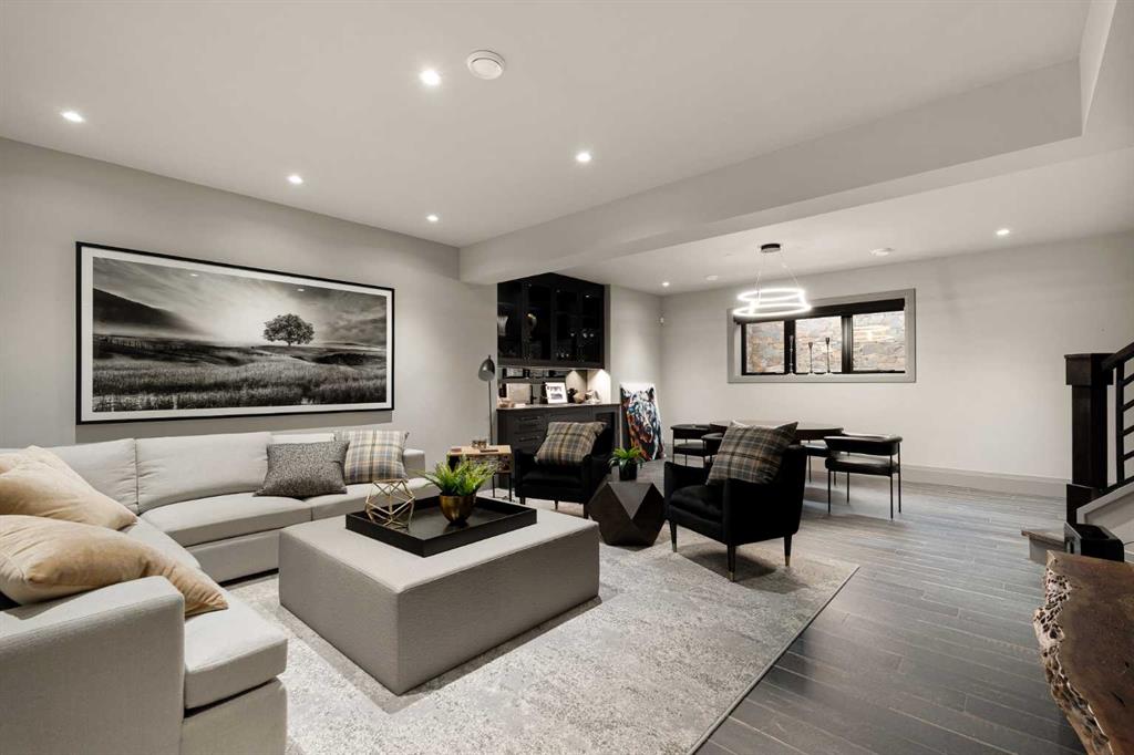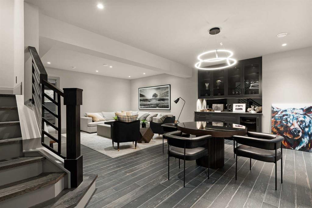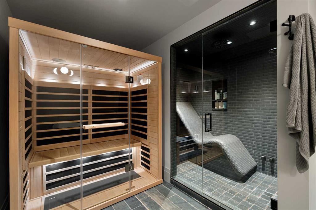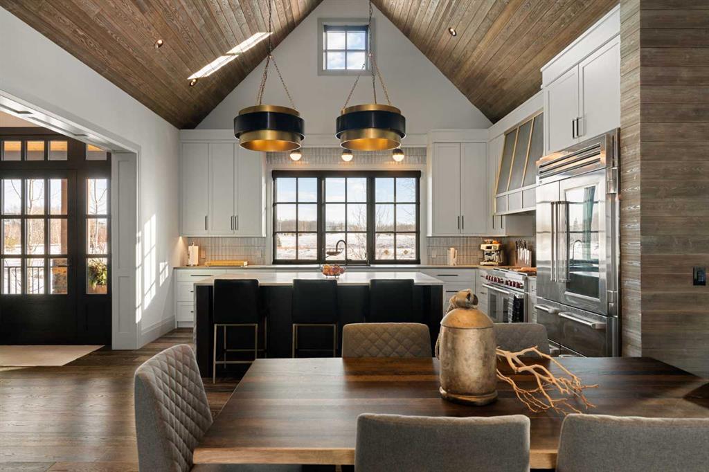 Watch the FULL home tour on YouTube of this exceptional modern, farmhouse inspired home! Welcome to Silverhorn Park in Bearspaw, where luxury, privacy, and timeless design come together on a stunning 1.49 acre estate backing open green space. Thoughtfully landscaped with mature trees, natural stonework, a large outdoor firepit, and two heated decks with Phantom screens, this residence is the perfect blend of modern architecture and rustic farmhouse warmth. Step inside to a grand foyer with rich hardwood floors and a charming telephone-booth office with custom built-ins. The kitchen is a showpiece with vaulted ceilings with wood panel accents, a striking waterfall island, two-toned cabinetry, and top-tier appliances including a Wolf gas stove and convection oven, Sub-Zero fridge, and an artful custom range hood. A walk in pantry adds additional storage, a steam oven, sink, and the ultimate coffee bar area. The dining area opens to the side deck for seamless indoor-outdoor living, while the living room centers around a floor-to-ceiling fireplace that defines luxury and invites the family to gather. The main floor primary retreat offers a custom closet and spa-like ensuite with a large soaker tub, dual sinks, glass shower, and abundant storage. A well-designed mudroom houses the laundry room with a sink, tons of storage, and leads to the nicest garage you have ever seen, a heated triple car haven with epoxy floors, custom built-in workbench, and a wood ceiling treatment on the vaulted ceilings. Upstairs features a secondary laundry room and two spacious bedrooms, each with their own walk-in closets and private ensuites. The fully finished lower level impresses with a wet bar, expansive secondary living area, full gym, a hobby room with a half bath for the creator of the family, full bath with soaker tub, sauna and steam shower, plus a large 4th bedroom with custom built-ins. As if the main home and the stunning lot wasn’t compelling enough, completing the property is a charming, fully separate Carriage House Suite with its own great sized living and entertaining room, 1 bedroom, a full bathroom, and a full kitchenette, perfect for guests or extended family. Located in Silverhorn, and only a 6-7 minute drive from the edge of the city you'll enjoy an exceptionally well designed community with some of Bearspaw's most incredible homes. The communal septic fields, water co-op, fibre optic internet, and homesites with large amounts of natural reserve land kept pristine make Silverhorn the premier acreage lifestyle community around Calgary. You’ll enjoy the tranquility of country living while still being only minutes from top amenities like the Bearspaw Golf & Country Club, Flores & Pine, and more. This is truly a one of a kind masterpiece just minutes from the city. Book your private showing today!