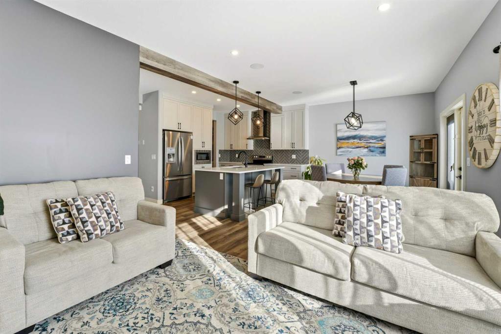 **OPEN HOUSE - SATURDAY, FEB 21, 1-3 PM** Welcome to this stunning Abbey Platinum built 2021 BILD Central AB Award winning, fully developed home! This two story home features 4 bedrooms, 3.5 bathrooms, double attached heated garage, backs on to green space with walking paths and disc golf, electric fireplace (roughed in for gas), A/C, wired for sound on main level, water softener, and more! No detail has been spared. The main level features an inviting and open concept area with sun pouring in from the south facing window's. Here you will find a welcoming foyer, leading in to the stunning kitchen, dining area, and living room. Just off of the kitchen you will find a pantry, as well as an eye catching butler's pantry, powder room, and mudroom. Moving to the upper floor, you will be greeted with a family flex room, surrounded by the primary (with attached 3 piece ensuite), 2 other bedrooms and a 4 piece bathroom. The laundry room is also enclosed here with additional soundproofing, as well as a folding counter and cupboard space. All three bedrooms up here include walk-in closets, double blinds w/ blackout, as well as sensor lighting in the bathrooms. Down in the 9' high finished basement you will find an additional recreation space, the fourth bedroom, another 4 piece bathroom, storage space, as well as an additional flex room that has been transformed into the ultimate play room! This beautiful home is not one to be missed. It is also conveniently located close to schools, easy access to highways and shopping, and just a 5 minute drive down to the lake!
