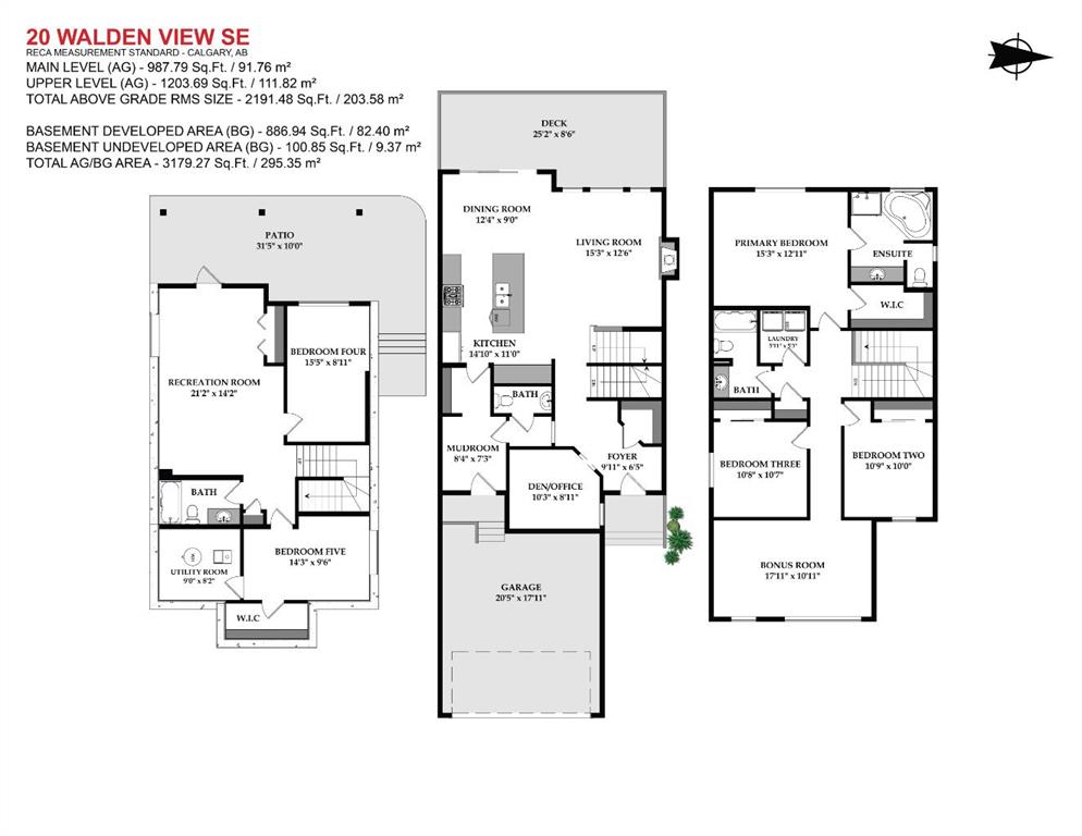 Everything you are looking for in a wonderful, immaculately maintained and spacious home can be found in 20 Walden View SE. Situated in a no thru family friendly cul de sac, just steps away from the park you will discover over 3000+sqft of beautifully developed living space. Custom built by this original home owner, every detail was hand selected to create a thoughtfully designed floor plan to create many family memories to last a life time. Now it is your turn to enjoy this FULLY FINISHED WALK OUT home built on a LARGE PIE LOT boasting FIVE BEDROOMS and 3.5 BATHROOMS for all to enjoy. Soaring 9ft ceilings invite you in to explore the functional yet spacious home commencing with the Den just past the foyer that invites you into the common living area where you will discover an expansive extended centre island, stunning GRANITE counters, sleek stainless steel appliances including an upgraded GAS RANGE, full tile subway back splash that extends to the ceiling behind the range, designer hood fan and a sizeable walk through pantry to the mud room. The living room features a floor to ceiling stone fireplace with built-in niche and decor mantle while the designated dining room mirrors the same stunning stone feature wall offering a rich warmth to this lovely family home. The floor to ceiling custom drapery adds an elevated feel to the home and frames in the over sized windows that takes you out through French sliding doors to the massive maintenance free deck with awning that overlooks the back yard. The upper level features three large bedrooms with the Primary bedroom boasting a spa-inspired 4pc en suite that has rarely been used and is immaculate. There is a huge corner soaker tub, water closet and over sized walk-in shower with built-in bench for you to enjoy your getaway from the everyday, along with a nice sized walk-in closet. Family and friends can enjoy the additional bedrooms with the 2nd bedroom offering a great slope vaulted ceiling and the Bonus room is perfect for movie night. To complete the upper level you have a convenient 2nd floor laundry room and another full bath. The FULLY FINISHED WALK-OUT basement offers you and additional 886 sq ft of great living space offering ample room for all. You have TWO more large bedrooms, a full bath and a generous living room / rec area. Luxury vinyl plank graces the floor through out and over sized windows invite an abundance of natural daylight into this great space. Step out to your lower covered patio where you will discover an exposed aggregate patio and stairs that compliment the esthetic of the home while offering a dedicated space for a hot tub or outdoor conversation pieces. A huge pie lot with mature trees and so much space to play and enjoy your surroundings. Already established in a vibrant and friendly street where the neighbours know your name and kids are running around the cul de sac, you will feel at home while having the space to grow your family while enjoying the community around you. Welcome home!