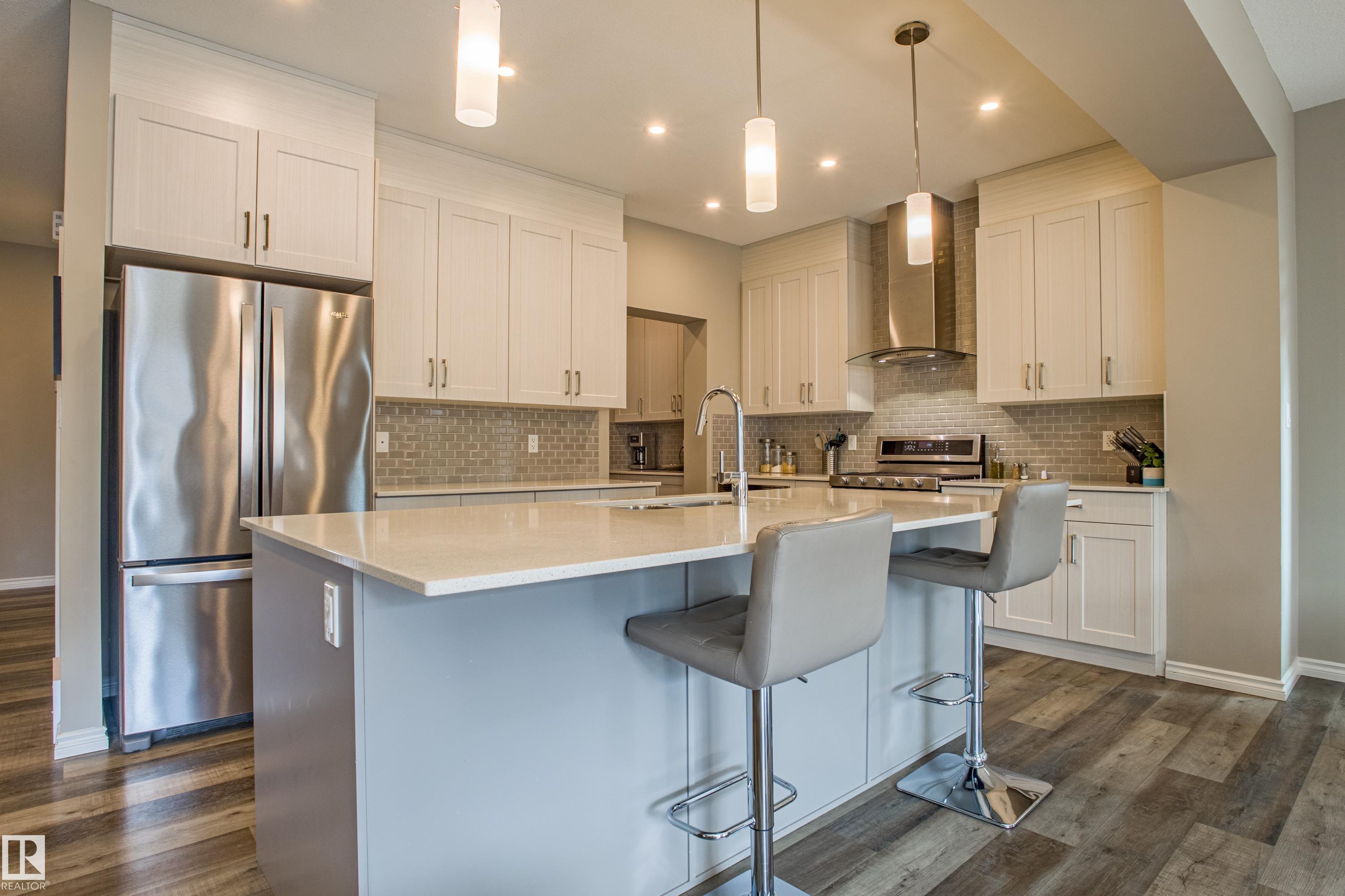 Live in The Uplands! This 2,450 ft² 3 BED / 2.5 BATH home blends style, comfort, and smart efficiency. The OPEN layout impresses with Spacious Great Room with beautiful fireplace and Shelving located next to the Chef’s Kitchen featuring quartz counters, large island, stainless appliances, and a WALK-through pantry into a spacious Mudroom with Hooks & Bench. Upstairs, the HUGE BONUS room invites family movie nights and hangouts. The SPA-like 5-piece ensuite offers Separate His & Her Vanities, Walk-in shower, Soaker tub, AND His/Her walk-in closets too! Built for today as well as tomorrow, this home boasts a 12.96 kW SOLAR system to keep energy BILLS LOW. Enjoy sunny days in the SOUTH-facing yard and Full Width Deck on a REGULAR LOT (NOT zero lot line), while CENTRAL A/C keeps you cool all summer. Ideally located in SW Edmonton with quick access to the Anthony Henday and ALL Nearby amenities. An absolute MUST-SEE. Make this your family’s next home! Close to walking trails, and beautiful ravine views.
