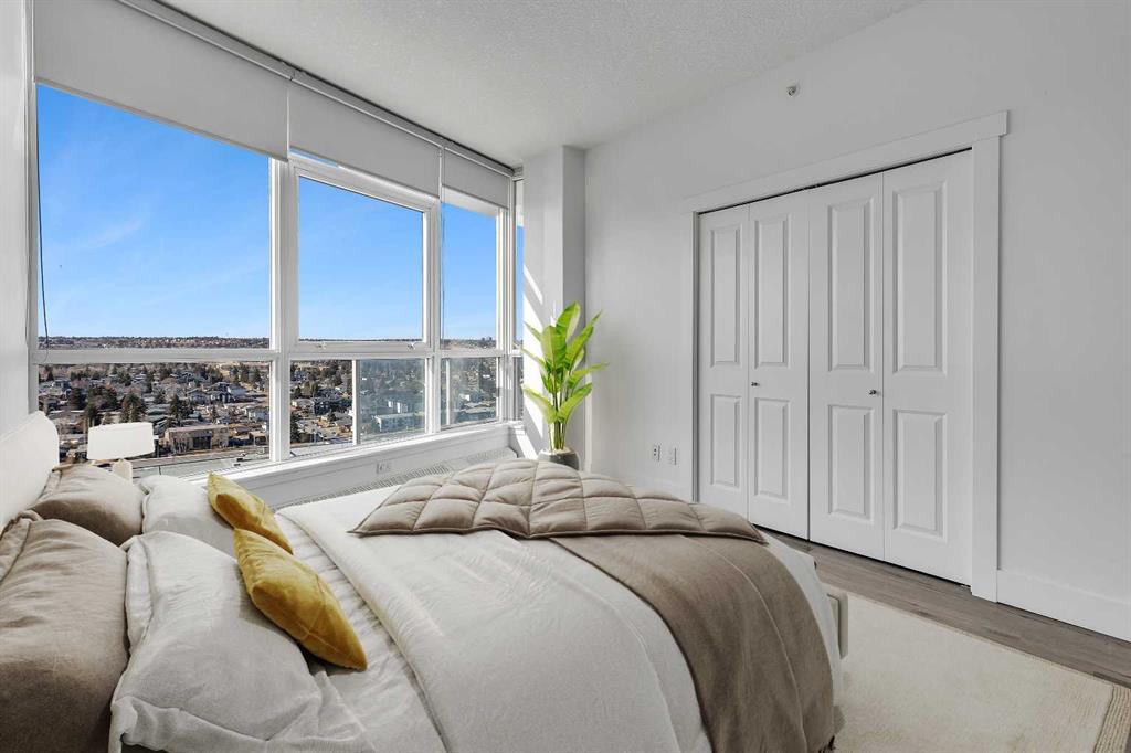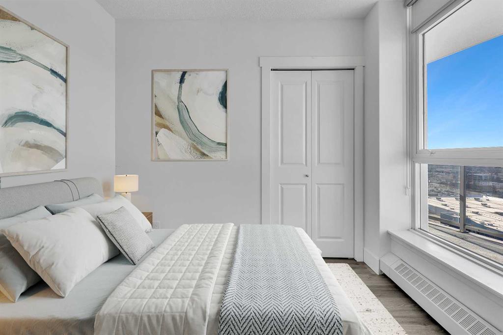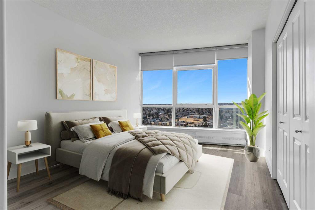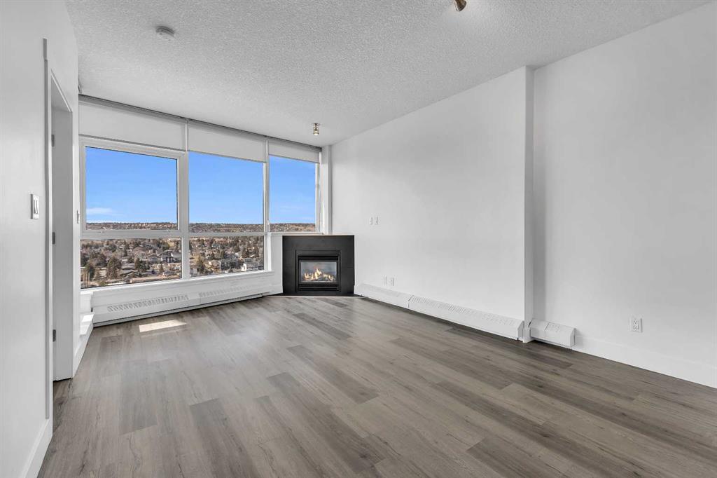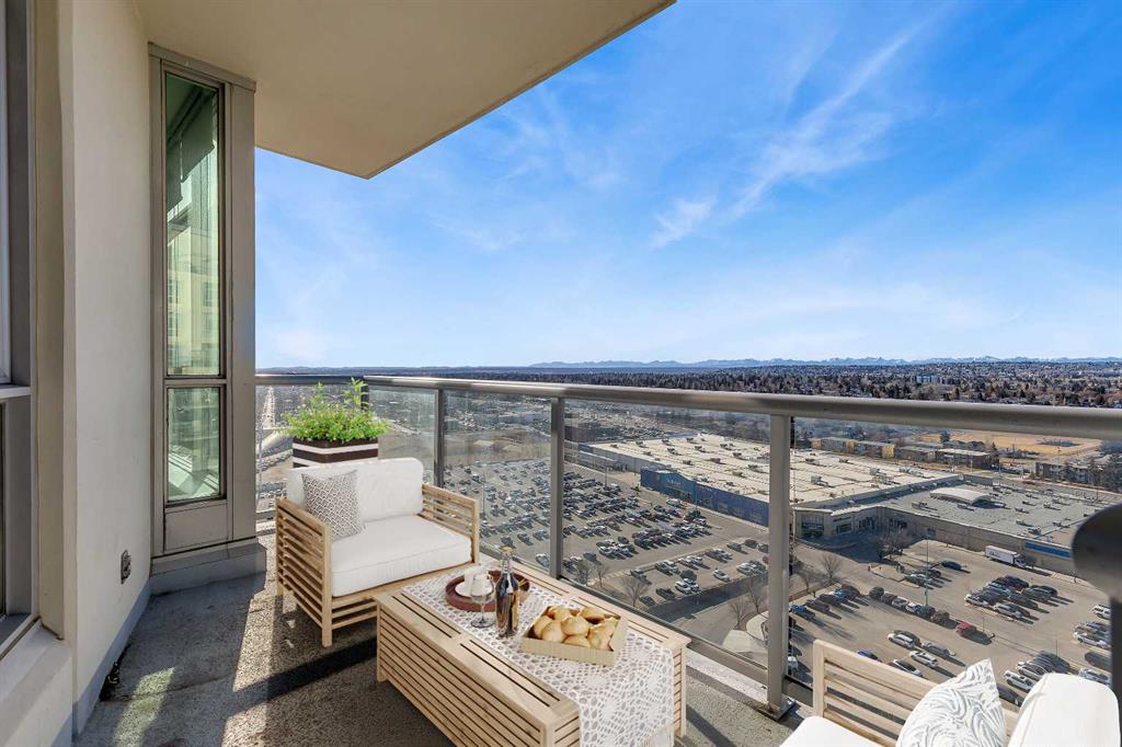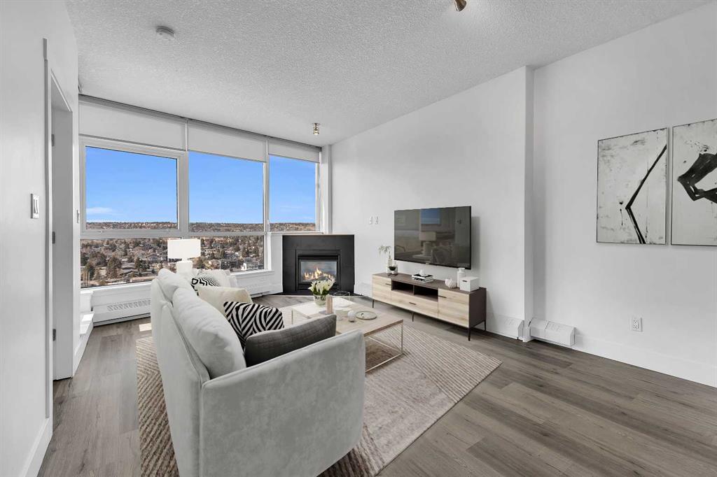 Perched on the 20th floor, this bright and well laid out 2 bedroom, 2 bathroom condo offers the kind of experience that truly sets it apart. Prepare to enjoy mountain views, along with an abundance of natural light pouring in through the bright generous windows. The open concept layout is both practical and inviting, perfect for everyday living and effortless hosting. Step inside to enjoy a home that’s been beautifully renovated. Sleek new LVP flooring spans the living and bedroom areas, refreshed cabinetry with modern hardware brightens the kitchen, and granite countertops paired with updated appliances complete the move-in ready space.The living room features a corner gas fireplace that adds warmth and character, while central air conditioning keeps the space comfortable year round. The bedrooms are thoughtfully positioned, making this layout ideal for professionals, small families, roommates, or those working from home. Step outside to your balcony and take in the open sky and endless views. This well managed complex offers exceptional amenities that add real value to everyday living, including an indoor pool and hot tub, a fully equipped fitness centre, games room, party rooms, on site management, and full time security for peace of mind. The unit also comes with one titled parking stall, assigned storage, and secure visitor parking on the first level of the parkade, offering convenience for both you and your guests. Location truly elevates the experience. The Westbrook LRT station is less than a block away, making commuting downtown simple and quick. Walmart, Safeway, restaurants, and other amenities are directly across the street, giving you true walkable access to daily essentials. If you are looking for comfort, convenience, and incredible views in a prime location, this home checks all the boxes! Welcome Home.