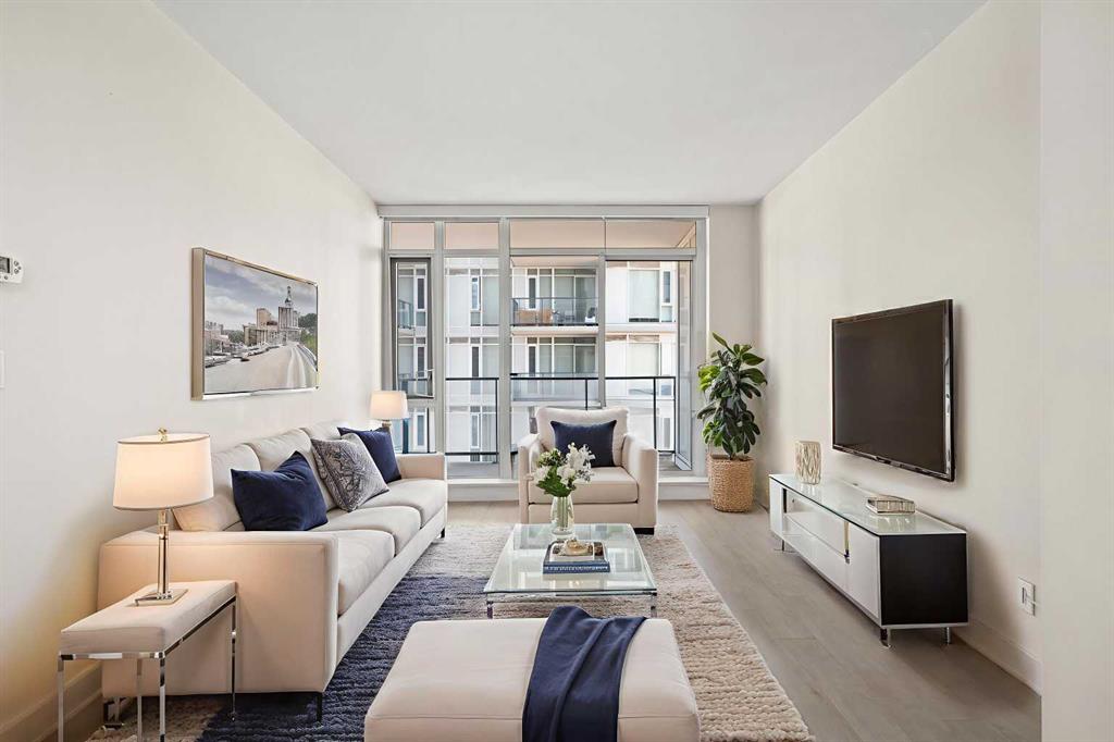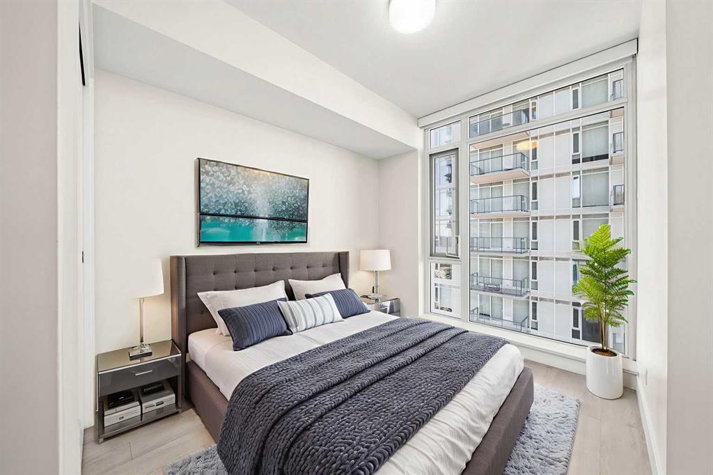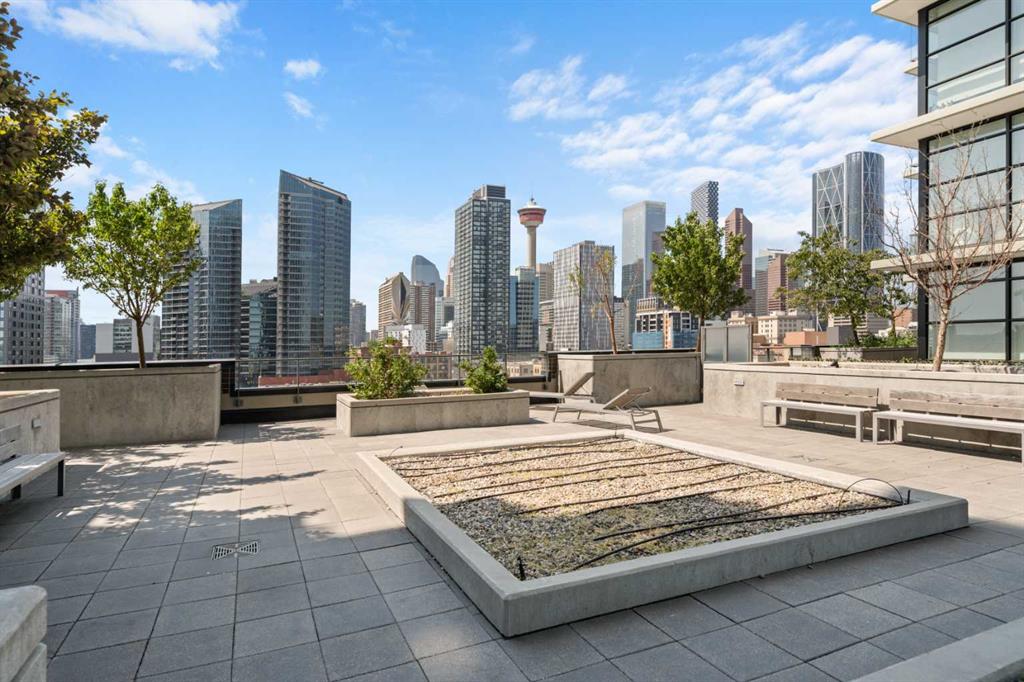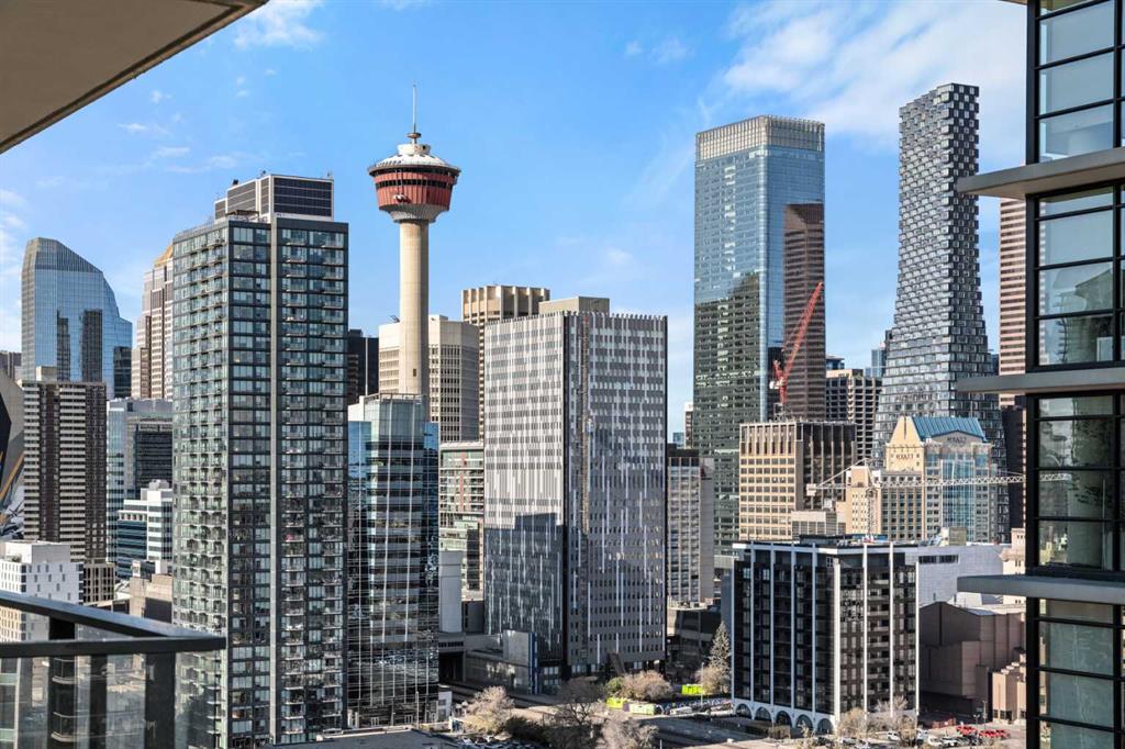 Experience elevated urban living with a VIEW in this modern one bedroom condo with titled underground parking in The Guardian South Tower, one of Calgary’s most iconic high rise communities loaded with next level amenities. Inside, the thoughtfully designed open concept layout is anchored by a sleek contemporary kitchen featuring integrated executive style appliances including a hidden refrigerator, elegant quartz countertops, and modern cabinetry. The space flows seamlessly into the dining and living area, where floor to ceiling windows flood the home with natural light. Durable LVP flooring runs throughout, offering a clean modern look with easy maintenance. Step out onto the spacious covered balcony and take in vibrant city views and stunning sunsets. Glass railings showcase the Calgary skyline, including the iconic Calgary Tower. Residents enjoy impressive amenities including a massive social club with fireplace, big screen TVs, Wi Fi, and lounge seating, a fully equipped fitness centre that rivals most commercial gyms, and a beautifully landscaped garden terrace. The home includes titled, secure, heated underground parking. The building is pet friendly with approval and professionally managed, making it ideal for professionals, investors, or anyone wanting a low maintenance downtown lifestyle. Located in the heart of the Beltline, you are steps from the Stampede Grounds, Scotiabank Saddledome, transit, casinos, and endless restaurants, cafés, and shopping. A rare opportunity to own in one of Calgary’s most sought after towers. Walkability and true urban living at its finest. Book your private viewing before it’s gone.