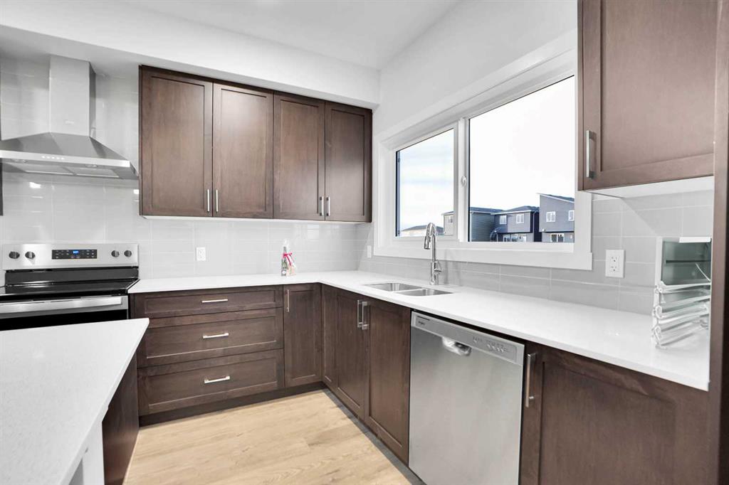 Welcome to this beautifully upgraded semi-detached home in the heart of Cornerstone, perfectly positioned facing green space and an environmental reserve! Offering exceptional curb appeal with its charming front verandah, this 3-bedroom, 2.5-bathroom home combines modern design, thoughtful upgrades, and functional living spaces ideal for families. Step inside to an open-concept main floor featuring 9 ft. ceilings, elegant knockdown ceilings, and large windows that flood the space with natural light. The gourmet kitchen is a standout, complete with quartz countertops, a spacious island, chimney hood fan, and ample cabinetry—perfect for cooking and entertaining. The dining and living areas flow seamlessly, creating a welcoming atmosphere. Upstairs, you’ll find a generous bonus room, ideal for a second living space or home office. The primary bedroom includes a spacious walk-in closet and a beautifully appointed En-suite with Walk- In shower. Two additional bedrooms, a full bathroom, and convenient upstairs laundry complete the upper level. A key feature of this home is the separate side entrance, offering excellent potential for future development. The basement also features 9 ft. ceilings, and rough- in for bathroom, 2 egress windows , providing a bright and open feel, ready for your personal touch. Additional highlights include: Smart home technology, Quiet location with front views of green space and natural reserve, Close to pathways, shopping, schools, and future amenities This exceptional property blends comfort, style, and opportunity—perfect for homeowners or investors alike. Don’t miss your chance to own a beautifully upgraded home in one of Calgary’s most desirable growing communities!