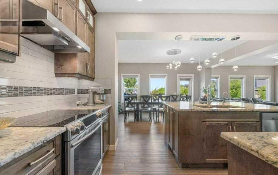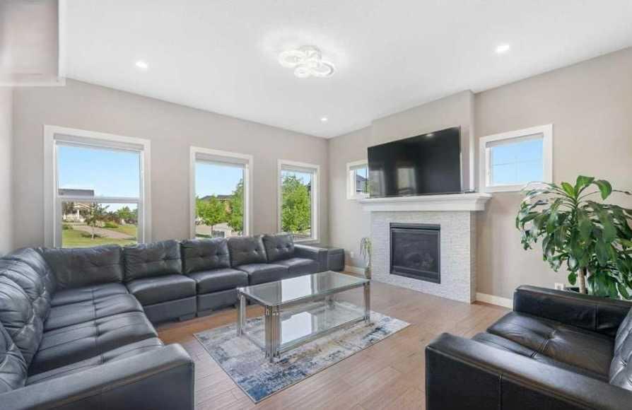 Imagine stepping into your dream oasis right in the heart of Westmere, Chestermere's most coveted gem—just a quick hop from Calgary! This jaw-dropping corner-lot masterpiece sits proudly beside serene Aspenmere Park, delivering endless green vistas, total seclusion (zero neighbors staring over your fence), and that priceless feeling of your own private escape. Bathed in sunshine from its smart east-to-west layout, natural light pours in from dawn till dusk—paired with central air conditioning to keep things perfectly cool no matter how hot the summer gets. Push open the door to this epic two-storey stunner boasting 3,944 sq ft of pure, expertly designed living magic. Inside, discover 6 massive bedrooms and 5 sleek bathrooms ready to accommodate everyone and everything. The main floor? Pure genius—soundproofed flooring for peace, a dedicated guest suite complete with closet and full 3-piece bath (perfect for in-laws, grown kids, or weekend visitors). The chef's paradise kitchen will blow your mind: gleaming stainless steel appliances, towering full-height cabinets, luxurious granite countertops, and a huge centre island that's begging for family breakfasts or late-night snacks. And wait—there's a separate spice kitchen armed with an electric stove and massive walk-in pantry so you can tackle bold flavors without chaos in the main space! Everything flows in an effortless open-concept wonderland: kitchen melting into dining and family zones flooded with windows for that bright, airy vibe. Curl up by the cozy gas fireplace in the family room, toss laundry in on the main level for zero hassle, then glide out to your massive deck—overlooking a fully fenced backyard with seamless gate access straight into Aspenmere Park. BBQ seasons, playtime, stargazing? This is your ultimate outdoor playground! Head upstairs to luxury overload: two incredible primary suites, each with private ensuites! One boasts breathtaking park views, a huge walk-in closet, and a spa-like 5-piece ensuite featuring a deep soaking tub and double vanity. Two more generous bedrooms and a flexible bonus room await for movie nights, homework, or chill hangouts. The fully finished basement is a total game-changer—private covered entry, giant rec room with electric fireplace, built-in wet bar for epic gatherings, another bedroom, and a 3-piece bath. Best part? It's already roughed-in for an easy legal secondary suite conversion (just need municipal approvals and permits—prime setup for rental income or extended family!). Don't miss the wow-factor extras: a triple front-attached garage with EV charging station, water softener, central vacuum, solar rough-ins, and structural warranty solid until September 2027. Park up to 6 vehicles on the driveway plus street spots galore. This isn't just a house—it's your next-level lifestyle upgrade in one of the most family-favorite spots near the lake and city! Opportunities like this vanish fast—grab your private tour before it's gone!