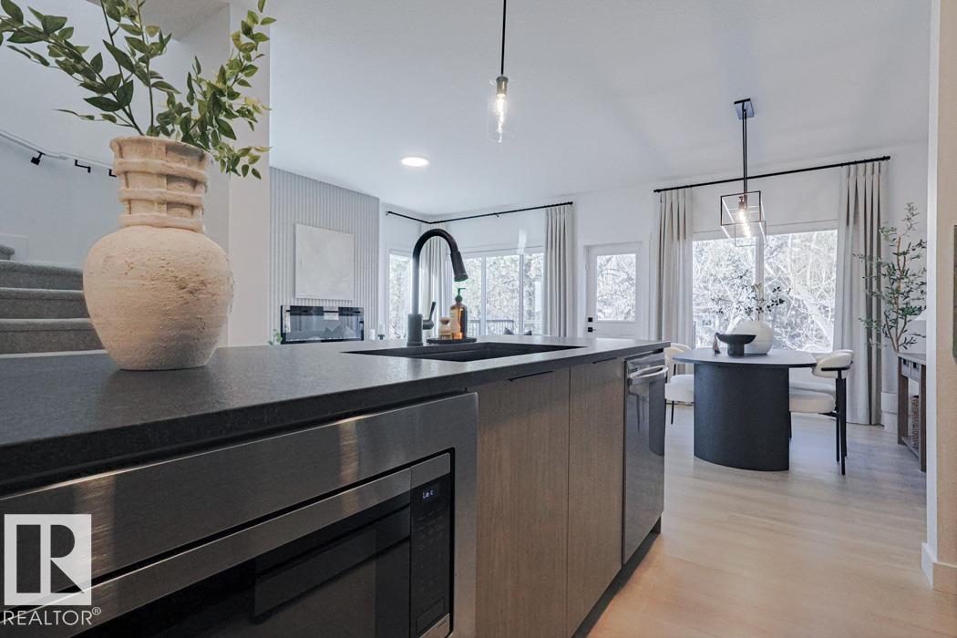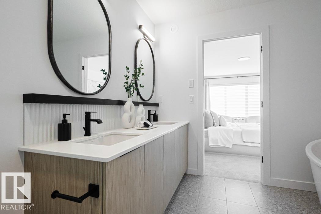 The Affinity model is an elegant, well-built home designed for today’s families. It features a double attached garage with floor drain, separate side entrance, 9ft ceilings on main & basement levels, & Luxury Vinyl Plank flooring. The foyer leads to a full 3-pc bath with walk-in shower & main floor bedroom. Open concept nook, great room & kitchen create a functional layout. The kitchen includes an island with flush eating ledge, Silgranite undermount sink, built-in microwave, pendant lights, chimney-style hood fan, tiled backsplash, ample cabinetry with soft-close doors & drawers, & corner pantry. The great room with electric fireplace and nook feature large windows & a patio door to the backyard. Upstairs, the bright primary suite offers a 5-pc ensuite with double sinks, shower, and freestanding tub, & large walk-in closet. A bonus room, main 3-pc bath, laundry, & two additional beds complete the level. Brushed nickel fixtures, upgraded railings & basement rough-in package included.