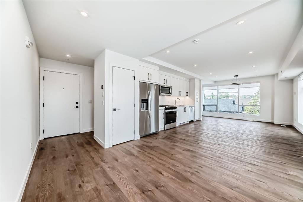 Discover this distinctive 2-Bedroom, 2.5-Bath residence in Frontier—Truman’s newest boutique development ideally located in the heart of vibrant Kensington. This rare multi-level home offers a thoughtfully designed layout that perfectly blends style, comfort, and functionality. The upper level entry welcomes you into the bright, open-concept living space featuring a modern kitchen with quartz countertops, full-height cabinetry, and stainless steel appliances. The kitchen flows seamlessly into the spacious dining and living areas, complemented by a convenient half bath—perfect for entertaining or relaxing in style. Downstairs, the private lower level hosts two well-appointed bedrooms, including the primary suite with its own ensuite bathroom, along with a secondary full bath. From this level, residents enjoy direct access to the building’s boutique-style amenities, including the fitness centre and co-working spaces. Situated just steps from Kensington’s boutique shops, top-rated restaurants, trendy cafés, the Bow River pathways, LRT access, and downtown Calgary, this home offers the ultimate in connected urban living. Photo gallery of a similar unit; finishes may vary.