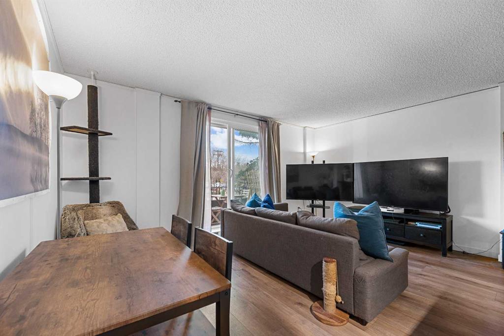 Updated, stylish, and a fantasitc location! This 2 bedroom Bankview condo delivers the best of inner-city living just steps from 17th Avenue. With skyline views from the balcony, a bright open layout, and tasteful upgrades throughout, this unit is an ideal opportunity for buyers looking for value, style, and walkable convenience. The interior has been refreshed with a modern touch, featuring custom cabinetry, a custom kitchen backsplash, brand new vinyl plank flooring, updated light fixtures, and a large walk-in pantry that is rarely found in condo living. Both bedrooms are generously sized, including a spacious primary with a designer feature wall, while the updated 4-piece bathroom offers a soaker tub, new vanity, mirror, and lighting. Newly installed, large windows bring in plenty of natural light and help create an open, airy feel throughout. Whether you are a first-time buyer, young professional, or investor, this is a smart option in a prime location close to downtown, transit, boutique shopping, restaurants, and all the energy of one of Calgary’s most loved neighbourhood pockets.