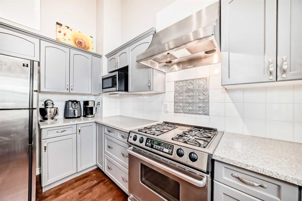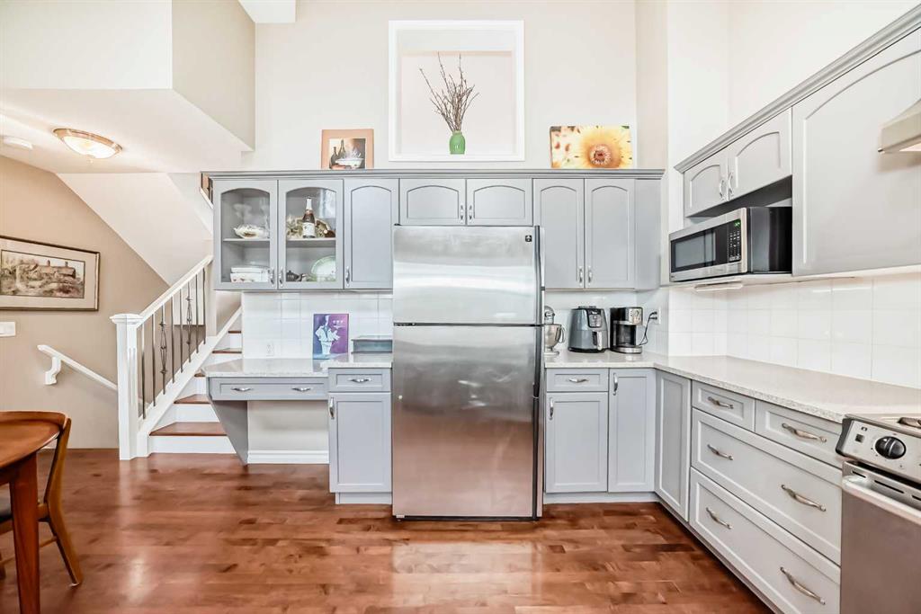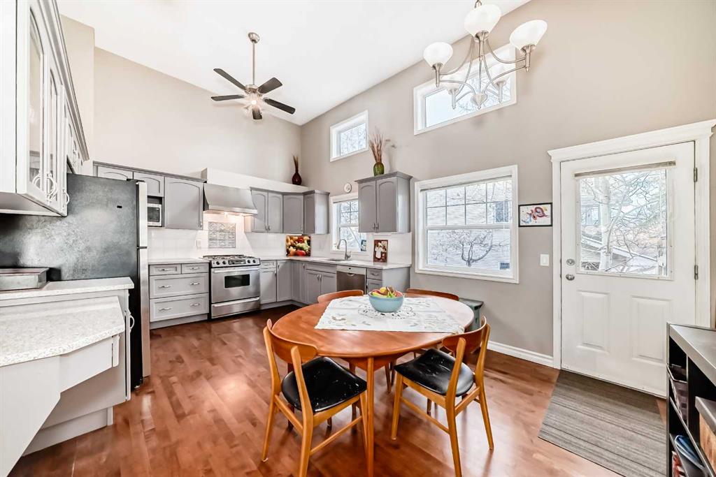 Tucked away on a quiet cul-de-sac in Inglewood, this beautifully maintained townhome offers the perfect blend of riverside nature and inner-city convenience. A charming walking path winds between ponds and streams directly behind the home, connecting to the extensive Bow River pathway system and nearby Pearce Estate Park. You’re just steps to Harvie Passage, the river, and scenic green spaces, and only a short stroll to Inglewood’s vibrant shops, restaurants, and entertainment district on 9th Avenue SE. The spacious updated kitchen and dining area feature dramatic vaulted ceilings, quartz countertops, painted cabinetry (2019), stainless steel appliances including a gas stove, and hardwood flooring. This bright space opens onto a private back deck with a gas line for your barbecue, making it ideal for everyday living and entertaining. A sunny front perennial garden adds great curb appeal. Hardwood flows up to the inviting living room, filled with natural light from large windows overlooking the promenade and green space. A cozy gas fireplace anchors the room, and a stylish designer half bath completes this level, giving the main living area a warm, welcoming feel. Upstairs you’ll find two generous bedrooms, each with its own ensuite and walk-in closet, providing excellent privacy for owners, guests, or roommates. A versatile open nook on this level works perfectly as a home office, reading corner, or yoga space, with pleasant views to the surrounding trees. The finished lower level offers a great bonus area currently used as an office, along with laundry and ample storage. Additional upgrades include a newer hot water tank (2015) and well-maintained interior finishes, making this home move-in ready. With its quiet cul-de-sac location, direct access to pathways, proximity to the Bow River, Pearce Estate Park, Harvie Passage, and the heart of Inglewood, this townhome delivers a sought-after lifestyle of walkability, recreation, and charm.