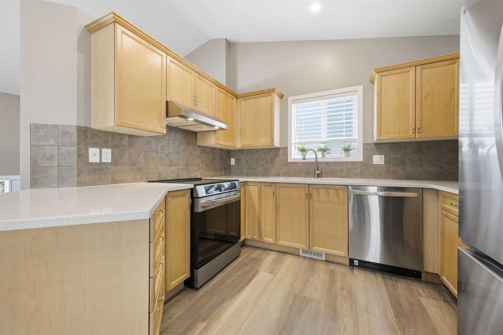 OPEN HOUSE SATURDAY, FEBRUARY 21ST FROM 2-4 PM. This charming 3 bedroom bi level in Airdrie’s desirable Morningside community has been beautifully updated and is truly move in ready. Luxury, durable vinyl plank flooring and fresh paint span the main level, setting the tone for the bright living room with vaulted ceiling & cozy gas fireplace, a spacious dining area perfect for hosting family and friends, and a refreshed kitchen featuring quartz countertops, abundant storage, and brand new stainless steel appliances. The primary bedroom offers a walk in closet and a nicely updated 4 piece ensuite complete with new tile, faucets, shower kit, and a built in medicine cabinet. Two additional bedrooms and an updated 4 piece main bath provide comfortable space for kids, guests, or a home office. Thoughtful upgrades continue throughout the home, including new blinds, custom closet organizers, solid interior doors, updated baseboards and casings, black hardware, new electrical outlets and switches, and modern lighting throughout—including recessed lighting. The walk up basement is an excellent blank canvas, ready for your future development plans to add even more living space. Outside, enjoy a sunny south facing backyard that has been newly landscaped with a stone patio, rock beds, trees, and fresh sod. A double detached garage adds convenience and easy parking year round. Ideally located close to shopping, schools, parks, and with quick access to QE II, this home offers comfort, style, and convenience. Immediate possession is available.