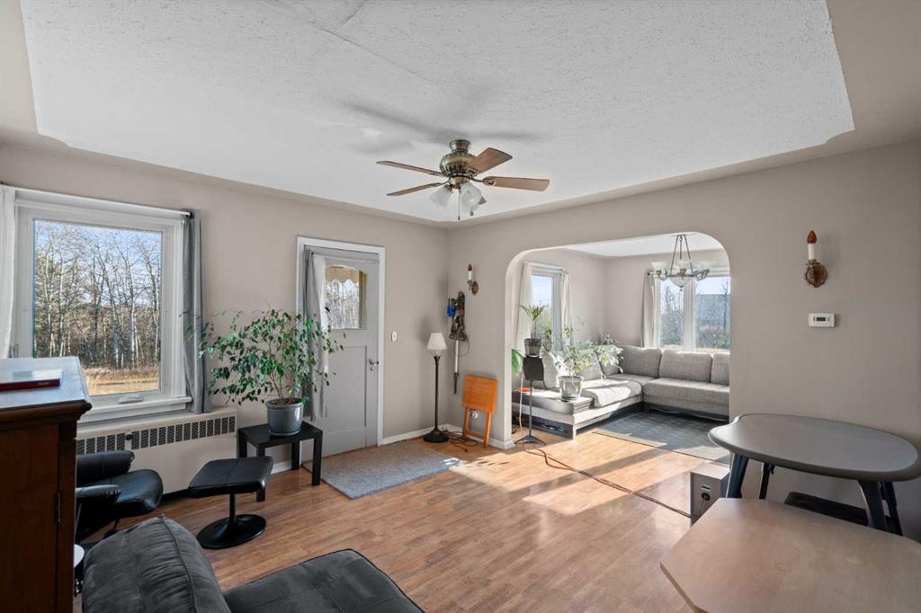 Packed with history, and refreshed with modern updates, this acreage is unlike anything else out there. The main home, once a historic residence, was moved to the property and set on a solid modern basement with 9.5’ ceilings. Inside you’ll find lots of updates including freshly renovated bathrooms, new paint, main-floor laundry, a cozy gas fireplace in the dining area, and a boot room big enough to make any rural Albertan proud (with laundry and a bathroom nearby!). The primary suite features a new 4-pc ensuite, plus 5 additional bedrooms upstairs and 2 more in the basement. A large south-facing deck off the living room offers beautiful views towards the river valley. So much forward-thinking went into this home. It’s wired and ready if you ever want A/C, set up for a future garage with living space above, laundry plumbing in the storage room and dyed concrete in the basement that could look like marble with a finishing coat! Step outside where the property itself has stories, space, and serious wow-factor. It's located beside a quiet government access road; main house has new septic mound (2024), and each home has its own well with the main house boasting an impressive 25 GPM flow rate. There’s a massive 50×90 Quonset on asphalt with 100-amp service, a super cute gazebo with wood-burning stove, cross-fencing and pens for animals, walking & quadding trails through the valley and leading down to the river, and wild raspberries, saskatoons & fruit trees tucked along the way. Even a 1900s ranch-hand cabin (now a shed) adds to the story. To top it off, there is a second 4-bedroom 1948 home full of charm on the property with great features; triple-pane windows, boiler heat, an old-school ice room & cold room. Peaceful, practical, and truly one-of-a-kind — this is a property you have to experience to appreciate. Come see it… you’ll fall for it before you hit the end of the driveway.