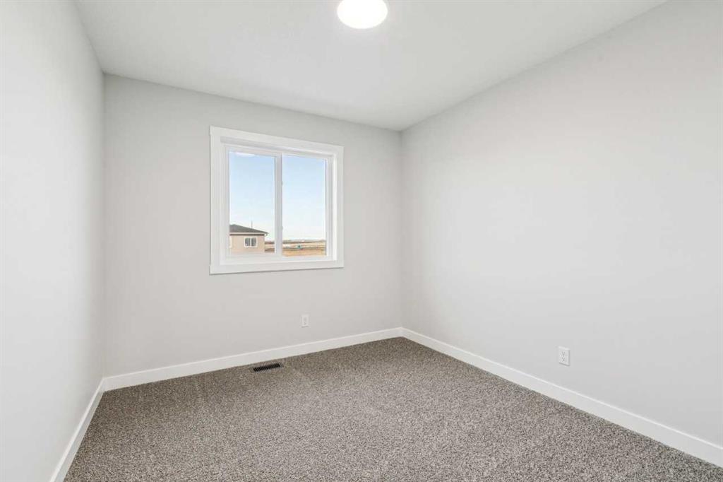 Brand new quick possession duplex by Shane Homes, thoughtfully designed for modern living. This home offers 3 bedrooms upstairs plus a versatile flex room, perfect for a home office, play space, or cozy lounge. Enjoy the convenience of upstairs laundry and unwind in the primary bedroom featuring a walk-in closet and private ensuite. The main level showcases an open-concept layout with a spacious kitchen island, walk-in pantry, and plenty of room to entertain or relax. A side entry door adds future potential, while the unfinished basement is ready for your vision. Located in Cornerstone, this home blends style, function, and flexibility.