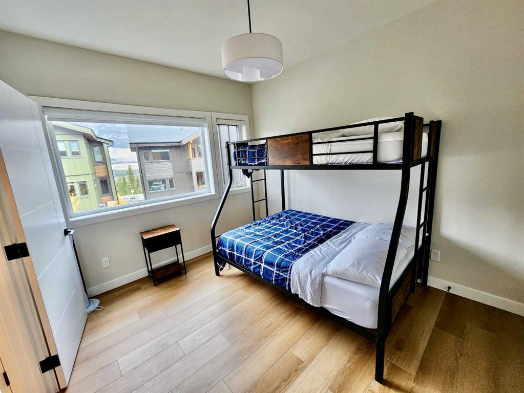 Fully Furnished, turnkey opportunity within Three Sisters Mountain Village, just under an hour from Calgary. This beautiful first-floor 2-bedroom, 2-bath unit features modern kitchens with stainless steel appliances and stone countertops, along with an oversized deck perfect for enjoying breathtaking panoramic mountain views. The primary bedroom includes a private 4-piece ensuite, while the second bedroom offers scenic views and a convenient office nook. Additional highlights include a "car-and-a-half" garage with ample storage and close proximity to the future Gateway Business District. Still covered under the Alberta New Home Warranty Program, this unit combines sustainable luxury with peace of mind. Whether for personal enjoyment or as an investment in Canmore’s thriving real estate market, this home is priced to sell fast—don’t miss your chance to embrace the mountain lifestyle today. **The unit comes with 55' TV, Sectional, Dining Table, 2 X Beds with side tables and all Kitchen appliances and small ware**