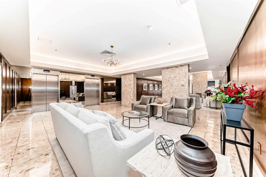 Spacious 2 bedroom, 1.5 bath unit in Mission's prestigious Roxboro House! This well maintained suite has a large, private feeling balcony which spans the width of the entire apartment. It has a view of the Calgary Tower plus an open, bright layout. Kitchen includes a desk/eating bar, a newer stainless steel oven, and recently painted cabinets. Ample closet space in the generous primary bedroom. Use the second bedroom as a private office/den or guest quarters. Features in-suite storage, plus an assigned storage locker (#63 in the basement) so you'll have room for everything. Comes with a parking stall in the heated parkade (#80 - which is on the same level as the unit for convenient access), plus all the building's luxury facilities: huge, beautifully landscaped 4th floor sundeck, pool, hot tub, sauna, party room, gym, games room, large hobby and woodshop room, main floor 2 bedroom guest suite with kitchen available to be booked for visiting friends and family (rate ranges from $100 to $150/night), visitor parking, 24-hour security staff, and bike storage! Utilities, including electricity, are part of the condo fee (except cable/phone). Roxboro House is currently undergoing hallway modernization, bringing an elegant and stylish new look to the building. Second floor hallway reno is underway so check out another finished hallway to see how great it'll look when finished. This locale is perfect for walking or biking as you're conveniently near the Elbow River pathway, groceries, and amenities in the heart of Mission and 4th Street.