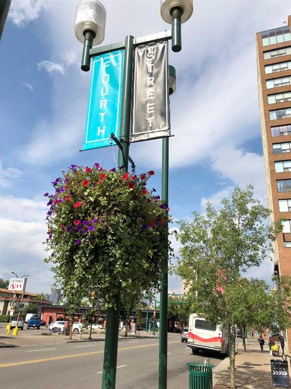 ** OPEN HOUSE Sunday March 15 from 11 AM to 1 PM ** Spacious 2 bedroom, 1.5 bath unit in Mission's prestigious Roxboro House! This well maintained suite has a large, private feeling balcony which spans the width of the entire apartment. It has a view of the Calgary Tower plus an open, bright layout. Kitchen includes a desk/eating bar, a newer stainless steel oven, and recently painted cabinets. Ample closet space in the generous primary bedroom. Use the second bedroom as a private office/den or guest quarters. Features in-suite storage, plus an assigned storage locker (#63 in the basement) so you'll have room for everything. Comes with a parking stall in the heated parkade (#80 - which is on the same level as the unit for convenient access), plus all the building's luxury facilities: huge, beautifully landscaped 4th floor sundeck, pool, hot tub, sauna, party room, gym, games room, large hobby and woodshop room, main floor 2 bedroom guest suite with kitchen available to be booked for visiting friends and family (rate ranges from $100 to $150/night), visitor parking, 24-hour security staff, and bike storage! Utilities, including electricity, are part of the condo fee (except cable/phone). Roxboro House is currently undergoing hallway modernization, bringing an elegant and stylish new look to the building. Second floor hallway reno is underway so check out another finished hallway to see how great it'll look when finished. This locale is perfect for walking or biking as you're conveniently near the Elbow River pathway, groceries, and amenities in the heart of Mission and 4th Street.