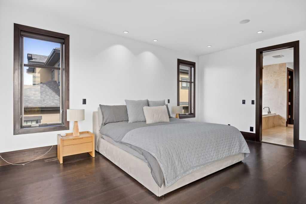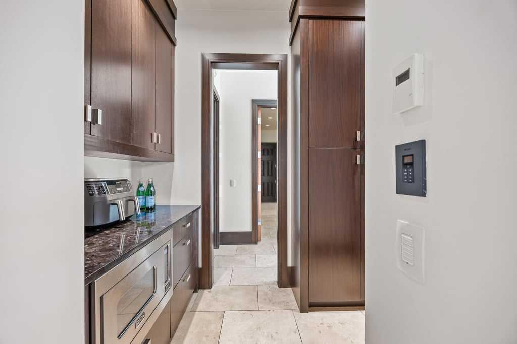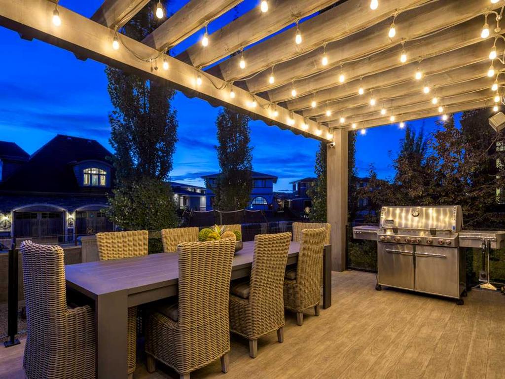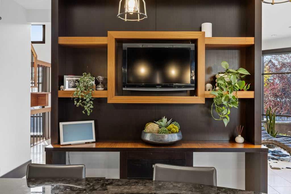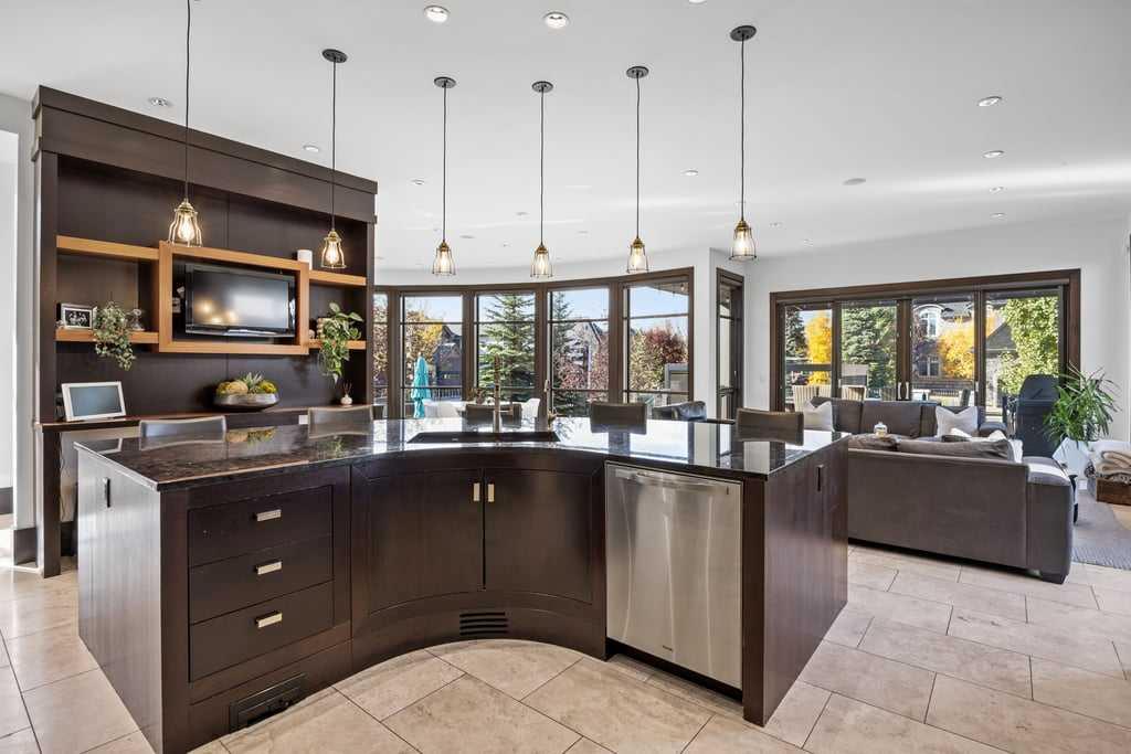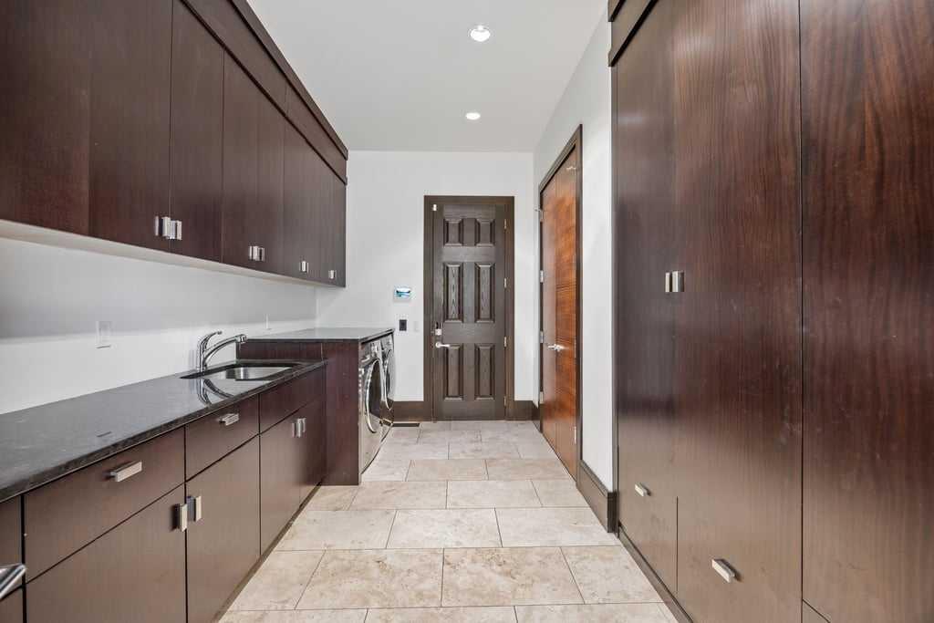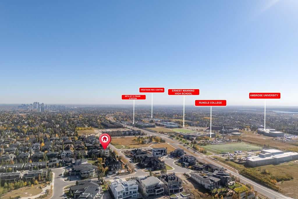 Set in the prestigious community of Aspen Estates, this custom-designed luxury home offers over 6,900 sq. ft. of total living space, blending architectural artistry with everyday comfort. From the moment you step into the dramatic 19-ft foyer—defined by its striking steel-framed glass wall—you’ll sense the sophistication and craftsmanship that define this exceptional residence. Every element has been meticulously curated. Rosewood cabinetry and solid doors, a Jatoba floating staircase, and heated limestone and hardwood floors create a seamless blend of warmth and refinement. Soaring 10-ft ceilings on the main level and 9-ft ceilings on the lower level enhance light and volume, while Montego linear fireplaces bring contemporary ambiance to the living spaces. The chef-inspired kitchen is the true heart of the home, combining form and function with a curved granite island, Sub-Zero and Wolf appliances—including a six-burner gas cooktop, double wall ovens, two dishwashers, and an integrated side-by-side refrigerator. A butler’s pantry and wet bar make entertaining effortless, whether hosting a quiet dinner or a lively gathering. With six bedrooms and five bathrooms, the layout offers exceptional flexibility for family and guests alike. The main floor includes a spacious bedroom with its own ensuite and walk-in closet—ideal for extended family or a private office retreat. Upstairs, each of the additional bedrooms features its own ensuite and walk-in closet, providing privacy and comfort for everyone. The primary suite stands as a serene escape, complete with a two-sided fireplace, 5x5 steam shower, deep thermal tub, and custom pillowed mahogany woodwork—a true statement of luxury. The lower level was designed as the ultimate entertainment and relaxation space, featuring a theatre room, large recreation area, wet bar, temperature-controlled wine cellar, golf simulator, dedicated office, and an additional bedroom—perfect for guests or live-in support. Outside, the property transforms into a private retreat designed for year-round enjoyment. Highlights include multiple patio spaces, a fire-pit, a covered hot tub area, an outdoor putting green, and an elevated deck with clear glass railing and BBQ—a seamless extension of the home’s indoor living spaces. Modern convenience meets timeless design with smart home automation, a five-zone lighting system, and computerized irrigation, ensuring ease, efficiency, and comfort at every turn.