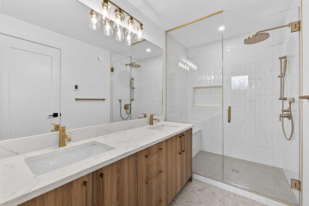 Ideally located in the wonderful community of North Glenmore Park, this 3 +1 bedroom custom built infill is beautifully appointed. The front door opens to a generous entrance way opposite a lovely dining room overlooking the fully landscaped front yard. The open concept floor plan flows smoothly from the dining room to the spacious kitchen with custom hoodfan and large island, perfect for entertaining. It then moves to the beautiful living room overlooking the fully fenced in and manicured backyard and porch. The adunance of natural light highlights the engineered oak hardwood floors, quartz counters and lovely light fixtures & plentiful cabinetry. The upper floor master bedroom is a true oasis with a lovely ensuite and spacious walk in closet. The other two bedrooms are generously sized with the main bath easily accessable to both. Upper laundry and nook finish off the upper level nicely. The basement is fully finished with a family room and wet bar, bedroom, bathroom, nook and storage. The oversized garage, fully fenced in & landscaped yard with underground sprinkler system finishes this property off very nicely. Hard to beat this amazing location which is close to a plethora of schools, bike pathways, public pool, running track, transit, hockey & curling arenas and be 7 min from DT. Book your appointment today!