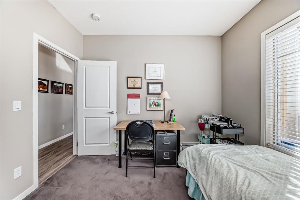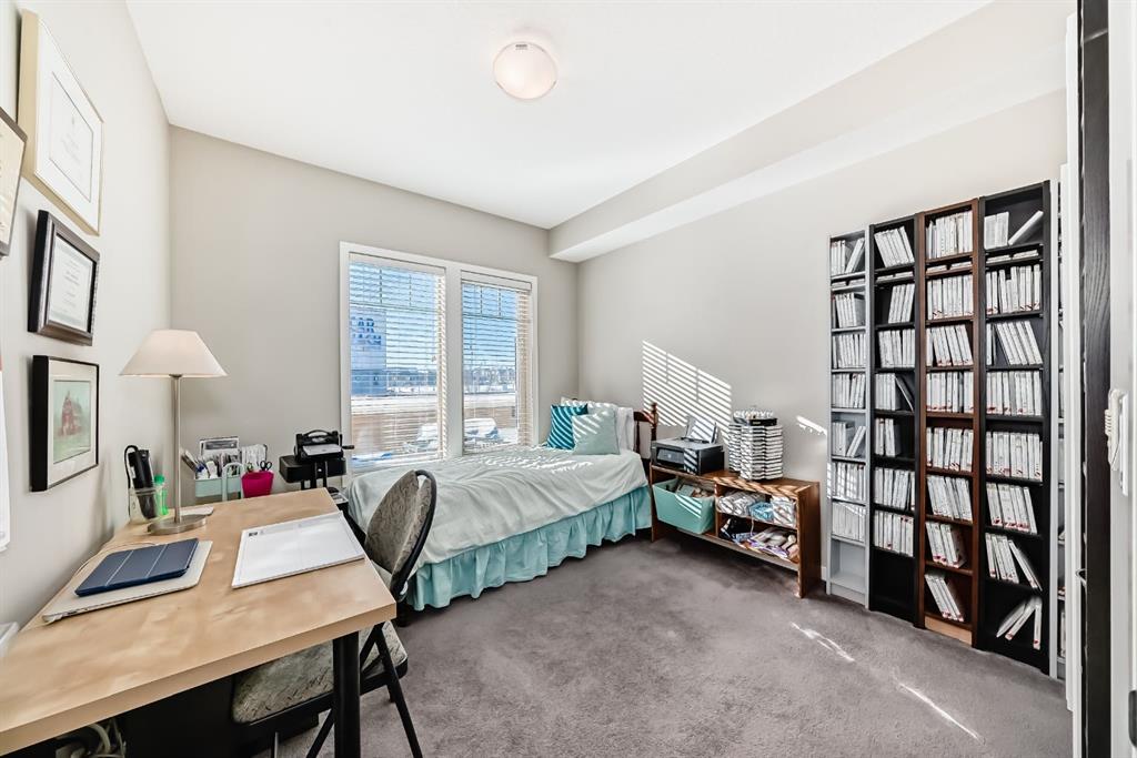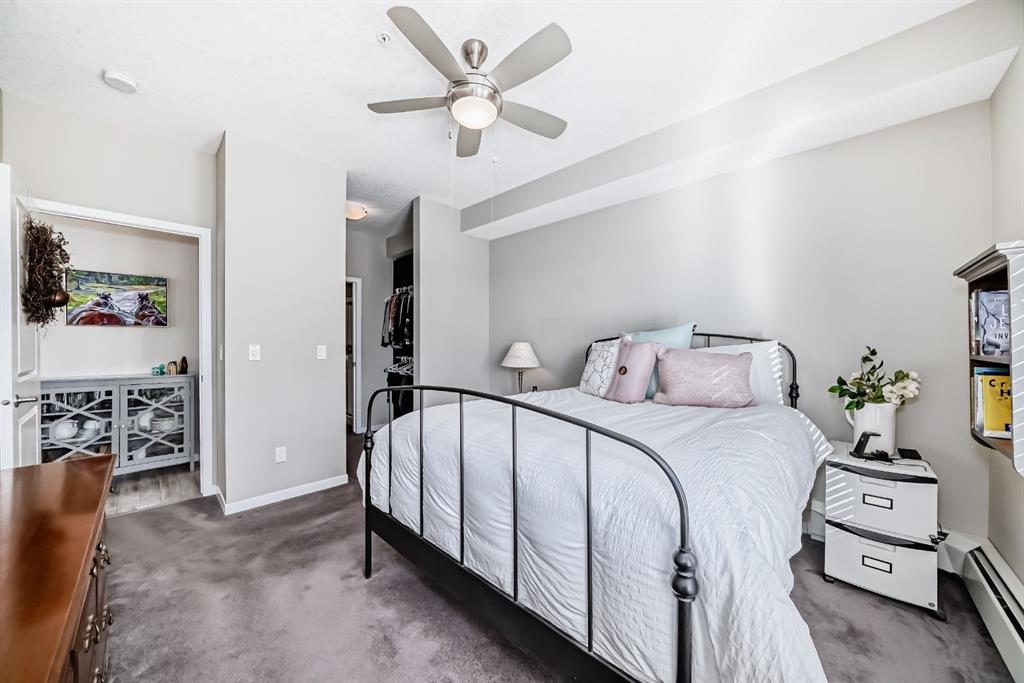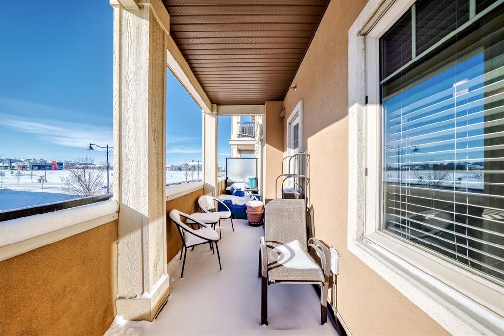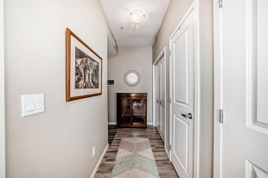 ***OPEN HOUSE THIS SATURDAY MARCH 14th FROM 12:00- 2:00pm.***Welcome to this beautifully maintained 2 bedroom, 2 bathroom corner unit in an unbeatable location. With desirable south facing exposure, this home is filled with natural light throughout the day, creating a warm and inviting atmosphere. The thoughtfully designed layout offers a rare hallway entrance that opens into a bright, open concept living space, creating both privacy and flow. A front entry closet and two additional pantry closets provide exceptional storage, while in unit laundry adds everyday convenience. The primary bedroom features built in shelving within the walk in closet and a private 3 piece ensuite bathroom. Stainless steel appliances were updated in 2019, and air conditioning keeps the space comfortable during the summer months, making this home truly move in ready. Step outside onto the impressive 36 foot south facing balcony with mountain views, an ideal extension of your living space to enjoy a quiet morning coffee or relax in the evening sun. Additional highlights include heated underground parking with a storage locker conveniently located directly in front of the stall, stairwell access just outside the unit, and a private gym within the building. Situated in a vibrant, amenity rich community with shops, dining, schools, and everyday essentials within walking distance, this is condo living at its best. Don't forget that you will have lake access all year round for swimming and skating! A wonderful opportunity to own in a highly sought after neighbourhood.
