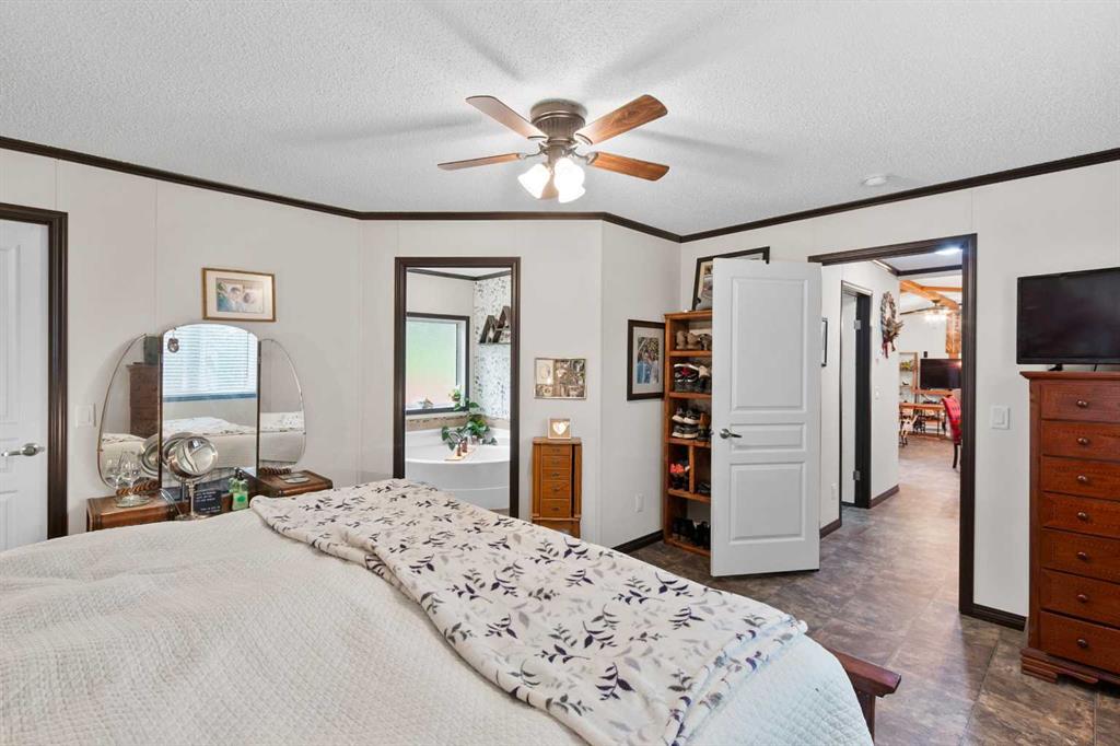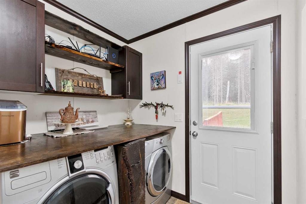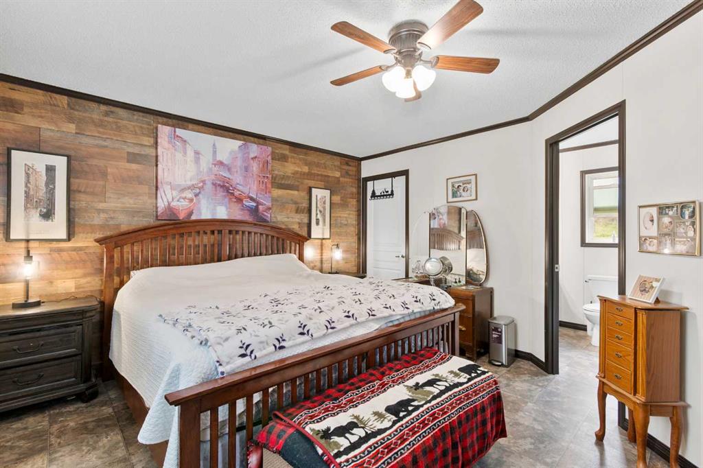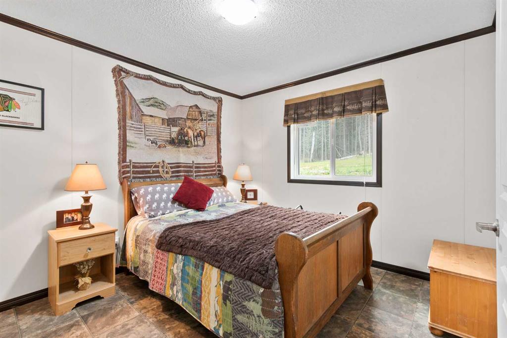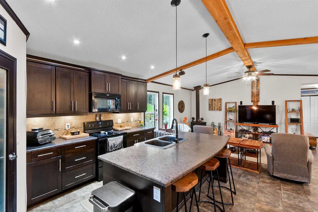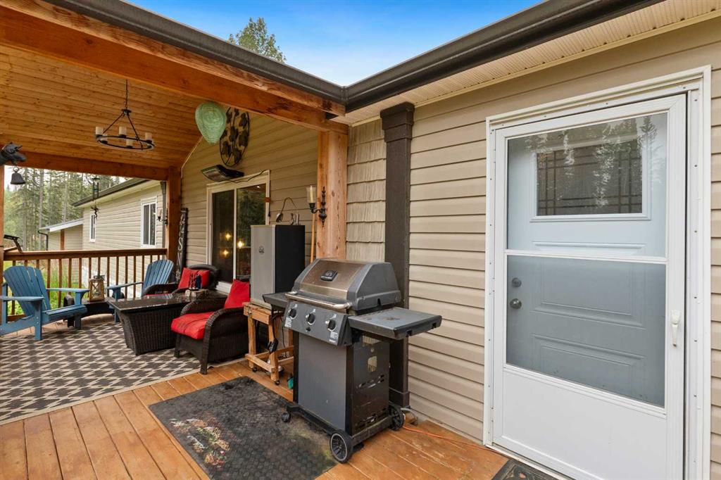 Set on a beautifully TREED SETTING, this 1,472 sq ft modular home offers the space and lifestyle acreage buyers crave. The OPEN-CONCEPT living area is warm and inviting, anchored by a WOOD BURNING FIREPLACE, exposed WOOD BEAMS & room to gather comfortably. A generous dining area flows into the functional kitchen featuring a center ISLAND, a COFFEE BAR and a large WALKTHROUGH PANTRY with convenient access to the laundry room and secondary entry, perfect for country living. The thoughtfully designed floor plan provides separation and privacy, with the primary suite tucked away on its own wing, complete with a walk-in closet and 4-piece ensuite. Two additional bedrooms and a second 4-piece bathroom are located on the opposite side of the home, ideal for family, guests, or a home office. Outside, enjoy wide-open space surrounded by forest, a DETACHED DOUBLE GARAGE, and a large WRAP AROUND DECK with pergola—an ideal spot to relax, entertain, and take in the peaceful, private setting that acreage living is all about. Additonally there is a Greenhouse, Wood Shed, and Hot Tub included with the property. You will love the PRIVACY of being at a dead end road and you cant beat the location being walking distance to the Little Red Deer River & community of Water Valley. Start living you Country Dream Life Today !!