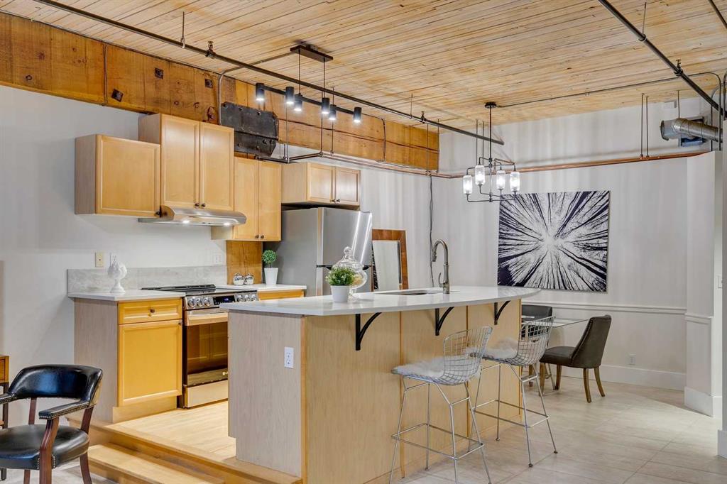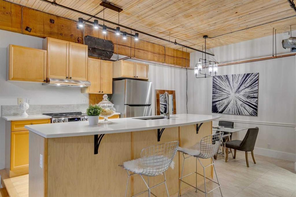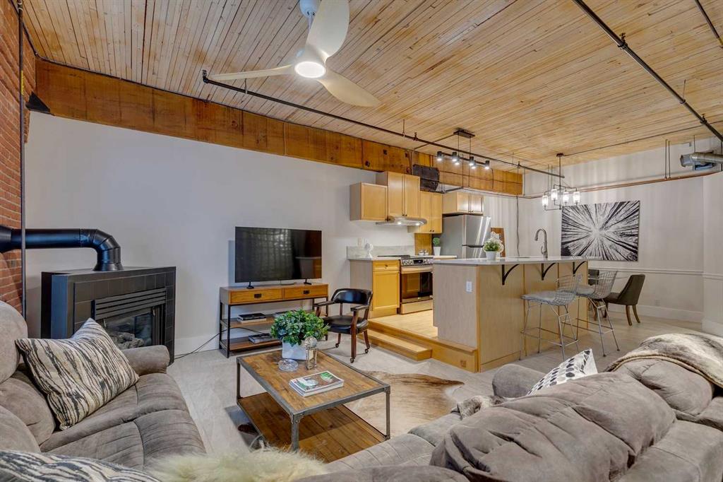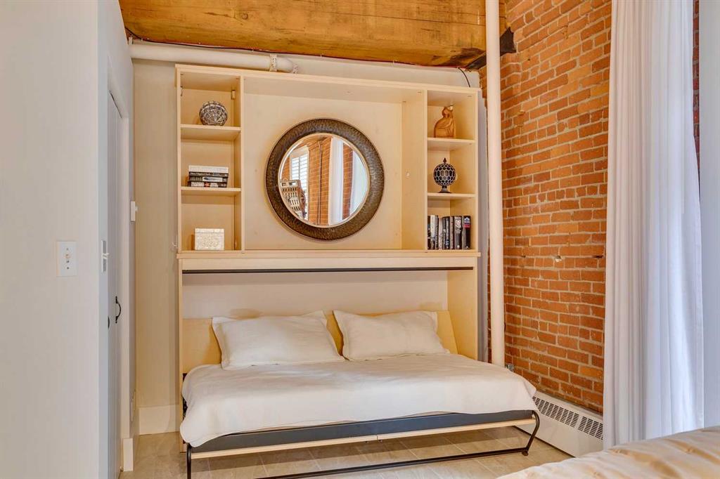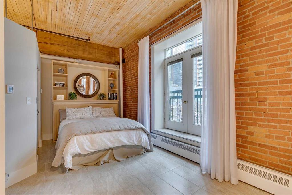 "THE HUDSON" a masterpiece loft, and piece of The Hudson Bay company historic building warehouse converted to loft. LIVE, WORK, & RELAX IN THIS QUIET FRESHLY UPDATED UNIT! BRAND NEW ENERGY EFFICIENT LG APPLIANCES, FRESHLY PAINTED , & UPDATED FIREPLACE. NEW WINDOW COVERINGS, HEATED FLOORS, MURPHY BED & QUEEN, for the convenience of an additional bed. DID I MENTION THE LARGE UNDERGROUND HEATED TITLED PARKING?! WALK 1 BLOCK NORTH UNDER THE BRIDGE PUTS YOU AT "THE CORE" accessing all your downtown clients. Starting at EIGHTH AVENUE PLACE (CONNECTING YOU TO CALGARY'S +15 , CORE SHOPPING, MEDICAL, DENTAL, & AMMENITIES. Steps away from luxury hotels & lounges, trendy restaurants; be it upscale LUCA & FLEETWOOD , or more casual outings down the street to RODNEY'S OYSTER BAR, THAI SAIGON, CRAFT 'ROOFTOP PATIO or go BOWLING AT NATIONAL. THIS IS A GEM, IN A QUIET, CLEAN, WELL RAN BUILDING. SET UP YOUR PRIVATE SHOWING TODAY, THIS ONE WONT LAST!