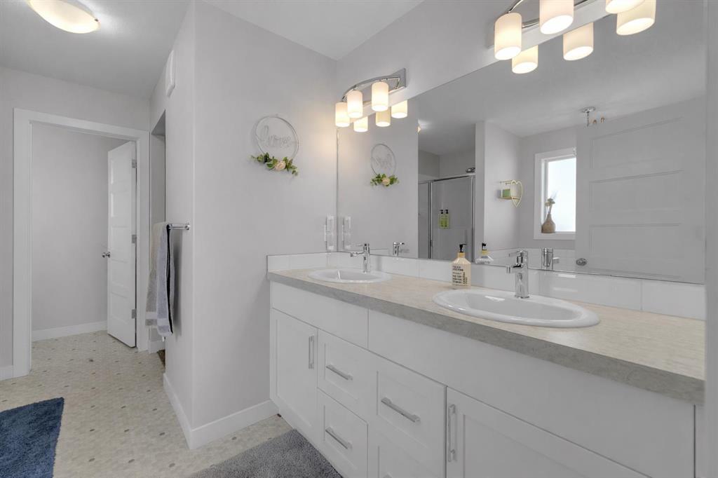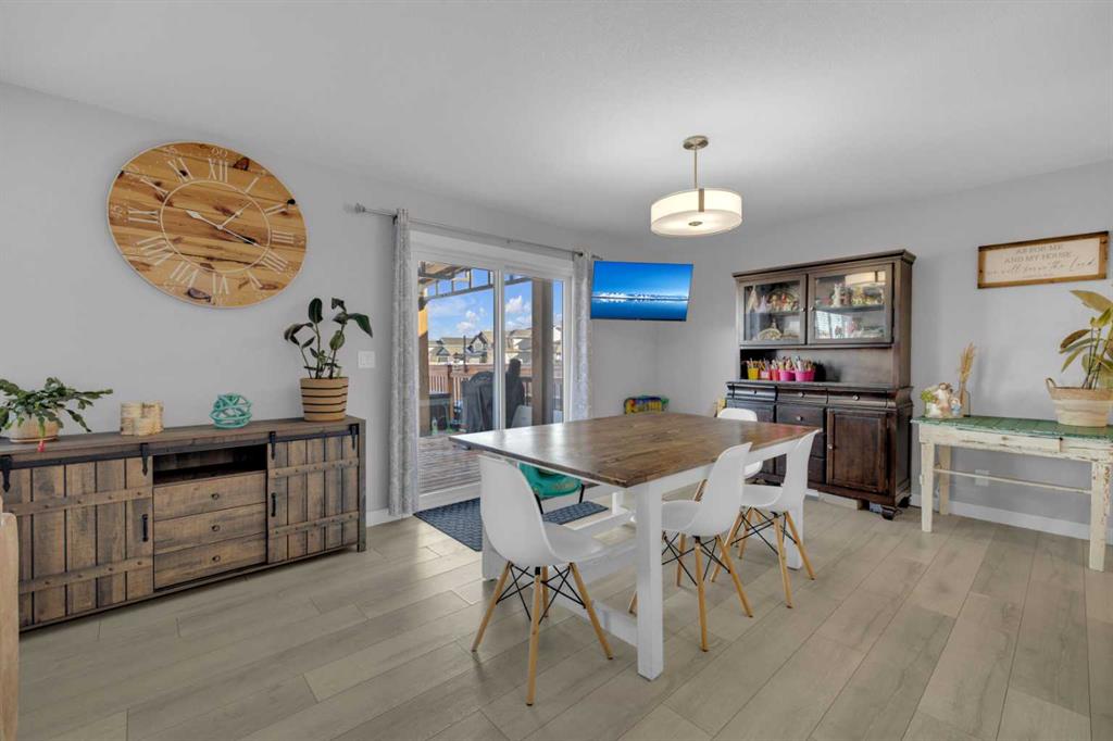 Take a look at this fully finished two-storey home offering space and functionality for the whole family, with five bedrooms total and a versatile bonus room on the upper level. The thoughtfully designed floor plan is ideal for larger families and everyday living. The main floor features an open-concept living room, kitchen, and dining area, along with a convenient powder room. A walk-through pantry connects the garage entry to the kitchen. The kitchen features bright white cabinets and stainless steel appliances that are included. Sliding glass doors in the dining area lead to a large deck and fully fenced yard, complete with room for a trampoline, pool, swing set, shed, and a dedicated dog run. Upstairs you’ll find a spacious bonus room, three bedrooms, two full bathrooms, and upper-floor laundry. The primary suite includes a five-piece ensuite with double sinks, a soaker tub, separate shower, water closet, and a walk-in closet. The fully finished basement adds even more living space with a family room, two additional bedrooms, and a third full bathroom. Why build new when you can have it all done for less and just move right in!