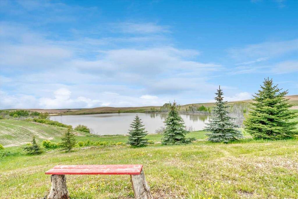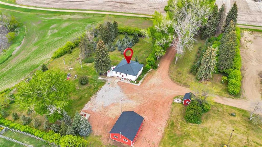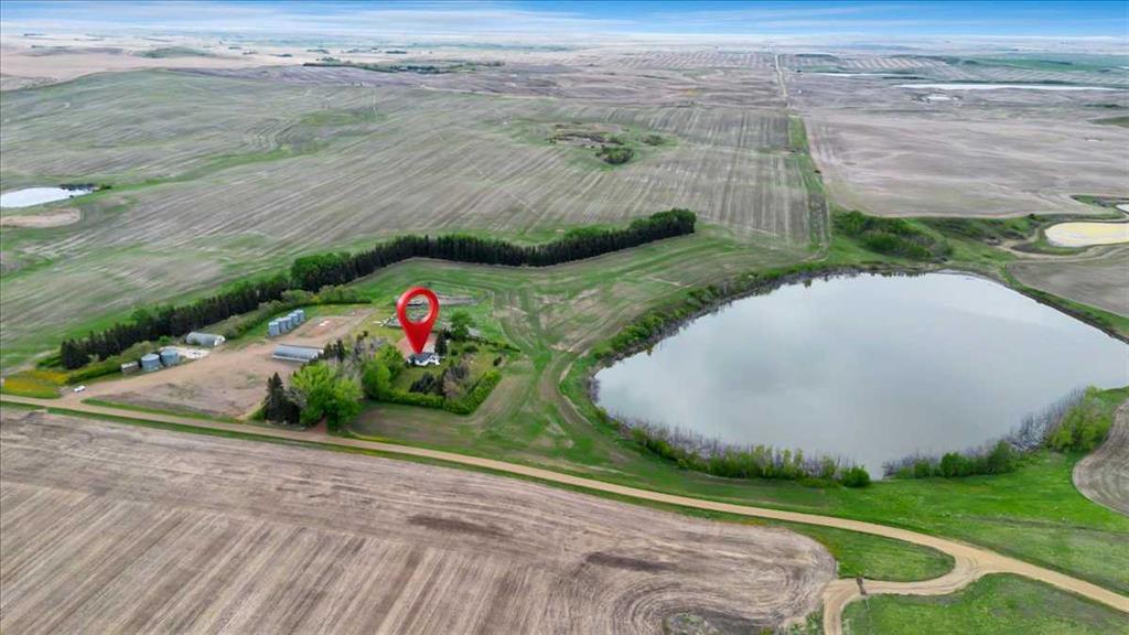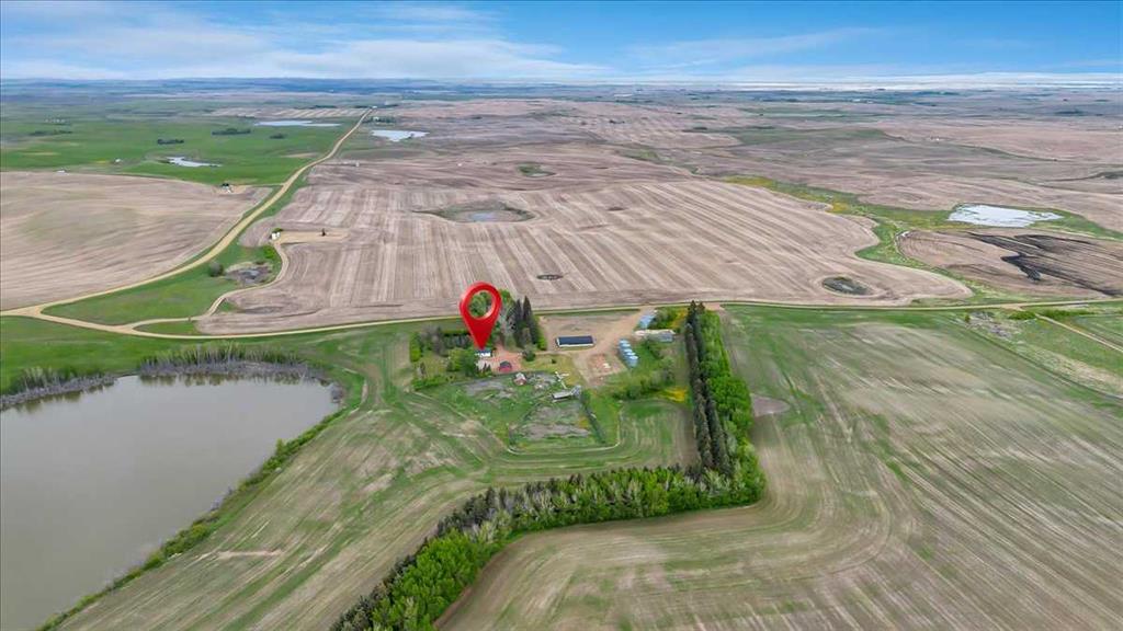 Escape to serenity with your own private recreational farm retreat on 35 stunning acres. This unique property features a long, scenic driveway and beautifully maintained treed trails—perfect for quadding, horseback riding, walking, and snowmobiling. Surrounded by thousands of acres of open agricultural land, you’ll enjoy unmatched privacy and endless space to explore & relax Located just 1 hour east of the Calgary airport, the property also offers access to a 25-acre private slough/pond ideal for water activities, wildlife viewing, or simple quiet time by the shore. A spacious hillside fire pit just off the back deck overlooks the water, creating the perfect setting for relaxing evenings and unforgettable views year-round In addition to the charming cabin, the property includes two large Quonset huts (previously used for combines) and a heated double garage, providing ample space for equipment, recreational vehicles, or workshop use. Approximately 12 acres are farmable, with grain bins already in place that can generate modest supplemental income. For added convenience, snow removal, yard maintenance, and general property upkeep can be managed by the neighboring farmer—making this an ideal low-maintenance getaway with income potential.