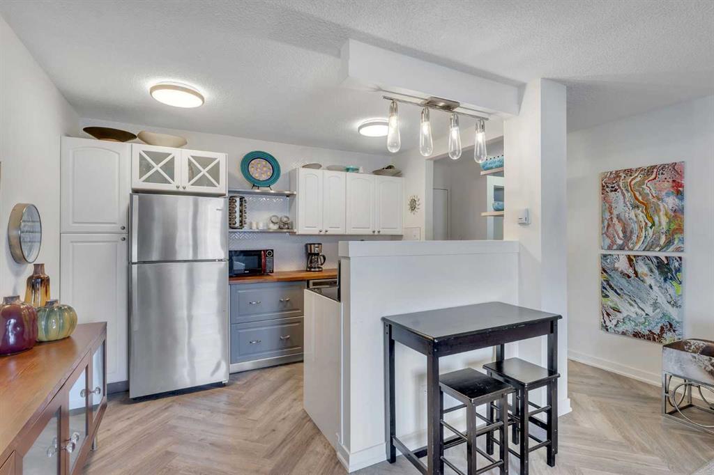 Stylish, 1-bedroom in a quiet, concrete building in the heart of Sunalta — renovated, walkable, and move-in ready. This thoughtfully redesigned condo blends industrial style with smart function. The updated kitchen features a sleek herringbone tile backsplash, wood countertops, and stainless steel appliances. Cook while you entertain guests in the open living room and dining space, and enjoy meals or morning coffee al fresco on the private balcony. The spacious bedroom has plush carpet and a large walk-in closet with a trendy barn door. The 4-piece bathroom renovation includes a glass shower screen, upgraded fixtures, a modern sink ensemble, and tiled floors. There is no shortage of storage in this unit - ample cabinets, pantry space, and two large closets. Other notable features are the luxury vinyl chevron floors, modern light fixtures, freshly painted walls, assigned parking stall and communal laundry room. Set within one of Calgary’s most walkable, urban-yet-residential pockets, this neighbourhood combines historic charm and exciting revitalization. This home sits just outside the downtown core and steps from 17th Ave with easy access to restaurants, bars, breweries, and everyday amenities. It’s a 7-minute walk to the Sunalta C-Train station, across the street from the Calgary Tennis Club – perfectly positioned for those that want to enjoy the lively inner-city scene without being right in it. This apartment is an exceptional option for first-time buyers, investors, or down-sizers seeking a low-maintenance home with nothing left to do but move in.
