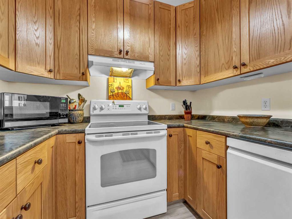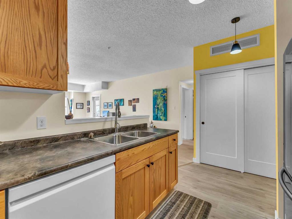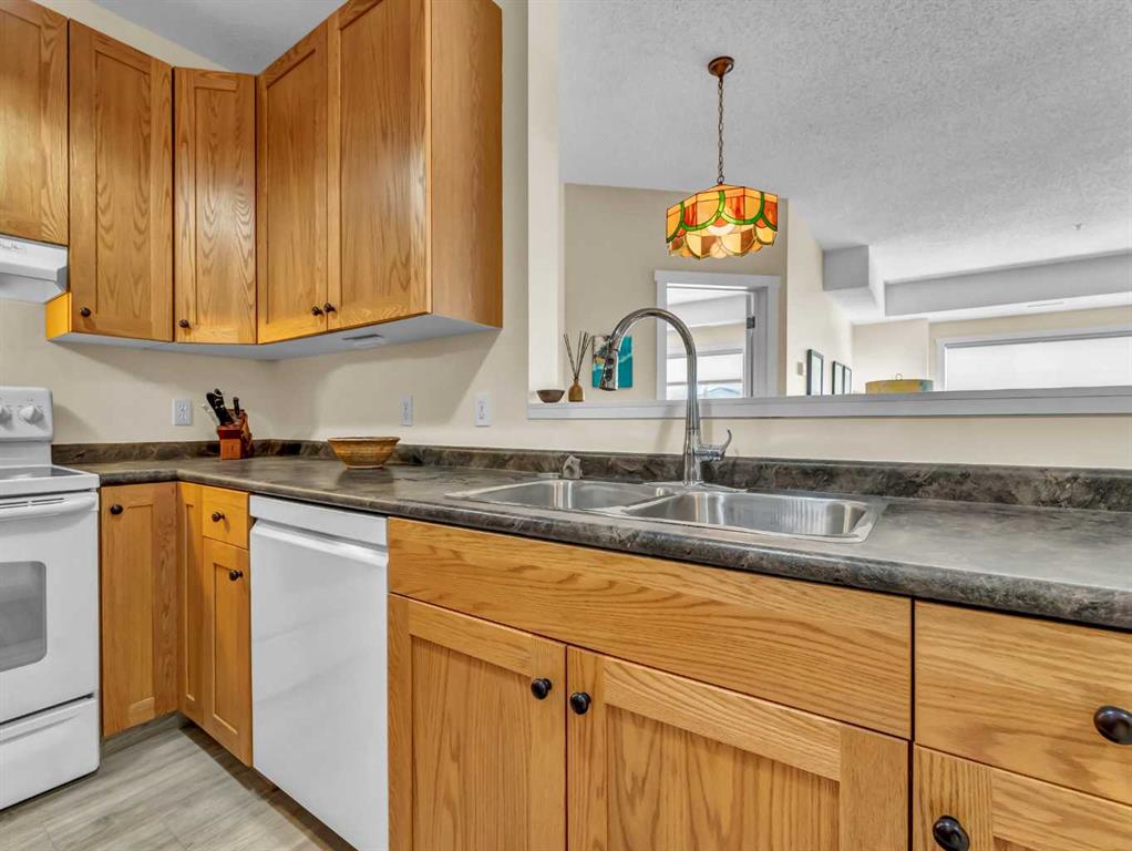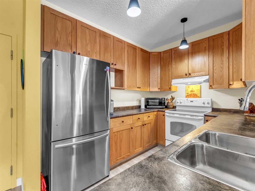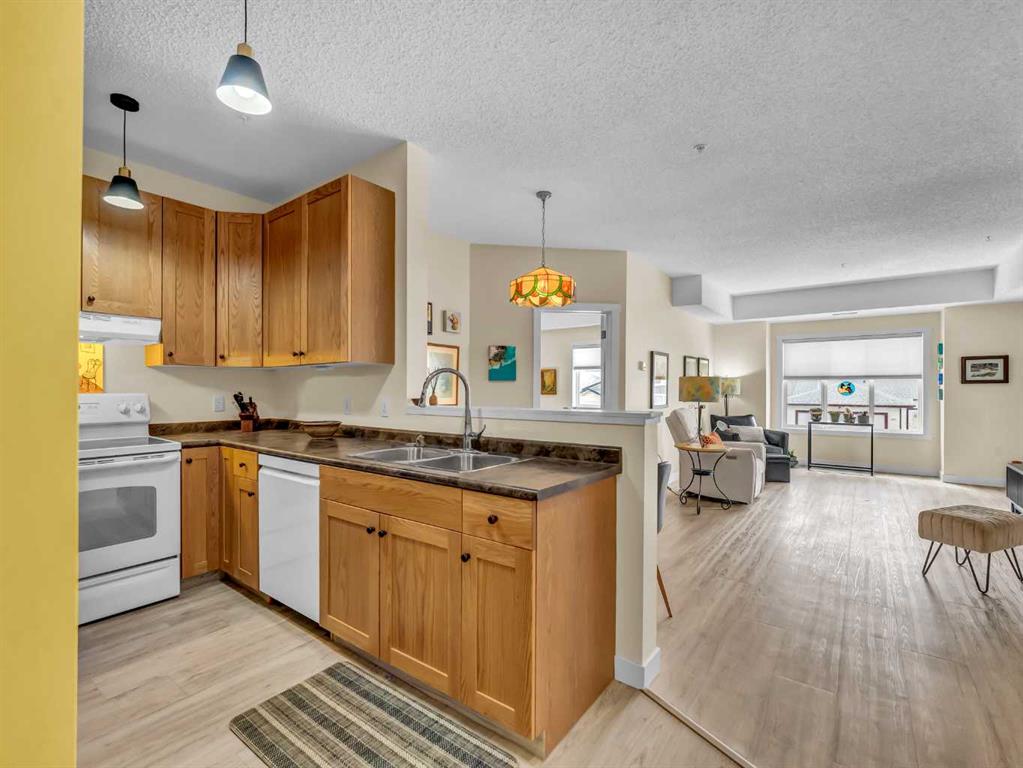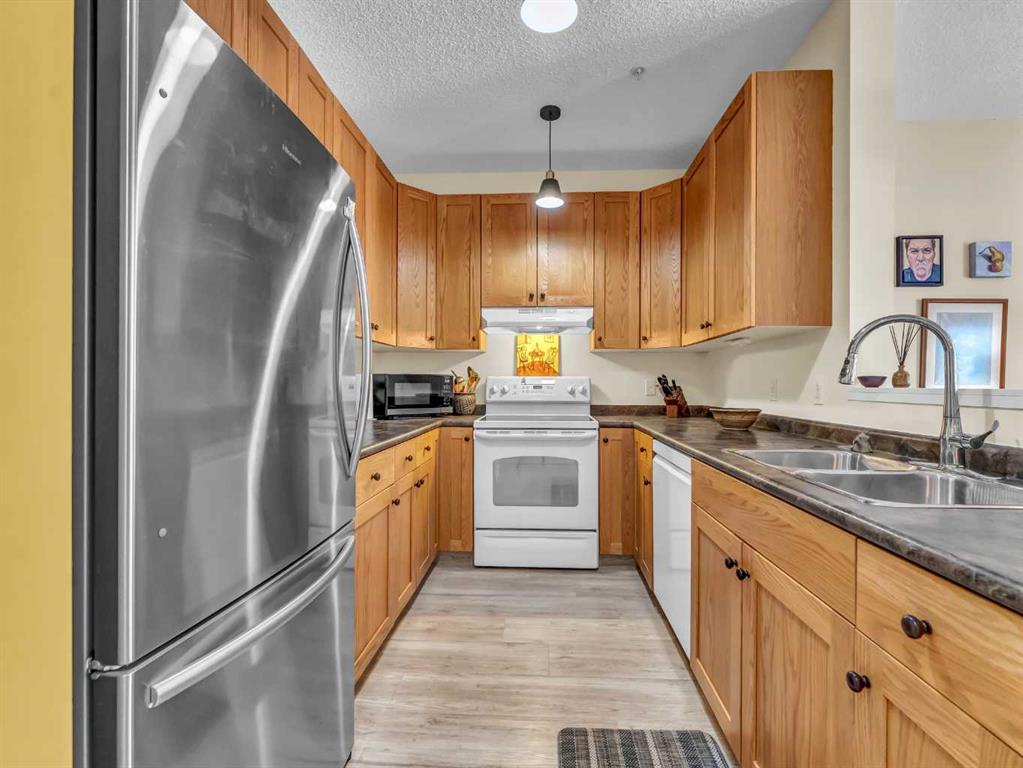 Welcome to this well-appointed second-floor condo in the sought-after Saamis Heights neighbourhood! Offering 935 sq ft of comfortable living space, this unit features 2 generous bedrooms and 2 full bathrooms, all within a bright and open-concept layout. The functional U-shaped kitchen provides ample cabinetry and counter space and comes complete with a full appliance package. The dining area flows seamlessly into the sun-filled living room, creating an inviting space for everyday living and entertaining. Step outside to your private balcony—perfect for enjoying your morning coffee. The spacious primary bedroom includes a walk-through closet and a 3-piece ensuite with a walk-in shower. A second bedroom, additional 3-piece bathroom, and convenient in-suite laundry complete the interior. The home is finished with neutral tones, updated flooring, and unique handmade light fixtures throughout. Additional highlights include secure underground titled parking, extra storage, and central air conditioning. Condo fees of $486.65/month cover all utilities (excluding cable and phone), as well as professional management, snow removal, and grounds maintenance. Residents enjoy access to a common room with cozy fireplaces, a kitchen for gatherings, and fitness equipment. With no age restrictions and pet-friendly policies (with approval), this property offers flexibility for a variety of buyers. Ideally located close to schools, parks, walking paths, the college, and recreational facilities, this condo delivers convenient, low-maintenance living. Don’t miss your opportunity—book your private showing today!