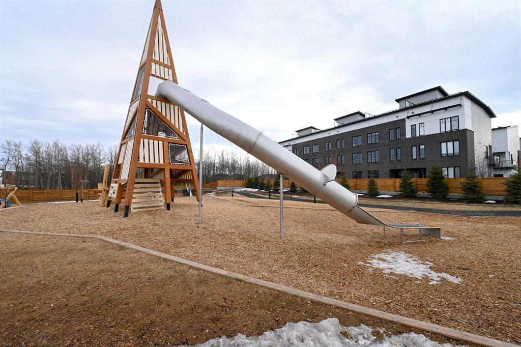 This modern, chic townhome offers 1,768 sq ft of beautifully developed space and is in impeccable condition with a thoughtfully designed floor plan and 9-ft ceilings on both the main and upper levels. The main floor is bright and wide open, highlighted by an expansive kitchen with a gas range, built-in fridge, and quartz countertops, flowing seamlessly into comfortable dining and living areas. Step outside to a spacious deck complete with a gas BBQ outlet—perfect for entertaining. Upstairs, you’ll find three generously sized bedrooms, including a primary retreat with a large walk-in shower and double sinks, plus the convenience of upper-floor laundry. The lower level adds valuable flexibility with an additional room ideal for a gym or home office. The double attached garage is insulated, heated, and finished with an epoxy floor, with all shelving included. This is also one of the rare units in the complex equipped with air conditioning. Located in West District—a vibrant and highly walkable community with a growing list of amenities, this home offers exceptional convenience. Enjoy nearby parks, including a dog park, walking paths, and quick access to Stoney Trail and Bow Trail for an easy commute anywhere in the city. Truly an exceptional home that is expected to sell quickly.