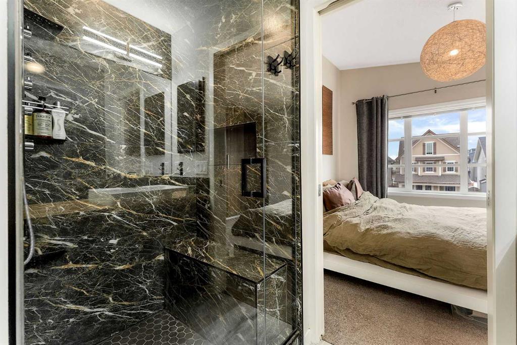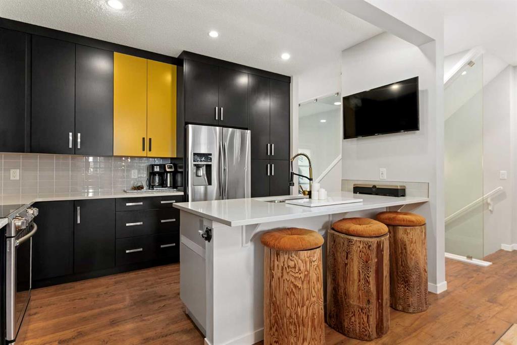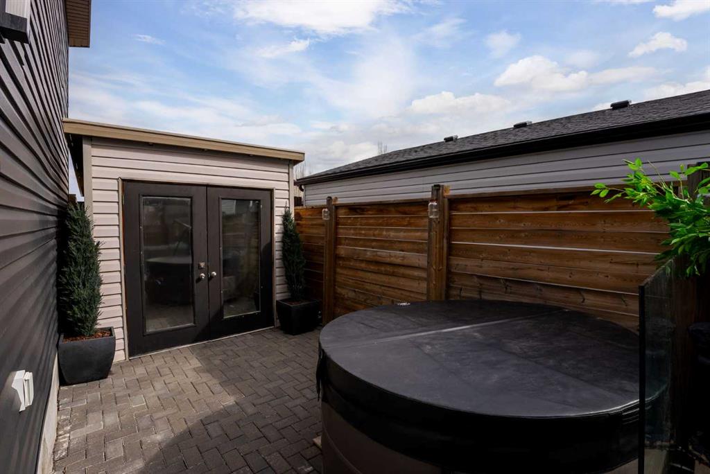 Loaded with high-end upgrades and modern enhancements throughout, this rare, fully integrated smart home delivers bold design, modern efficiency, and exceptional indoor-outdoor living. From the moment you arrive, the home sets itself apart with custom metalwork details and bespoke exterior accents that elevate curb appeal and reflect a level of craftsmanship rarely found at this price point. Featuring a brand-new architectural shingle roof with turbo vents for attic rain protection, durable vinyl and Hardie board siding, new double-pane energy-efficient windows, upgraded electrical panel, enhanced HVAC system, whole-home water filtration, smart thermostat, and full home automation, this residence was thoughtfully designed for comfort, convenience, and long-term value. Inside, architectural details continue to impress with a striking feature fireplace wall, full-height tempered glass architectural divider, built-in media shelving, and whole-home smart lighting and dimmers. The upgraded kitchen showcases quartz countertops, modern cabinet refacing, pull-out storage organizers, stylish backsplash, and a smart fridge with hidden pantry entry, blending sleek aesthetics with everyday functionality. Upstairs, the spa-inspired ensuite delivers standout luxury with a custom walk-in steam shower, rainfall showerhead, frameless glass enclosure, oversized tilework, soaker tub, double vanity with LED mirror, and motion-sensor lighting. Thoughtful storage solutions continue throughout with closet organizers, built-in shelving, a mudroom with custom storage, and an organized laundry space featuring Samsung washer and dryer. Outdoor living is where this home truly shines. Enjoy a custom deck with frameless glass railings, private hot tub retreat with glass privacy screen, and a sunken firepit with built-in seating, all surrounded by professional landscaping, horizontal privacy fencing, solar and wired exterior lighting, and permanent Celebrite holiday lighting. The bespoke exterior detailing, stamped concrete pad with compass inlay, and upgraded alley access further reinforce the unique design character of this property. The fully finished and painted garage expands the versatility of this home, offering the ideal environment for a workshop, hobby space, or gear enthusiast, while also featuring golf simulator capability, projector setup, custom storage solutions, and a rare wood-burning garage fireplace—creating a truly one-of-a-kind space you simply don’t see every day. Offering 3 spacious bedrooms, 2.5 bathrooms, 1,672 sq ft above grade, and 870 sq ft of basement space with egress windows, this home delivers 2,536 sq ft of total potential living space in a highly sought-after Copperfield location. A truly unique opportunity where luxury, craftsmanship, technology, and lifestyle come together.