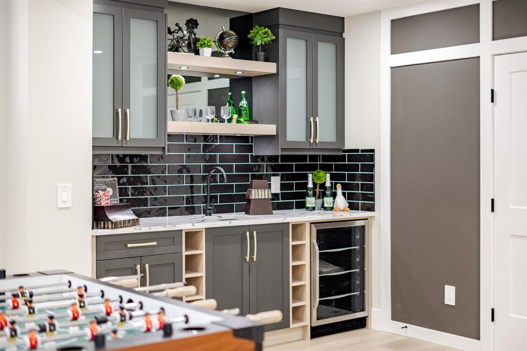Welcome to this showhome by Twenty First Century Homes, located in the growing community of Waterford Estates in Chestermere. Offering approximately 4,500 sq ft of developed living space on a 45’ x 113’ lot, this property provides a spacious and functional layout designed for modern family living. The main floor features 10’ ceilings, an open-to-above living area, family room, dining space, and a full 3-piece bathroom. A versatile flex room can function as a bedroom, office, or additional living area. The kitchen is equipped with upgraded appliances and complemented by a walk-through spice kitchen with direct access to the mudroom and triple attached garage. Upstairs, you will find 4 generously sized bedrooms, each with walk-in closets, including two primary bedrooms with private ensuites. A bonus room with tray ceiling detail and an open-to-below feature enhances natural light and openness. The upper-level laundry room includes cabinetry and a sink for added convenience. The fully developed basement expands the living space and includes 2 additional bedrooms, a bathroom, a games/recreation room, and a wet bar. Located close to schools, parks, shopping, and everyday amenities, this property offers substantial living space in a well-connected Chestermere location.