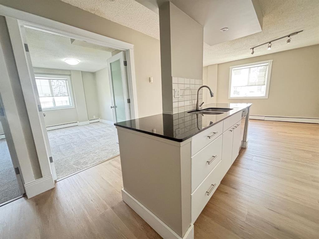 Welcome to this beautifully updated corner unit in the heart of Windsor Park—just minutes from Chinook Mall, the LRT, schools, and more. Featuring a bright open layout, expansive windows, brand new carpet and luxury vinyl plank flooring with a sunny south-facing balcony, this home offers the perfect mix of modern style and everyday comfort. The kitchen shines with granite countertops, stylish cabinetry, and a chic tile backsplash. Both bedrooms are spacious, with easy access to a sleek 4-piece bath. You'll also enjoy in-suite laundry with storage and an assigned covered parking stall. Set in a solid concrete building and move-in ready with quick possession available, this is a fantastic opportunity you don’t want to miss!