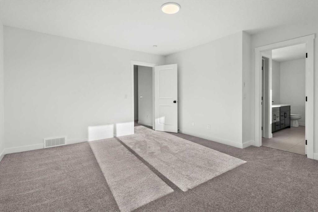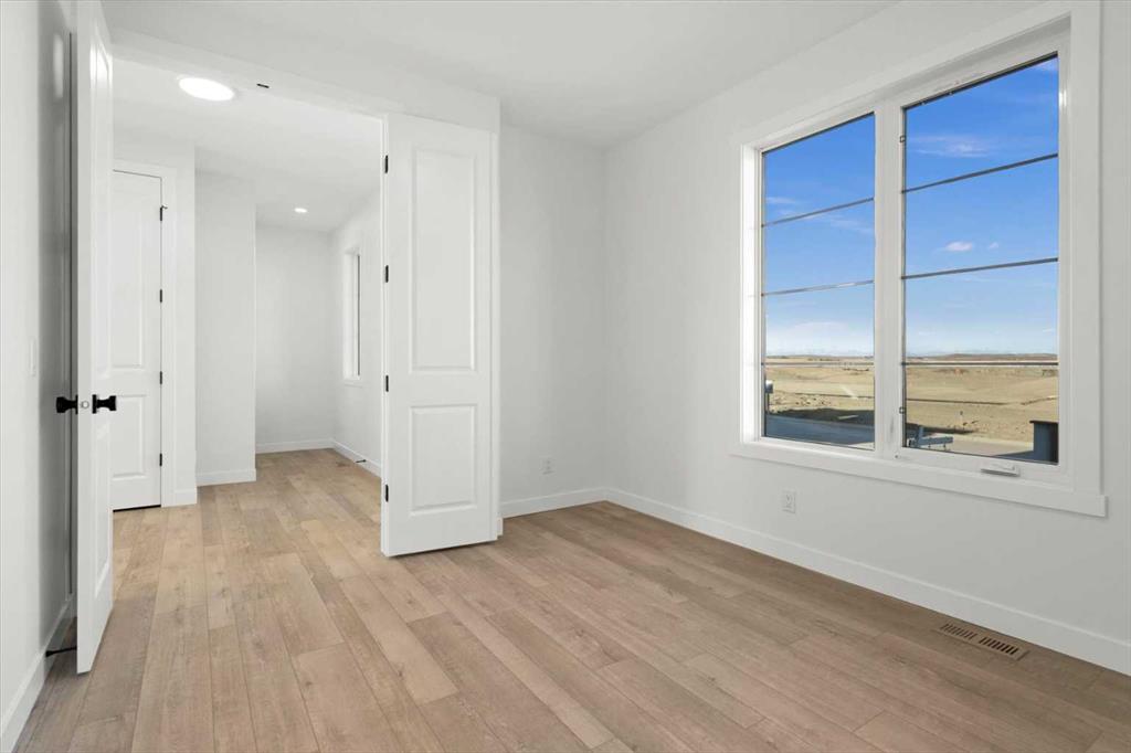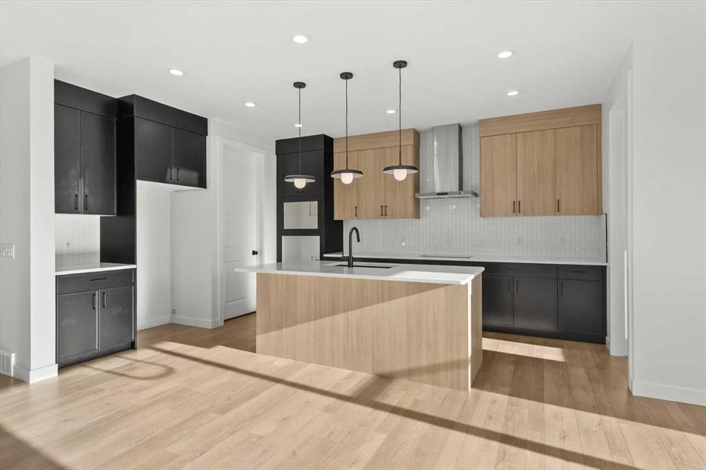 This beautifully designed modern build by Daytona Homes, set on a future lake facing street in Harmony, offers over 2100 sq. ft of thoughtfully designed living space. With exceptional curb appeal, striking black-and-white exterior accents, and a detached triple-car garage, this home makes a bold statement from the moment you arrive. Step inside to a bright, inviting interior with wide plank flooring throughout the main level. A private office is perfectly positioned by the front entrance, while the main-floor laundry and tucked-away half bath enhance everyday convenience. The heart of the home — the open-concept kitchen and living area — is flooded with natural light from expansive windows. The kitchen features natural wood cabinetry paired with sleek black accents, stainless steel appliances, quartz countertops, subway tile backsplash, and a large walk-in pantry. The living room offers a cozy fireplace with neutral, thoughtfully selected tile, seamlessly connecting to the expansive back deck. The rear yard is an open canvas ready for your personal landscaping ideas. Upstairs, the floor plan is designed for both privacy and functionality. A bright bonus room faces the future lake, while the primary suite is a true retreat, complete with a spacious walk-in closet and a luxurious five-piece ensuite with modern tile, freestanding tub, quartz countertops, and sleek black cabinetry and hardware. Two additional well-sized bedrooms share a four-piece bathroom, making the upper level ideal for family living. The basement is undeveloped, offering ample space to create a customized entertainment, recreation, or additional living area. Harmony is a vibrant, award-winning community known for its family-friendly atmosphere, scenic walking and biking trails, parks, playgrounds, and future lake access. Residents enjoy proximity to top-rated schools, the Rocky Mountains, shopping, dining, and recreational amenities, as well as community events that foster a strong neighbourhood spirit.This home perfectly blends modern living, thoughtful design, and a vibrant community lifestyle in one of Calgary’s most sought-after neighbourhoods.