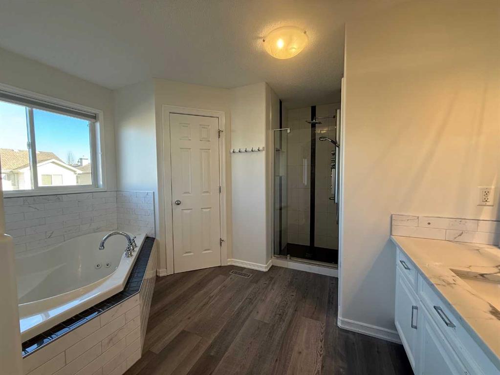 Welcome to your beautifully updated, move-in-ready family home in The Hamptons, West Edmonton! Freshly painted and thoughtfully designed for comfort and convenience, this home offers bright, open-concept living with a spacious kitchen, walkthrough pantry, and cozy fireplace in the great room—all kept comfortable year-round with central A/C. Upstairs features a versatile bonus room, upper-floor laundry, and three generous bedrooms, including a serene primary suite. With four full bathrooms and a fully finished basement offering an additional bedroom and living space, there’s room for everyone. Enjoy outdoor living on the large entertaining deck overlooking the landscaped backyard, plus the convenience of an attached garage with mudroom access. Set in a quiet, family-friendly community with parks, trails, and quick access to Anthony Henday, West Edmonton Mall, and nearby schools—this is the perfect blend of comfort, location, and lifestyle. Ready to move in and start living!