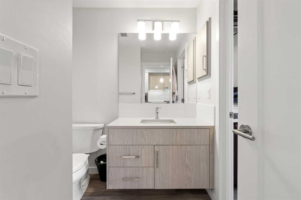 Step into a space that instantly feels like home in the vibrant community of Sage Hill Quarter. This beautifully maintained second floor condo offers a perfect balance of style, comfort and everyday functionality, all in one of northwest Calgary’s most convenient locations. From the moment you walk in, you are welcomed by a bright, open layout with durable vinyl plank flooring flowing seamlessly throughout, creating a clean and modern feel. The kitchen is a standout feature with its eye catching two toned cabinetry, stainless steel appliances, ample storage and a central island that is perfect for casual dining or entertaining, all finished with sleek quartz countertops that carry through to the bathroom as well. The living room is filled with natural light and opens onto your private balcony complete with a gas line, ideal for summer BBQs and relaxing evenings. The primary bedroom is spacious and thoughtfully designed, featuring a large walk through closet that leads directly to a well appointed four piece bathroom. Adding even more versatility to the layout is a separate flex room that works perfectly as a home office, guest space or hobby room. A dedicated laundry room adds extra convenience along with additional in suite storage. This home is truly move in ready and offers the ease of low maintenance living with the added benefits of a titled underground parking stall and a titled storage locker. Located in the heart of Sage Hill Quarter, you are just steps from everyday essentials including groceries, pharmacy, restaurants, fitness studios and more, making it easy to enjoy a walkable lifestyle. Surrounded by pathways, parks and green space, and with quick access to Stoney Trail, Shaganappi Trail and nearby shopping destinations like Beacon Hill, this is a location that truly connects you to everything you need.