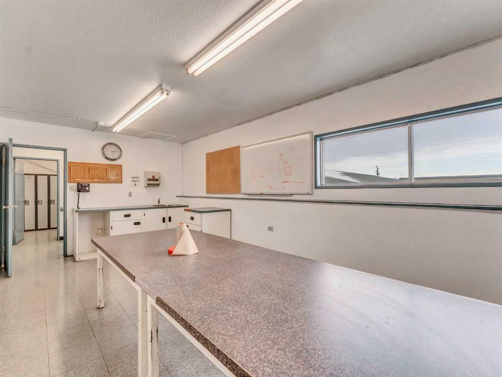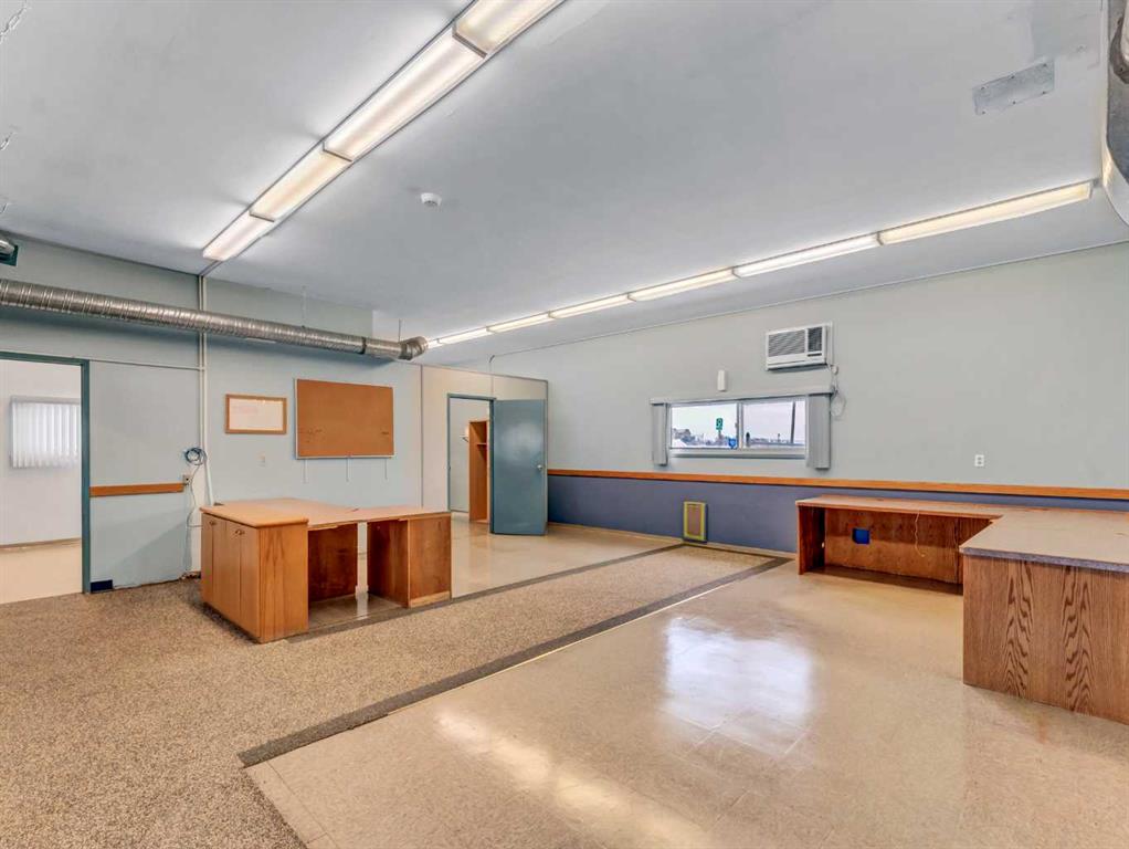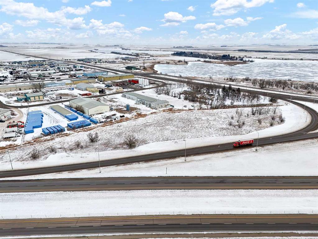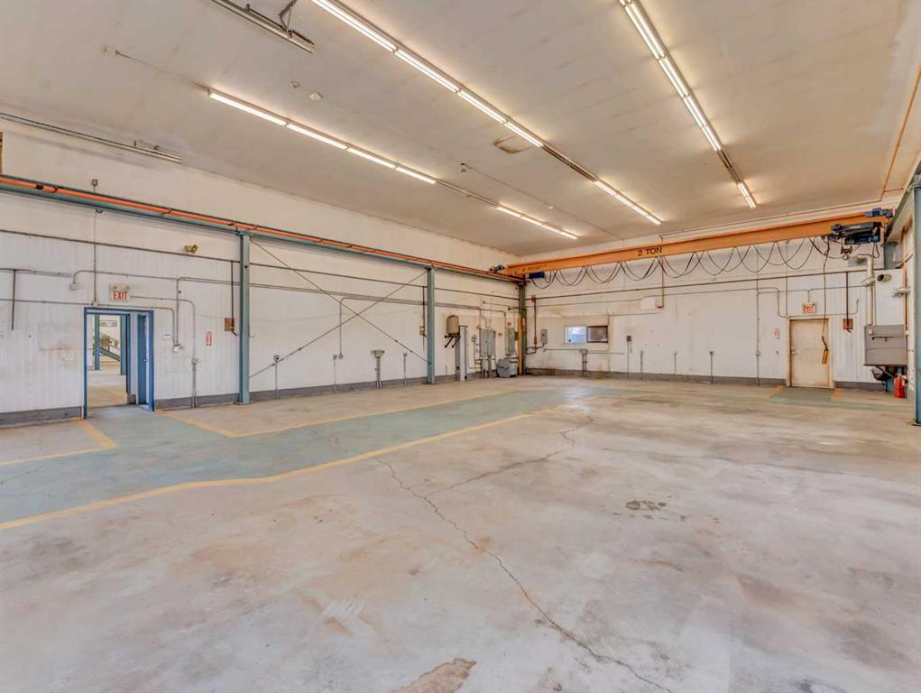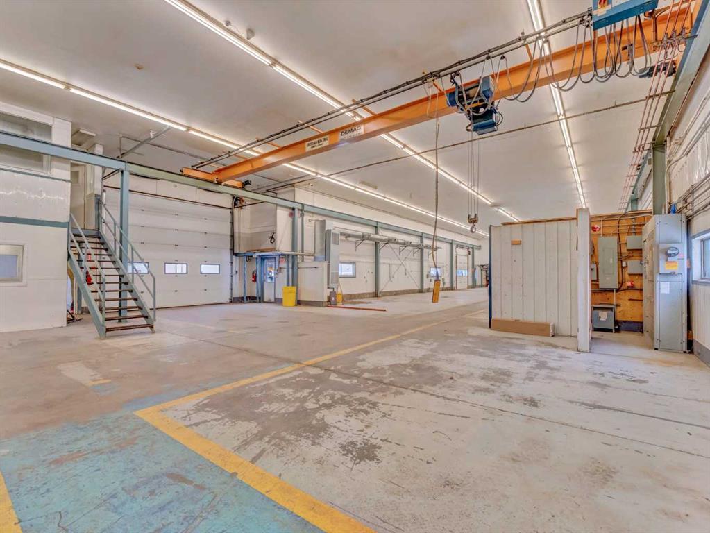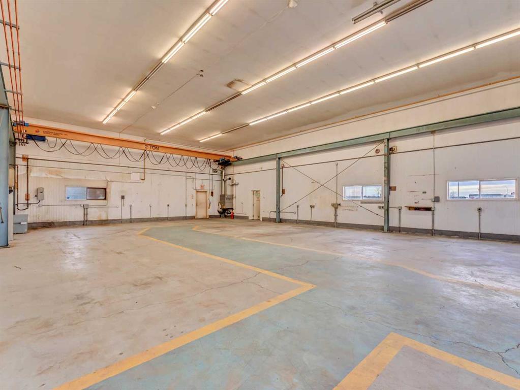 Strategically located just north of Brooks, this highly visible industrial property offers excellent access to the Trans-Canada Highway, directly by the Duchess HWY (873). Situated on 0.94 acres, the site features a well-designed 12,000+ sq. ft. shop complemented by a functional office and staff area. The shop includes 6 bays equipped with three 2-tonne overhead cranes, ideal for heavy-duty or service-based operations. The office component offers a reception area, two private offices, and a lunch room, while staff amenities include a locker room and two bathrooms. With ample yard space, efficient layout, and prime highway exposure, this property is exceptionally suited for industrial, mechanical, or fabrication businesses seeking both functionality and visibility.