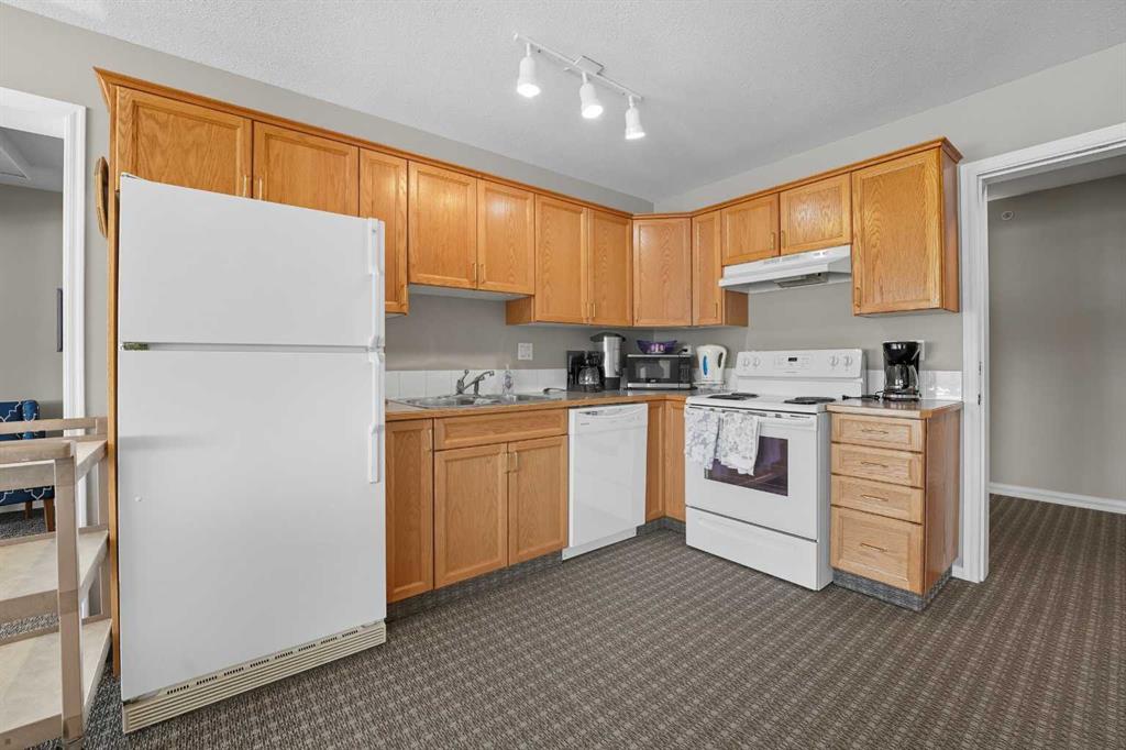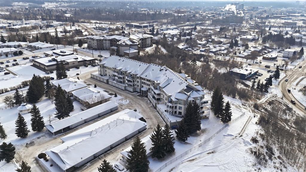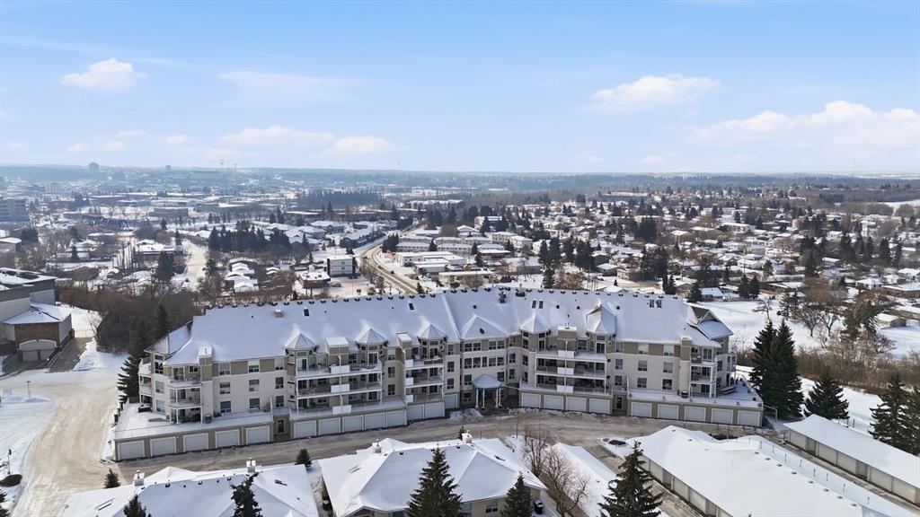 Welcome to easy, comfortable living at Montfort Heights, a well-managed 55+ community in a central and convenient location. This thoughtfully cared-for second-floor condo offers two bedrooms and two bathrooms in a bright, open layout designed for everyday comfort. The living space features a cozy fireplace and flows seamlessly into the spacious kitchen, while in-suite laundry adds everyday practicality. The primary bedroom includes a walk-in closet and a private 3-piece ensuite. A second bedroom with its own walk-in closet and large window works perfectly as a guest room, hobby space, or home office. Step outside to an exceptionally large private balcony—over 400 sq ft—ideal for morning coffee, container gardening, or hosting family and friends. A separately titled detached garage provides secure parking and valuable extra storage. Residents of Montfort Heights enjoy access to a fitness room, party room, and a rentable guest suite for visitors. Located close to shopping, walking trails, restaurants, and public transit, this is a wonderful opportunity to enjoy low-maintenance condo living without sacrificing space or convenience.