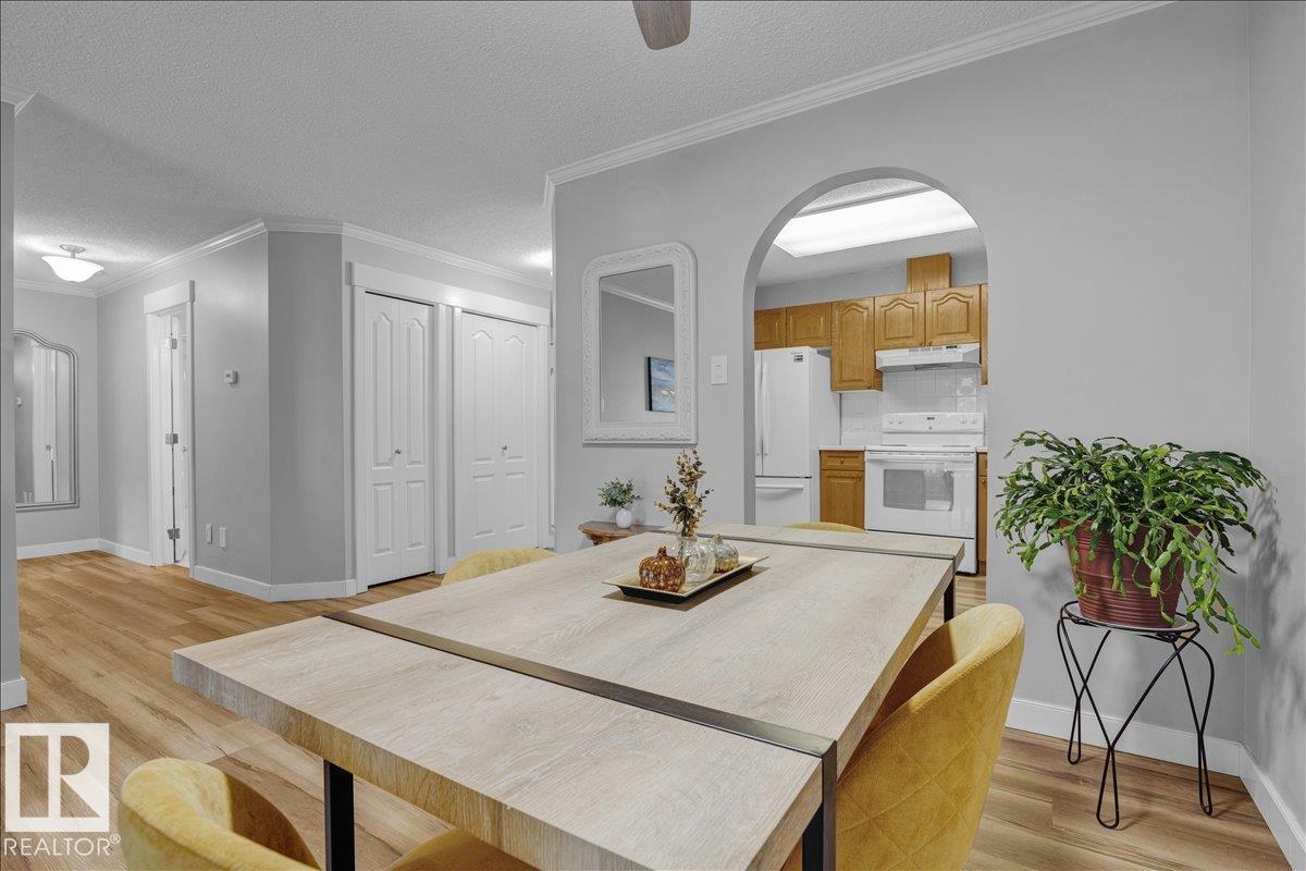 Welcome to this bright and meticulously-maintained 2 bedroom, 2 bathroom Adult-living condo in the friendly community of Summerlea. The open concept living area showcases contemporary laminate flooring throughout with large windows allowing in an abundance of natural light. The living room offers a charming corner gas fireplace and patio doors leading to your private south facing balcony area. The kitchen features timeless oak cabinetry and plenty of cabinet and counter space while the dining area is ideal for family meals or entertaining Additional features include a spacious in suite laundry with an abundance of cabinetry perfect for storage. In addition this suite offers a convenient central vacuum system. Enjoy the ease of being close to shopping, dining, public transportation, and the hospital. This home also includes one heated underground parking stall with a storage locker for added convenience.
