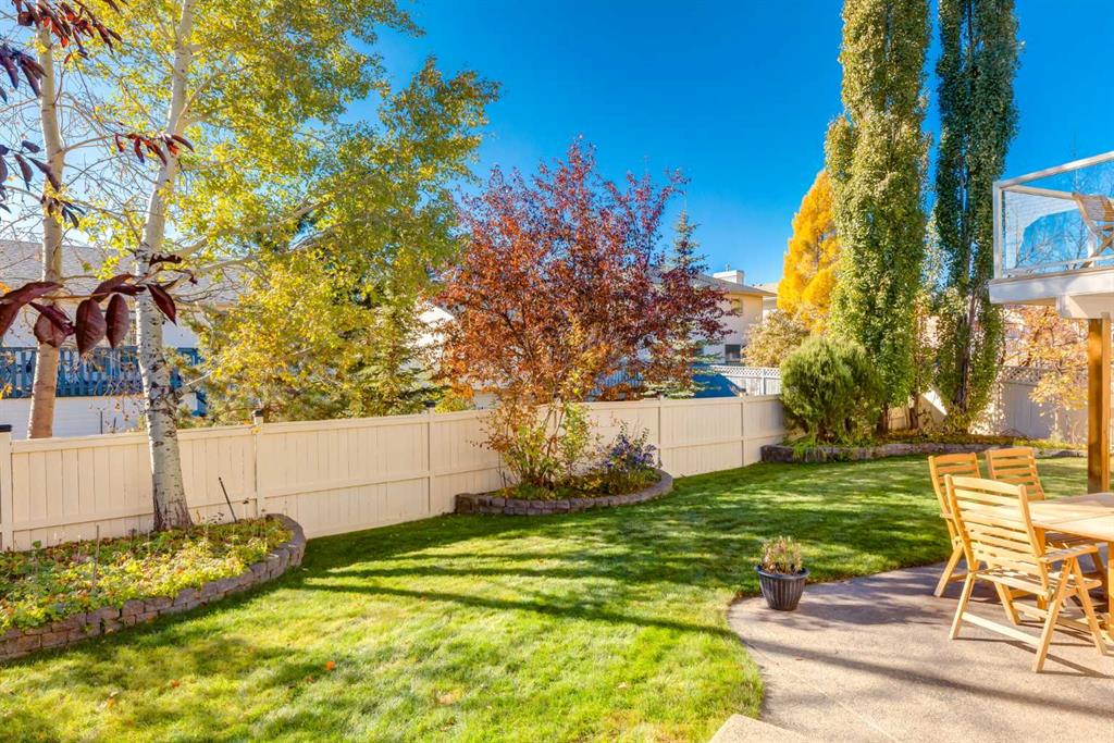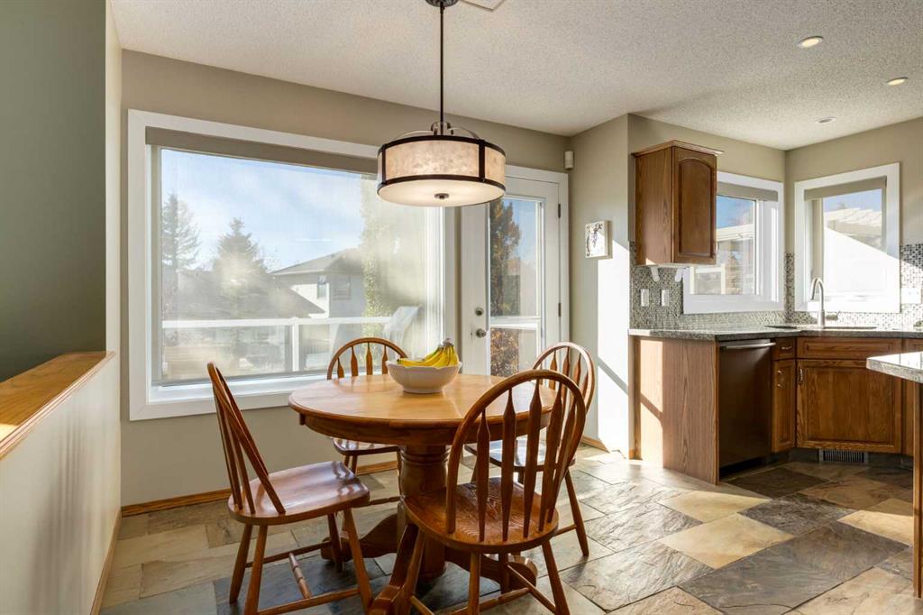 Welcome to this exceptional two storey home, offering over 2,500 square feet of beautifully developed living space in the highly sought after community of Citadel Park Estates; perfectly situated on a gorgeous, meticulously landscaped pie shaped lot! From the moment you step inside, you’re welcomed by natural slate flooring that flows seamlessly from the hallway into the kitchen, adding both warmth and sophistication to the space. The formal dining area is highlighted by stunning vaulted ceilings and elegant architectural details. Adjacent to the dining area, the family room offers a cozy gas fireplace with a mantle. The kitchen itself is a chef’s delight, featuring granite countertops, stainless steel appliances, an abundance of cabinetry, a corner pantry and a spacious island for extra prep space. Just off the kitchen, a patio door opens to a spacious deck featuring a gas line for BBQ, durable DuraDeck flooring and sleek aluminum and glass railings, creating an ideal space for outdoor dining and entertaining. Additional main floor features include a two piece bathroom, a private den/home office and a convenient laundry room. Upstairs, you’ll find a well appointed four piece bathroom and three spacious bedrooms; including a primary suite that boasts a walk in closet and a 4 piece ensuite complete with a jetted tub and separate shower. The primary bedroom also offers breathtaking mountain views, creating a peaceful and private retreat. The fully finished walk out basement features large windows that flood the space with natural light, a spacious recreational area, a fourth bedroom and a three piece bathroom; ideal for guests, teens, or extended family. Additionally, there is undeveloped space with excellent potential to be transformed into a future office, den, or non-egress bedroom, offering flexible options to suit the buyer’s lifestyle needs. Notable updates include vinyl windows (2011), shingles (2014), a new garage door (2015), lower level plush carpet (2017) and a high-efficiency furnace (2018). The backyard is a serene and peaceful retreat, beautifully landscaped with lush perennials, mature trees, shrubs, an aggregate patio and retaining gardens, creating the perfect outdoor oasis. Ideally located just steps from parks, schools, and playgrounds, and only minutes from shopping, public transit, and major roadways, this home offers both convenience and a true sense of community. With its thoughtful updates, functional layout and exceptional location; this is the perfect place to call home!