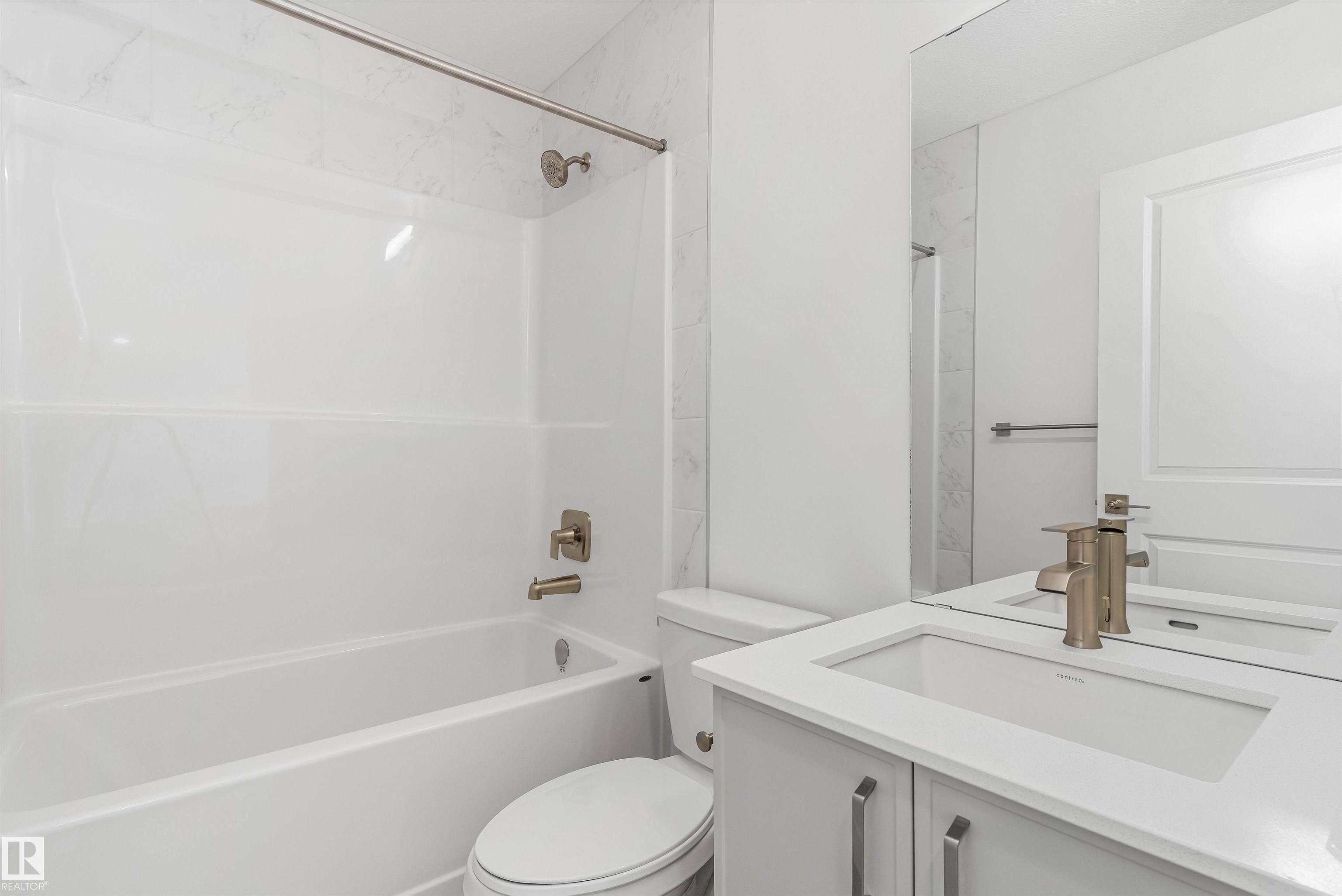 Built by Sterling Homes, this 1,477 sq ft laned home in Edgemont Place blends stylish design with smart functionality. The main floor offers 9 ft ceilings, luxury vinyl plank flooring, and a bright open layout ideal for everyday living. Triple pane front windows fill the great room with natural light and flow into the dining area and rear kitchen. The kitchen features quartz countertops, an island with seating, a window over the sink, pantry storage, and modern cabinetry, perfect for cooking and entertaining. A rear entry with a half bath leads to the backyard and future garage space. Upstairs, the spacious primary bedroom includes a walk in closet and private ensuite, plus two additional bedrooms, a full bath, a cozy loft, and convenient upper floor laundry. A separate side entrance and basement rough ins offer future development potential.