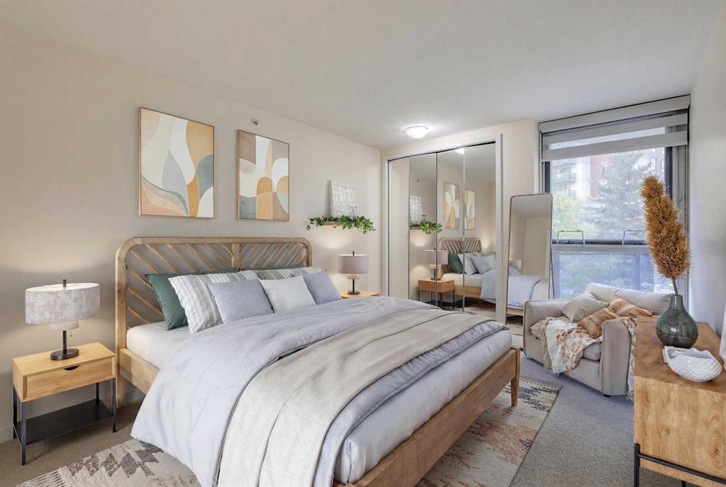 Welcome to The Marquis – Unit 209, 1108 6th Ave SW. We love this part of the city for its walkability. In the heart of Calgary’s West End, you’re steps from the river paths and only a five-minute walk to Kensington. Work downtown? You can walk anywhere from here, and the LRT Station is a block away to get you out of downtown without having to drive! This is a highly secure, well-managed building equipped with a range of amenities, including a fitness centre, meeting rooms, and guest suites—you name it. The unit is a two-bedroom, two-bathroom unit with in-suite storage and an extra locker. You’ve got two titled parking stalls (Tandem) and a wide-open floor plan that leads to a south-facing balcony, including a gas line for a BBQ. There’s a breakfast bar, newer appliances, in-suite laundry, and an ensuite bath. Incidentally, both baths have heated floors as well (once you’ve had them, you can’t go back)! It’s a dynamite little unit in an unbeatable location. For more details, virtually staged photos, and to see our 360 Virtual Tour, click the links below.