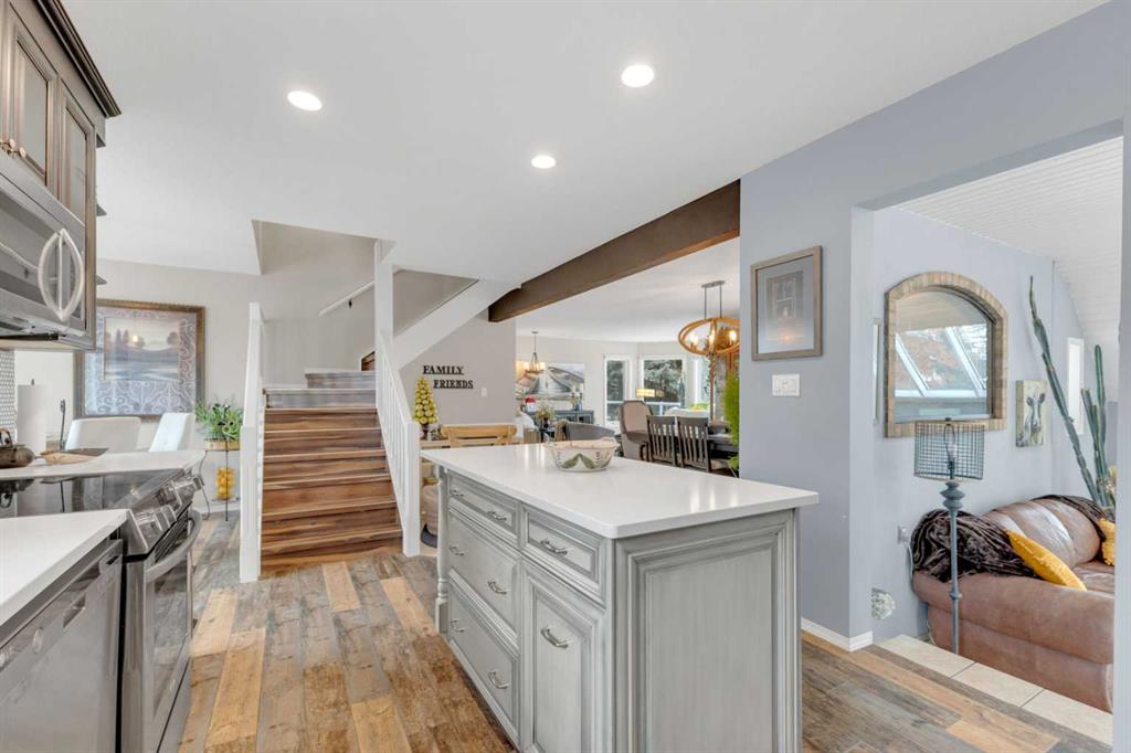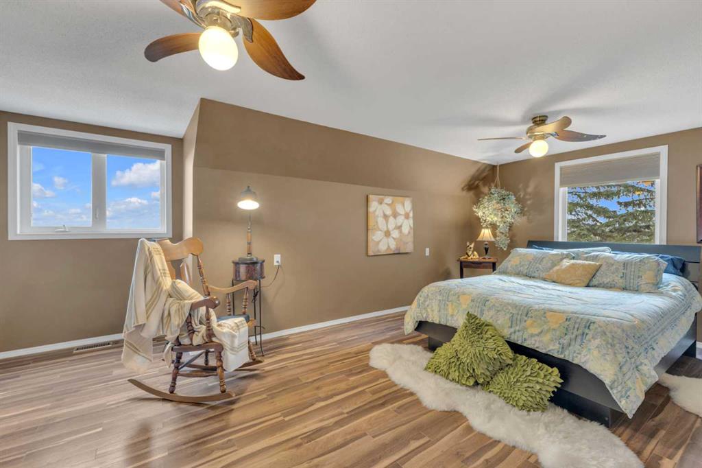 LISTED OVER 150K UNDER APPRAISED VALUE! MINT condition and minutes from Red Deer! This exceptional partial WALKOUT home blends craftsmanship, comfort, and privacy surrounded by mature trees and stunning views. Thoughtfully renovated and 2x6 constructed, it features a durable METAL ROOF, in-floor heat plus forced air, skylights, glass block accents, and large windows that fill the home with natural light. The open-concept kitchen with built-in appliances flows to multiple decks—perfect for relaxing or entertaining while taking in the serene TREED setting. With four bedrooms total, one being a flexible lower-level office/bedroom, every detail shines with pride of ownership. The detached structure matches the home’s quality with in-floor heating and can serve as a professional office or easily converted GUEST SUITE. Beautifully landscaped with a firepit, large carport, double garage, and upper deck—plus just minutes to the ski hill and city amenities. Truly one of a kind.