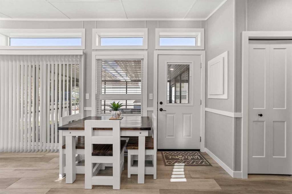 Welcome to 21 Coyote Creek – a rare opportunity to own a 2024 luxury Park Model backing directly onto the 9th tee box in a four-season golf resort community. This fully furnished, turnkey 544 sq ft retreat sits on a private 0.08-acre lot & offers thoughtfully designed indoor-outdoor living with unmatched quality & efficiency. Step inside to discover soaring high ceilings, durable vinyl plank flooring, & an expansive open-concept living space flooded with natural light. The chef-inspired kitchen features black stainless steel appliances, ample cabinetry, a modern sink with black fixtures, & spacious dining options. Relax in the cozy living room by the gas fireplace with built-in TV & surround sound above, framed by rich wood tones & custom millwork. The spacious bedroom is a restful retreat with built-in cabinetry & warm accents. The spa-inspired bath includes a full-size shower, upgraded vanity, backlit mirror, & linen storage. Enjoy the seasons from your massive 11x15 enclosed composite deck or your 11x12 covered composite deck, ideal for entertaining or peaceful morning coffee. A concrete patio with wood-burning outdoor fireplace extends the living space with serene golf course views & towering evergreens. Built for year-round comfort & energy efficiency, this home boasts 2x6 construction, R30 heated floors, R40 insulated metal roof, a six-sided vapour-sealed barrier, & impressive performance of just over 1 ACH (air change/hour). The home is skirted with Trulock, fully insulated underneath, & situated on a full concrete pad. Additional features include: Washer & dryer hookups. Custom high-end blinds. Wrap-around Gemstone Lighting (app-controlled color changes). 10x12 wired shed/golf cart garage. Exterior combo of Hardiplank & vinyl siding. Central Air Conditioning. Starlink & Shaw satellite systems included. This is luxury park model living at its finest — low maintenance, energy efficient, & directly on the golf course. Located just minutes from Sundre, where you'll find shopping, schools, an aquaplex, gym, arenas, public library, & the arts centre. Whether you're a passionate golfer, nature lover, looking for a weekend escape, or a full-time four-season residence, 21 Coyote Creek delivers it all. “Home Is Where Your Story Begins!”