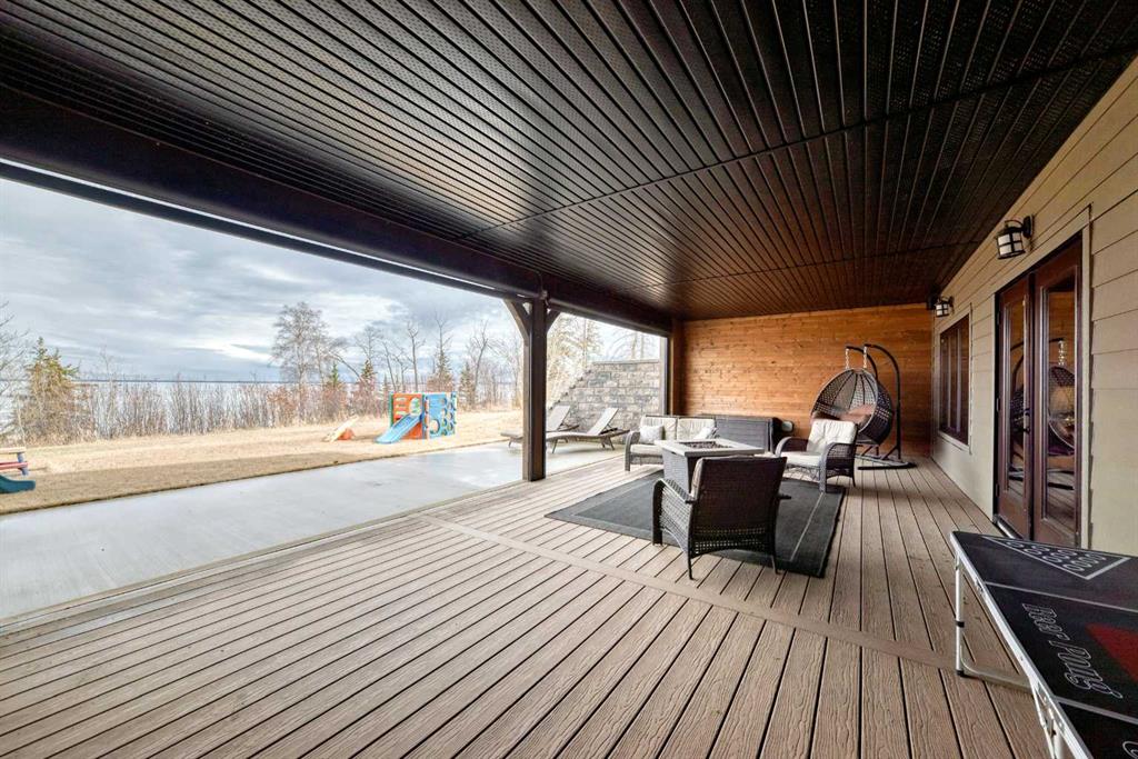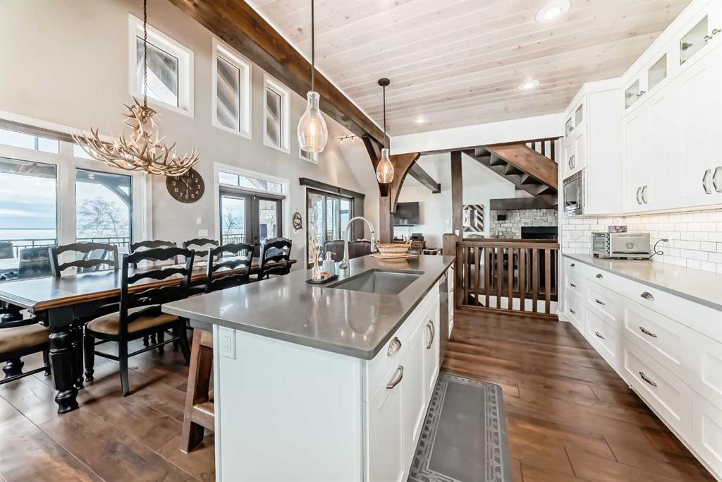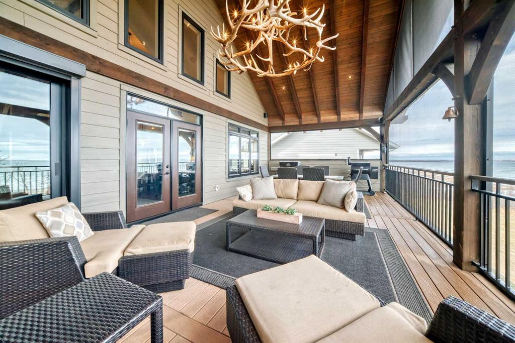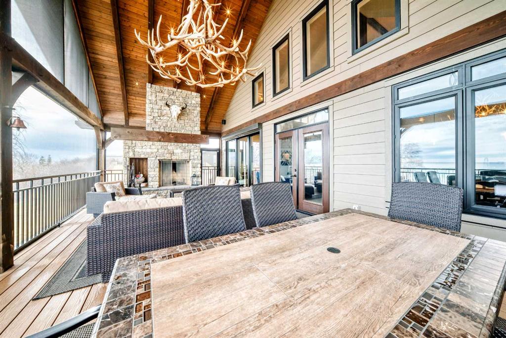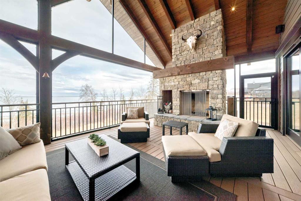 Welcome to lakefront living at its finest in Rochon Sands Heights on beautiful Buffalo Lake. This stunning 3,188 sq ft timber-frame bungalow (RMS + finished area), built in 2017, offers the perfect blend of luxury, comfort, and year-round living & recreation. Featuring 4 bedrooms and 3.5 bathrooms, this thoughtfully designed home includes two primary suites—one conveniently located on the main floor and another in the loft—ideal for hosting family and guests. The main floor welcomes you with a spacious entry and breathtaking lake views. The kitchen is equipped with quartz countertops, an oversized sink with garburator, and modern finishes throughout. Inside, the open-beam living area, vaulted ceilings and a gas fireplace create warmth and ambiance in every season. The screened-in upper deck extends your living space outdoors, showcasing a floor-to-ceiling stone, wood-burning fireplace, plenty of space for cooking & entertaining, complete with a lockable roll-up gate on the upper deck window for added security and convenience. The fully developed walk-out basement adds two additional bedrooms, a family room, wet bar, generous storage, in-floor heating, and direct access to the lower patio. The lower deck features electric screens, allowing you to enjoy the outdoors in comfort. The basement patio area is also wired for a hot tub. This home is loaded with high-end features, including surround sound across all levels and outdoor spaces, air conditioning with humidity control, triple-glazed Low-E windows, an ICF foundation, attached garage (27'5" x 22'11") and a natural gas backup generator for peace of mind. Additional highlights include a spacious attached double garage, large driveway, municipal water and services, and paved road access right to your doorstep. The property also includes a marina dock capable of accommodating two boats, making it easy to enjoy everything the lake has to offer. All furnishings are negotiable. Located in a quiet, welcoming community known for its year-round events and activities, this is more than just a home—it’s a lifestyle. Beautiful lake views for days—come experience the best of Buffalo Lake living.