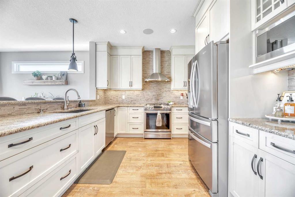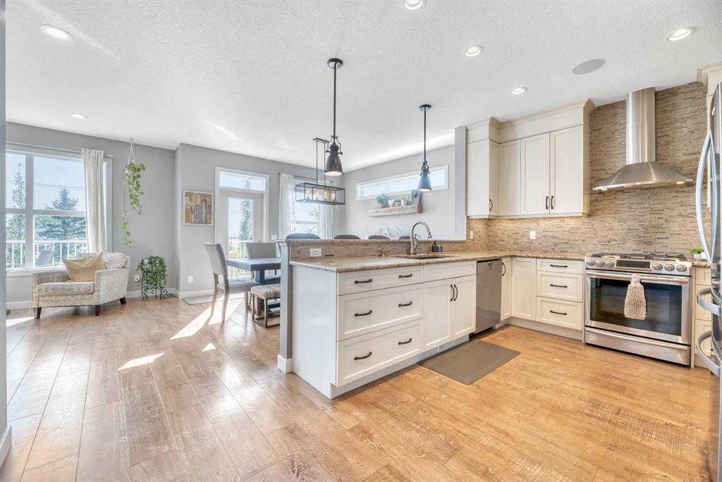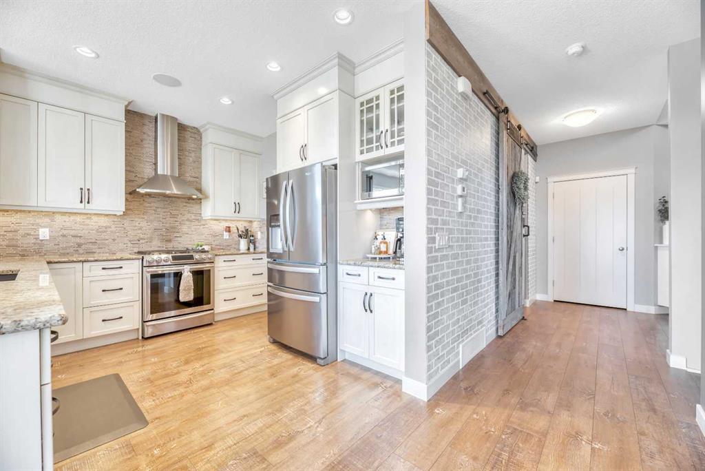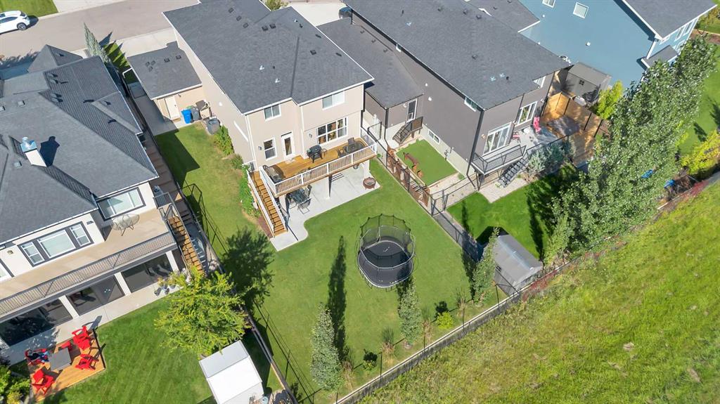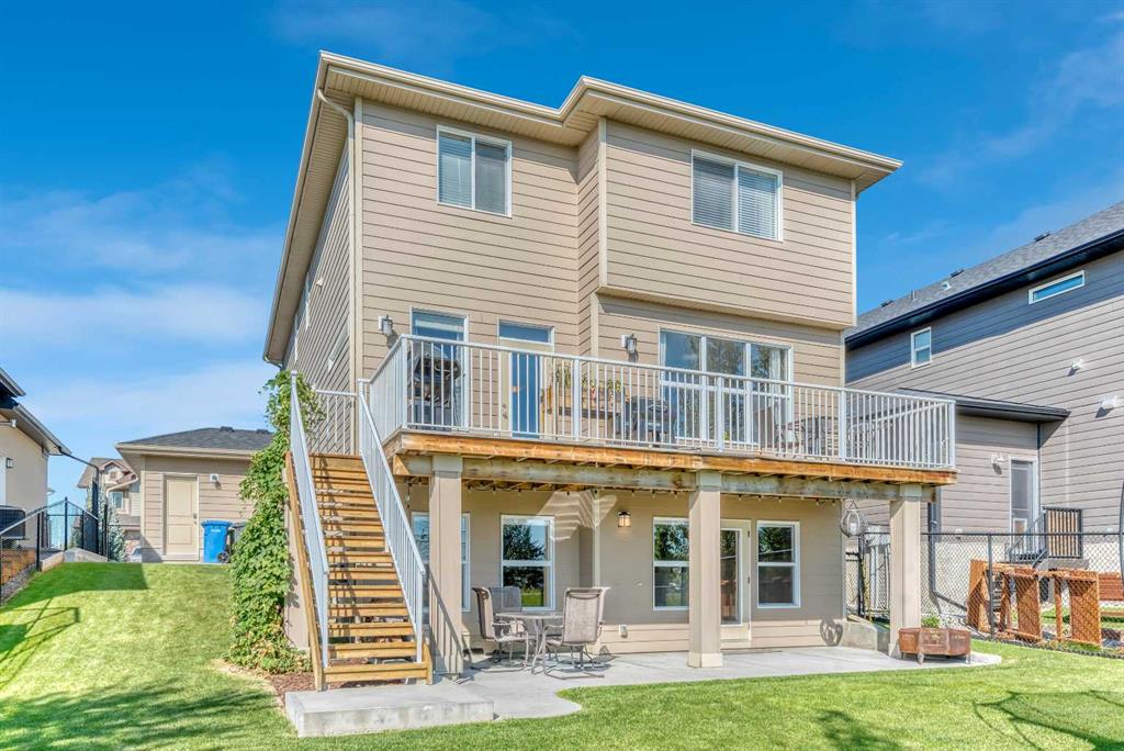 Welcome to 21 Ranchers Crescent, where thoughtful design and luxury come together in the prestigious community of Air Ranch—Okotoks’ signature estate neighborhood celebrated for its wide-open skies, peaceful walking paths, and friendly, family-oriented atmosphere. Set on a generous, beautifully landscaped lot, this impressive two-story walkout offers a perfect blend of elegance and practicality. Curb appeal is elevated with underground irrigation, a fully fenced backyard, and a triple attached heated garage with EV power and built-in sound—ideal for family life and weekend projects alike. Step inside to discover bright, sun-filled living spaces anchored by durable luxury vinyl plank flooring throughout the main level. At the heart of the home, the kitchen is equal parts style and function, showcasing ceiling-height cabinetry, granite countertops, stainless steel appliances (including a gas range), and a walkthrough pantry that connects effortlessly to the mudroom and garage. The open-concept layout flows seamlessly into the dining and living areas—perfect for gatherings or relaxed evenings at home. From here, step out onto the elevated deck—complete with a BBQ gas line and stairs leading down to the backyard—an ideal extension of your living space for summer barbecues or quiet mornings with coffee. Upstairs, find a spacious family room and three comfortable bedrooms, including a serene primary retreat featuring a spa-inspired five-piece ensuite and walk-in closet. A second full bathroom and a convenient laundry room with a gas dryer (for lower utility costs) complete the upper level. The partially developed walkout basement offers room to expand and personalize, with thoughtful features already in place—like a large concrete patio wired for a hot tub, conduit for a future gas line, and exterior power for a shed. Comfort is maximized throughout the home with dual-zone climate control, central air conditioning, and built-in speakers. Life in Air Ranch means you can enjoy estate-style living with small-town warmth. Parks, playgrounds, and scenic walking paths are steps away, while Okotoks’ vibrant shopping, dining, and recreation amenities are just minutes from your door. Families will appreciate the proximity to schools, and commuters will love the easy access to Calgary. If you’re looking for a home that perfectly balances comfort, quality, and connection, this Air Ranch gem is ready to welcome you home.