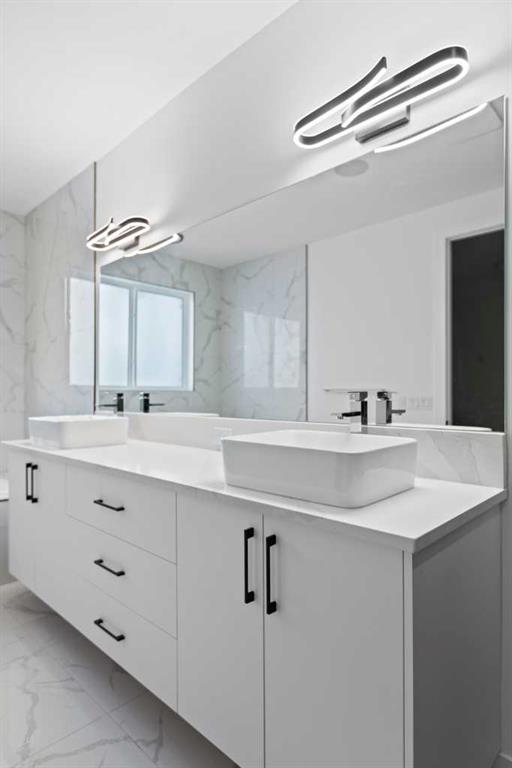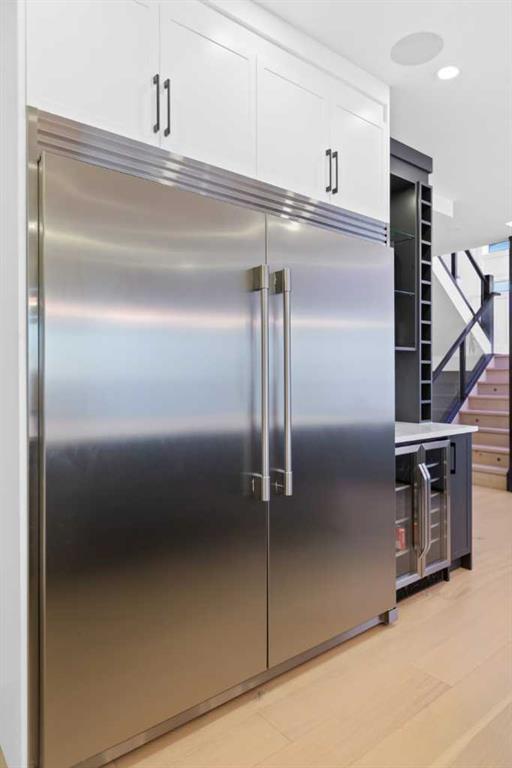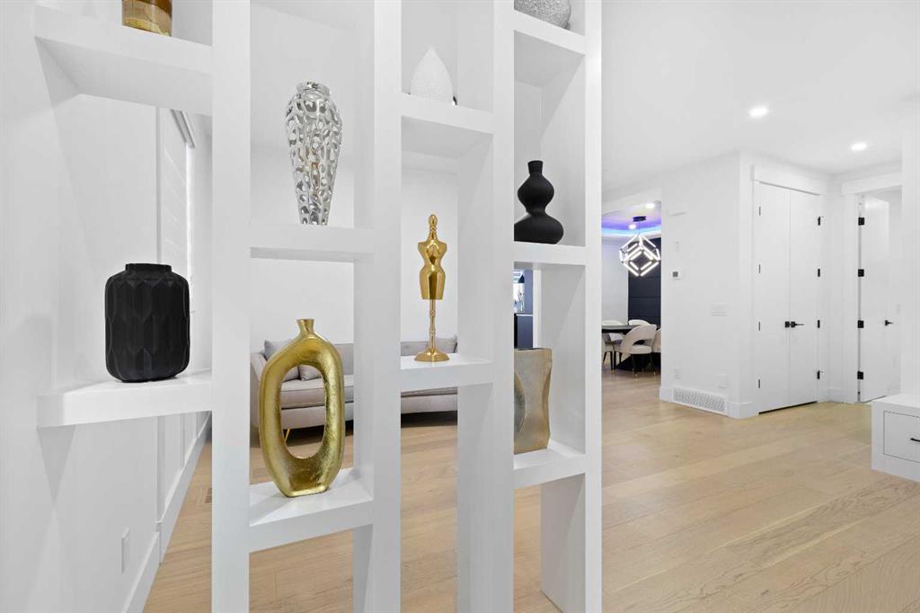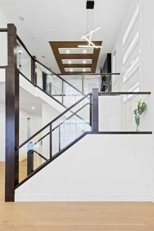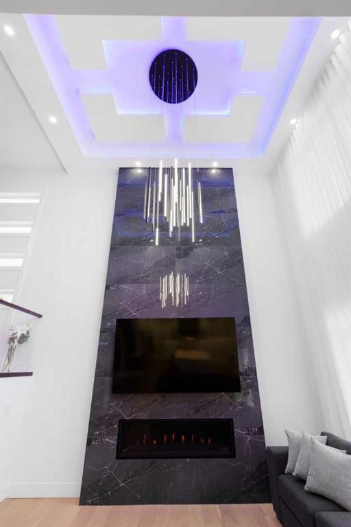This home is currently under construction. Photos are for representation purposes only and are not of the actual property. Finishes, features, and specifications may vary. Welcome to a truly exceptional Modern Beach House–inspired luxury residence, perfectly situated on a large pie-shaped lot and backing refined design with resort-style living. Featuring a triple car garage, expansive outdoor spaces, and a fully developed basement, this home is thoughtfully crafted for elevated family living and entertaining. The main level makes an immediate impression with its open-to-above family room, soaring ceilings, and abundant natural light. Designed with 9-foot ceilings and 8-foot doors, this floor includes a main-floor bedroom and full bathroom, ideal for guests or multigenerational living. The chef’s kitchen is a showpiece, equipped with custom cabinetry, quartz countertops, built-in wall oven and microwave, gas cooktop, oversized fridge/freezer, and dishwasher. A spice kitchen with pantry enhances functionality, while a custom island with a flush eating bar and architectural ceiling detail anchors the space. A separate dining area features a designer accent wall and custom ceiling treatment, while the living area is warmed by a built-in gas fireplace. Practical touches include custom mudroom cabinetry with bench seating and MDF shelving throughout all main-floor closets. Step outside to an expansive deck, perfect for outdoor entertaining. The upper level is designed for comfort and connection, offering four bedrooms, three full bathrooms, a dedicated laundry room, and a spacious bonus room overlooking the open-to-below living area. The bonus room features tray ceilings and custom media built-ins, creating an ideal family lounge. Secondary bedrooms are connected by a Jack & Jill bathroom, while the primary retreat is a true sanctuary—complete with tray ceiling, private balcony with glass railing, and oversized patio doors. The spa-inspired ensuite includes a double vanity, freestanding soaker tub, steam shower with full tile surround and glass doors, heated floors, and a striking two-sided fireplace, paired with a custom walk-in closet featuring MDF shelving. The fully developed basement expands the home’s versatility with two large bedrooms, a full bathroom, a theatre room, a home gym, wet bar, and generous storage, all complemented by approximately 9-foot ceilings—perfect for entertaining, guests, or extended family living. The exterior showcases a sophisticated blend of Hardie Board board-and-batten detailing, stone masonry, upgraded front entry, and LED lighting, enhancing curb appeal from every angle. Multiple outdoor living spaces—including a covered deck and balcony with glass railings—complete this resort-inspired design. Bold. Refined. Unforgettable. This home delivers architectural presence, luxury finishes, and thoughtful design—setting a new standard for modern living.