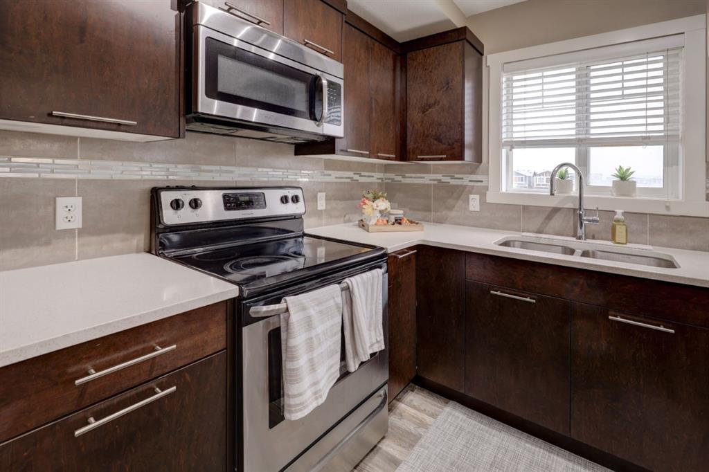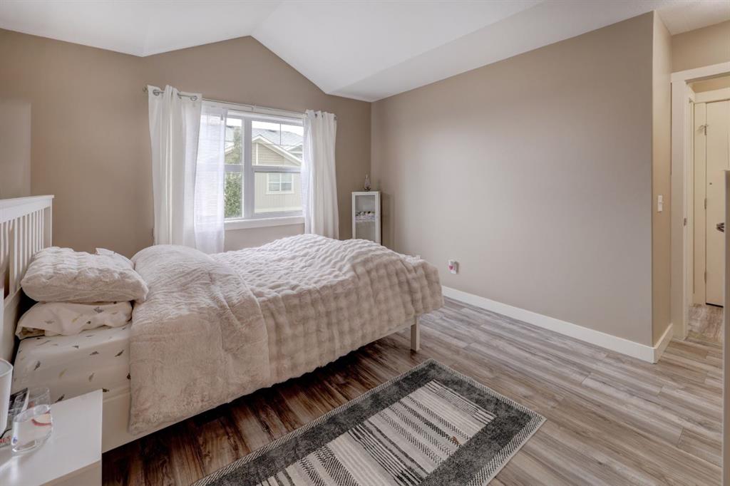 HOME SWEET HOME! OPEN HOUSE SATURDAY OCTOBER 18th & SUNDAY OCTOBER 19th, 1-3 PM! Welcome to your stunning Townhouse in the family-friendly community of Skyview Ranch! Step inside this beautifully updated END UNIT 4 BEDROOM TOWNHOUSE offering over 1,604 SQFT of comfortable, modern living space. The main floor features a versatile bedroom, perfect for guests, a home office, or a gym. Head upstairs to the bright and airy open concept living area, where large windows fill the space with natural light. The gourmet chef's kitchen is well designed with plenty of counter and cupboard space, quartz countertops, a quartz island with a breakfast bar and stainless steel appliances , opening to a spacious dining area that flows seamlessly onto your private balcony, the perfect spot to enjoy your morning coffee. This level also includes a convenient 2-piece powder room and convenient in-suite laundry. On the top floor, you’ll find a spacious primary bedroom complete with a 4-piece ensuite and walk-in closet, plus two additional bedrooms and another 4-piece bathroom, providing plenty of room for the whole family. RECENT UPDATES include new vinyl plank flooring throughout and fresh paint, giving the entire home a fresh, modern feel. Additional highlights include an attached single car garage with a driveway for extra parking, and visitor parking conveniently located right beside the unit. Situated in a quiet part of the complex, you’ll also enjoy extra green space which is IDEAL FOR PET OWNERS and added privacy with your side entrance. This well maintained home is close to schools, parks, shopping, restaurants, and major roadways, making it ideal for families or investors alike. Book your private tour of this GEM today!