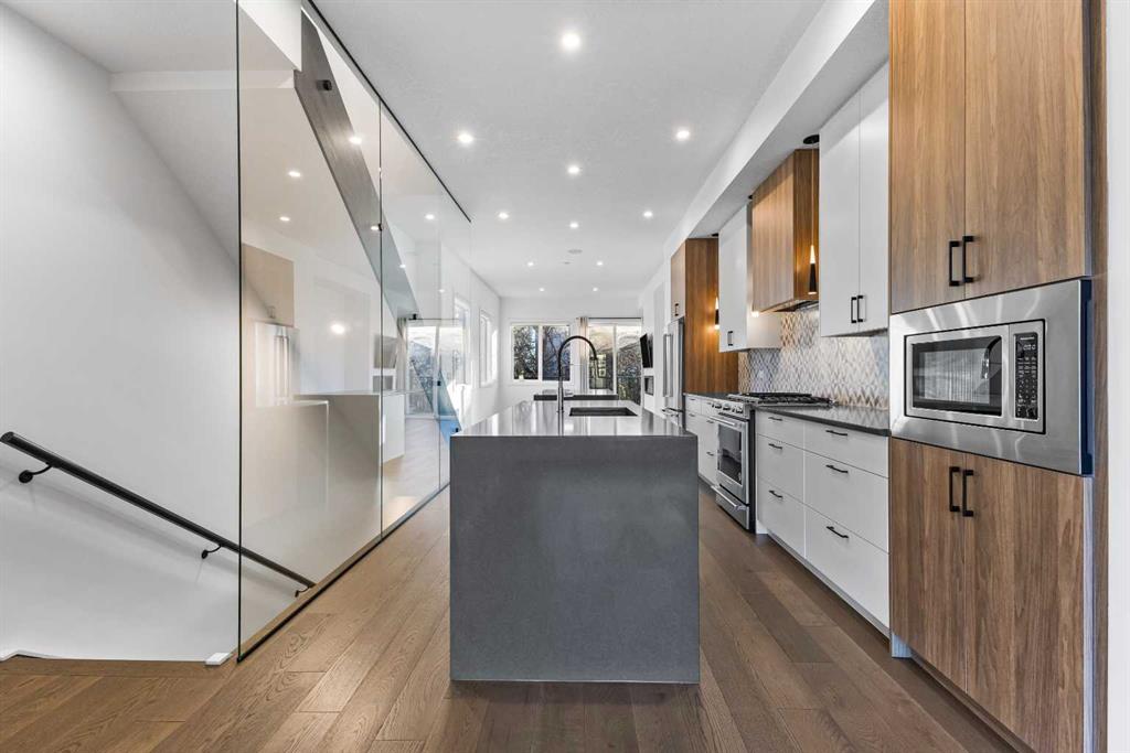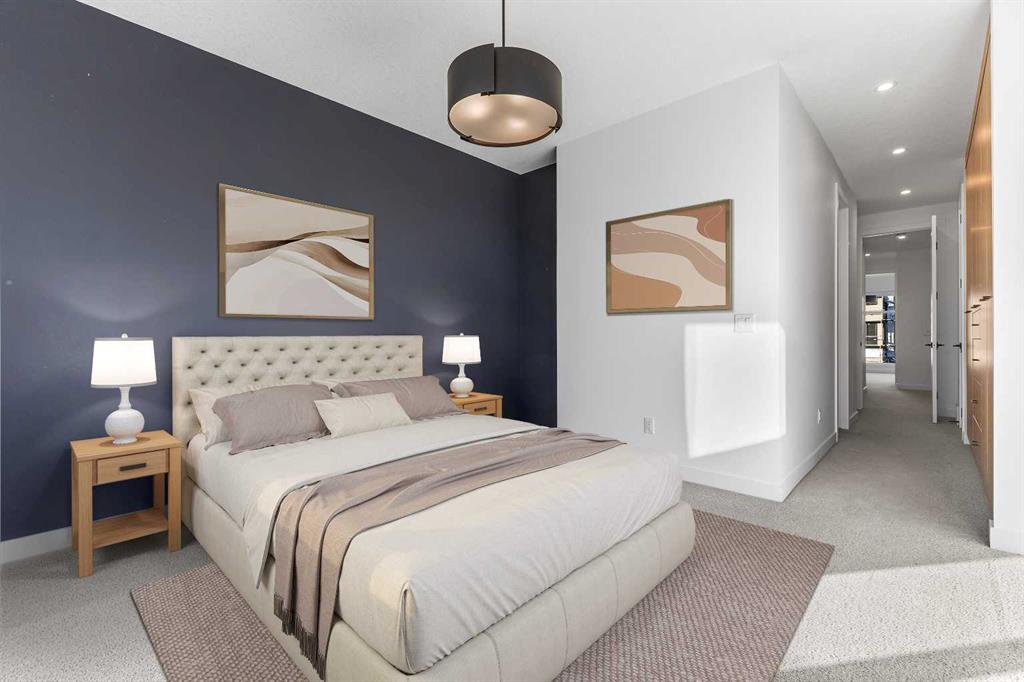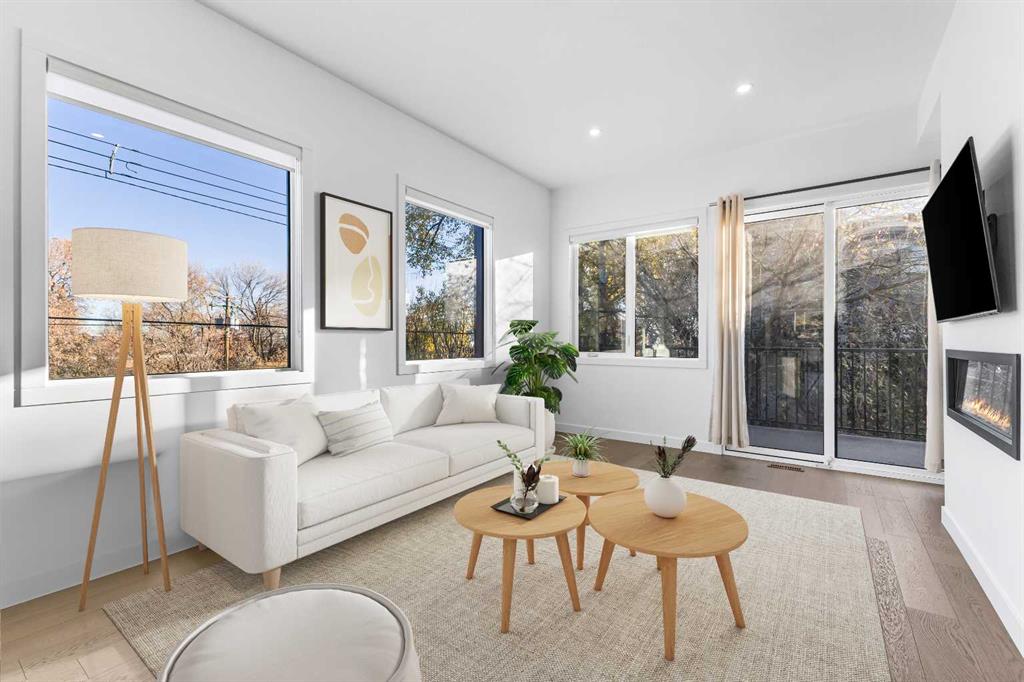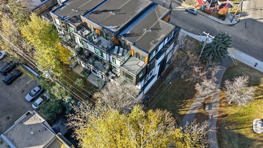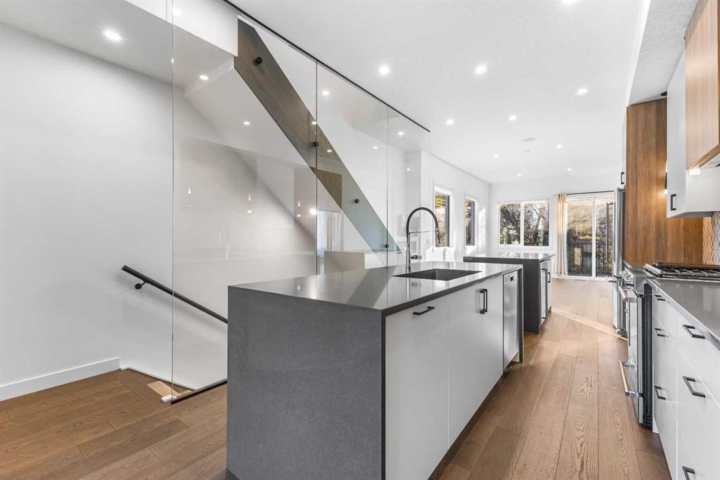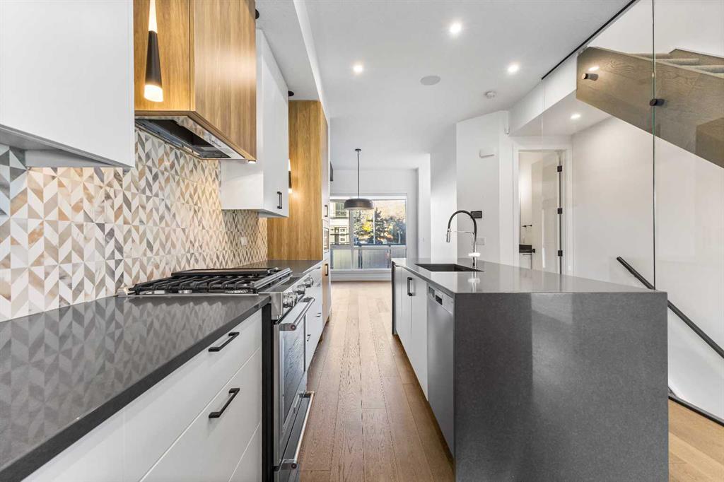 2 BEDROOMS | 2.5 BATHROOMS | 3 STOREY | 2,289 SQFT | HEATED TANDEM GARAGE | ROOFTOP PATIO WITH CITY VIEWS Welcome to 2100 17A Street SW, an upscale end-unit townhouse in the heart of Bankview, just steps from the shops, restaurants, and energy of 17th Avenue SW. Built in 2020, this modern residence showcases luxury finishes, thoughtful design, and a low-maintenance lifestyle across 2,289 sq ft of beautifully crafted living space. The main floor welcomes you with 10’ ceilings, hardwood flooring, and an open-concept layout perfect for both entertaining and everyday living. The showstopping kitchen features dual quartz waterfall islands, premium stainless-steel appliances, custom cabinetry, and a gas cooktop, a dream for any home chef. The adjoining dining area flows effortlessly into the spacious living room with a sleek electric fireplace and access to a private patio. The ideal area for morning coffee or evening gatherings. Upstairs, the primary suite is a serene retreat offering a spa-inspired ensuite, walk-in closet, and custom built-ins for maximum style and function. A second bedroom, full 3-piece bathroom, and a well-appointed laundry room complete this level. The top-floor loft offers flexible living, ideal for a home office, gym, or media lounge and opens onto an expansive rooftop terrace with panoramic city views, perfect for entertaining under the stars. The heated tandem garage provides secure parking for two vehicles and additional storage space, while the walkout lower level leads to a private fenced yard backing onto a park, a rare oasis offering privacy and greenery right in the inner city. Situated minutes from downtown, parks, playgrounds, and Calgary’s most popular dining and shopping districts, this home perfectly blends luxury, convenience, and community. Photos have been virtually staged.