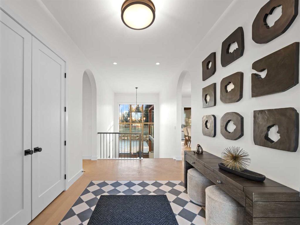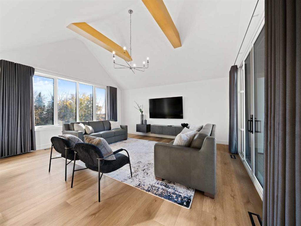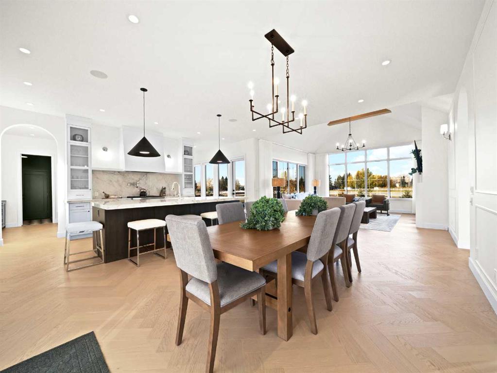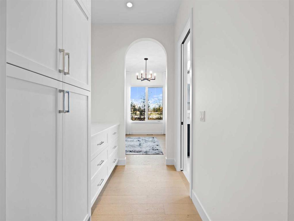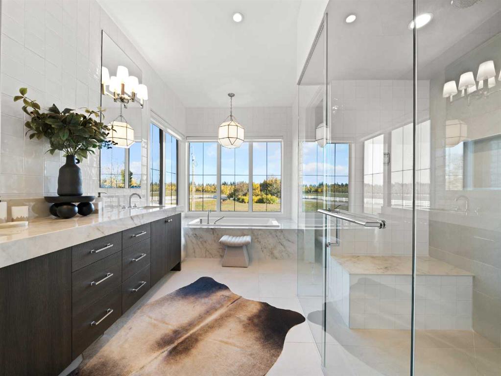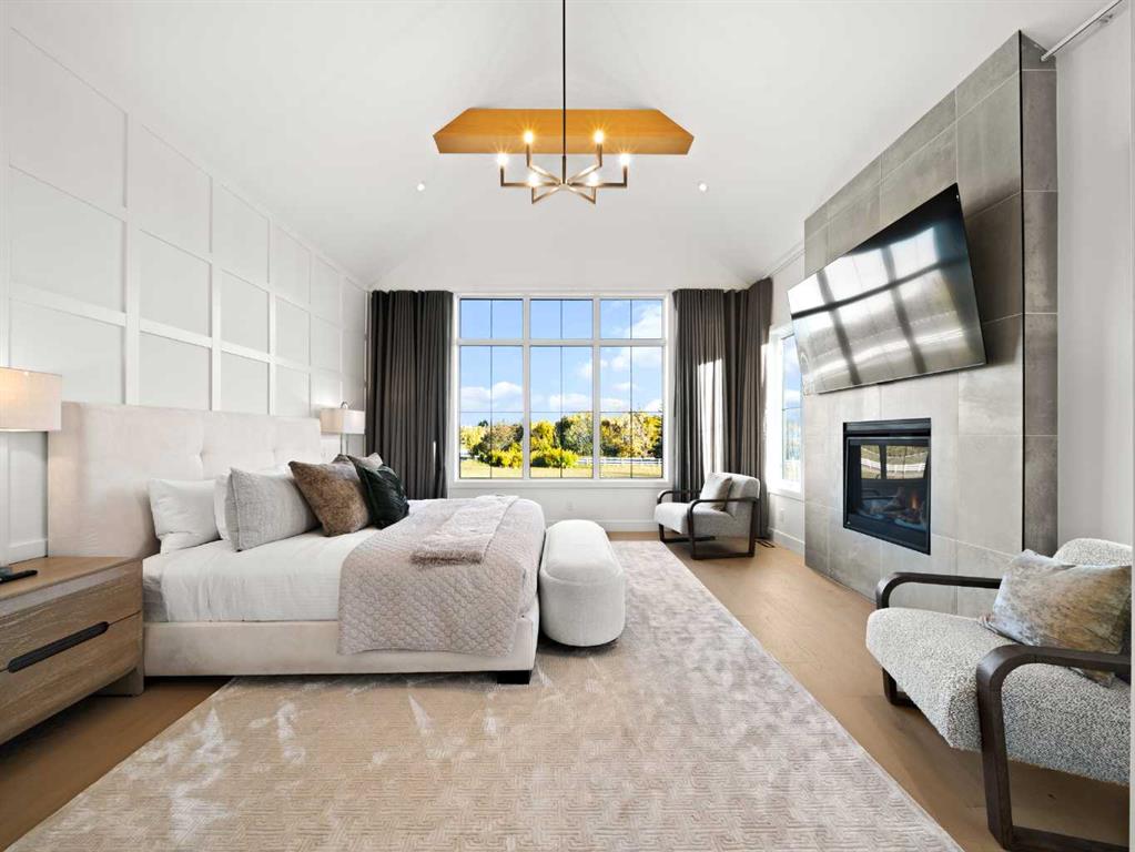 Nestled in the rolling landscapes just outside Southwest Calgary, this stunning custom-built luxury estate offers the perfect balance between serene country living and urban convenience. Located on a 2.4-acre private lot in a quiet cul-de-sac surrounded by other executive homes, this brand-new residence combines timeless craftsmanship, elegant design, and modern functionality, just 3 minutes from Spruce Meadows and 30 minutes from downtown Calgary. With over 5,300 sq. ft. of finished living space, this home was built with meticulous attention to detail. Step inside to discover a bright, open layout filled with natural light, soaring ceilings, and elegant arched doorways that bring classic charm into the modern design. The main living area features large picture windows with mountain views, a beautiful fireplace centrepiece, and seamless flow into the dining area and spacious terrace, perfect for entertaining or relaxing while enjoying the peaceful scenery. The chef-inspired kitchen is a true showpiece, boasting an oversized island, Brazilian porcelain countertops, custom cabinetry, and Italian Fulgor Milano appliances. A fully equipped butler’s pantry adds functionality and extra storage, while the adjoining mudroom connects to a triple attached garage designed for convenience and versatility. The main-floor primary suite feels like a private retreat with vaulted ceilings, a fireplace, and a private covered deck for morning coffee or evening wine. The spa-like ensuite features a freestanding tub with mountain views, a glass-enclosed steam shower, and a massive walk-in closet with custom built-ins. Upstairs, a spectacular bonus room above the garage includes vaulted ceilings, a full bathroom, and a private west-facing balcony, ideal as a media room, guest suite, or entertainment area. The walkout basement offers incredible natural light and a flexible open layout, complete with a wet bar, a large family area, three spacious bedrooms (each with walk-in closets), and two full bathrooms. Step directly outside to a covered patio and your blank canvas backyard, ready for your dream landscape, pool, or outdoor kitchen. Every inch of this property reflects quality, craftsmanship, and thoughtful design—from heated tile floors and custom millwork to the seamless blend of comfort and sophistication throughout. If you’ve been searching for a home that offers privacy, space, and elegance without sacrificing proximity to the city, this one-of-a-kind estate is it.
