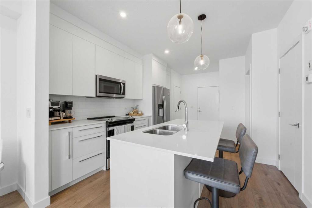 Welcome to your brand-new lifestyle in Wolf Willow — where convenience meets nature. Built in 2024, this beautifully designed 2-bedroom condo offers the perfect blend of modern living and an unbeatable location. Step inside to a bright, open-concept layout that feels spacious, clean, and thoughtfully designed for both everyday comfort and entertaining. The kitchen is the true centerpiece of the home, featuring a large quartz island, stainless steel appliances, and ample storage, all seamlessly flowing into the living area and out to your private balcony with direct access — adding a rare level of convenience. The primary bedroom is your personal retreat, complete with a walk-in closet and direct bathroom access, while the second bedroom offers incredible flexibility for guests, a home office, or additional living space. You’ll also enjoy in-suite laundry, heated underground parking with EV charging, and access to premium building amenities that elevate your lifestyle — including a dedicated pet spa, large bike storage for cycling enthusiasts, a stylish lounge room perfect for hosting gatherings, and a well-equipped fitness room to keep active. Pet-friendly living is made even easier with a nearby dog park, making this home ideal for animal lovers. Now here’s where this property truly stands out: LOCATION. You are surrounded by everything you need, just minutes away: • Walking distance to a plaza with shops, restaurants, and daily essentials • Nearby gas station for quick and easy access on the go • Close to a beautiful golf course for weekend relaxation • Steps from parks and green spaces, perfect for families and outdoor living • Minutes to the Bow River and scenic walking/biking trails • Charming pathways and nature-filled surroundings throughout the community • Quick access to Seton Hospital and major amenities The neighborhood offers the perfect balance of urban convenience and natural beauty, with abundant outdoor attractions, green space, and access to Calgary’s stunning river pathways. This is more than just a condo — it’s a lifestyle built around comfort, convenience, and connection to nature. Opportunities like this in Wolf Willow don’t last. Book your private showing today.