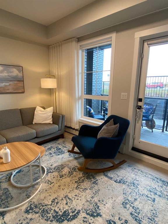 Welcome to Lawrie Park, located on north side of Okotoks. This beautifully upgraded condo, built in 2024 and well cared for, is move-in ready. What makes this home truly special is the extra door to the gated patio, with street access across the road to the off-leash dog park. Enjoy having your own front door while still benefiting from low-maintenance condo living with snow removal, lawn care, and exterior upkeep are all taken care of. With only condo fees, taxes, power, and TV to consider, this is an excellent low-cost, lock-and-leave option, ideal for travellers, new home buyers, busy professionals, or anyone seeking simplicity without sacrifice. Inside, the open-concept design showcases 9-ft ceilings, large windows, and a modern aesthetic. The upgraded white kitchen features a gas stove, upgraded quartz island with built-in dining, extra drawers for storage, and a third drawer in the dishwasher. The condo has the black upgrade package with black door handles and hinges and bathroom fixtures; there are no rugs, just durable laminate flooring throughout. The living area flows directly to the private patio, which offers excellent privacy while sheer drapes allow natural light while maintaining discretion inside. The spacious primary suite includes an ensuite with a walk-in shower. The second bedroom is flexible—ideal for guests, hobbies, or as an office. Additional features include air conditioning, in-suite laundry, a heated underground parking stall (always a warm vehicle in winter), and a storage locker. Lawrie Park provides a true sense of community, with a private basketball court, community gardens, and gathering spaces. The surrounding Wedderburn neighbourhood includes walking paths, a pond, playground, pump track, off leash dog park and easy access to D’Arcy Crossing with Safeway, Starbucks, PetValu, Shoppers Drug Mart. Calgary is just 15 minutes away, making commuting simple and convenient. With modern upgrades, pet-friendly living, and immediate possession, this home combines the benefits of condo ownership with the comfort of your own private outdoor entrance. Move in and enjoy everything Lawrie Park offers.